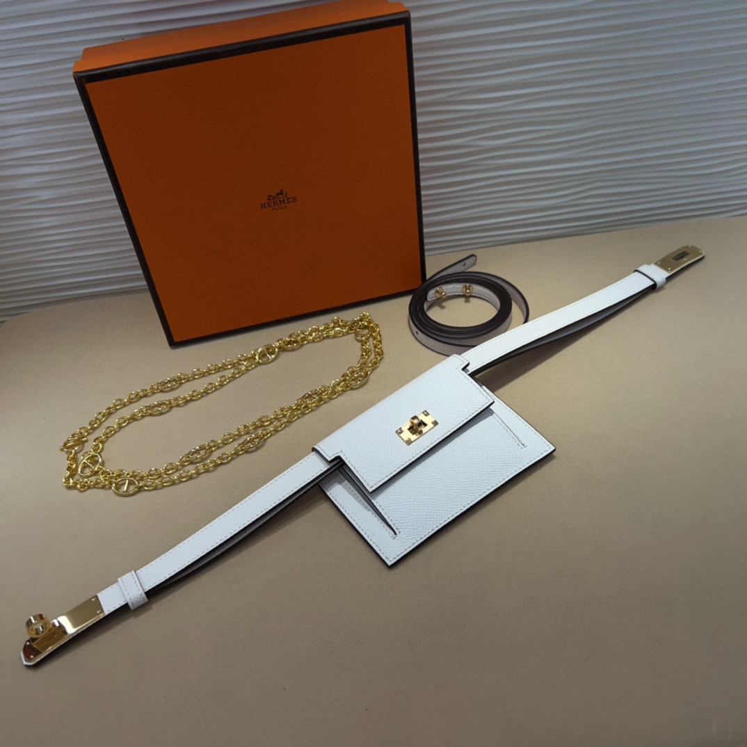 Tags: Designer Belt Bag, Fashion Waist Bag, Gold Hardware Bag, Hermes Belt Bag, Luxury Card Holder, White Leather Bag