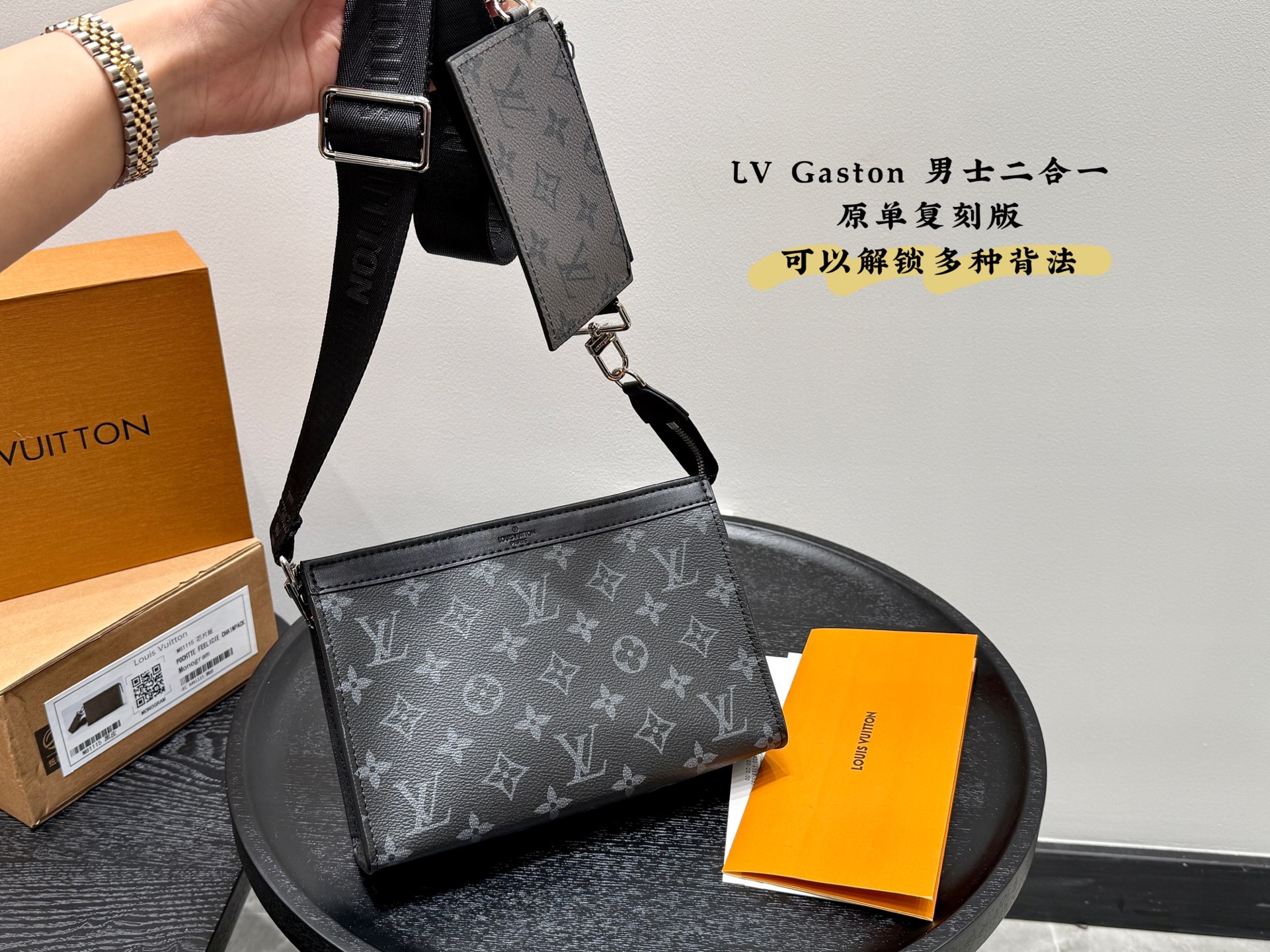 The Louis Vuitton Gaston men's 2-in-1 crossbody bag offers versatile carrying options.A stylish and functional choice for the modern man.