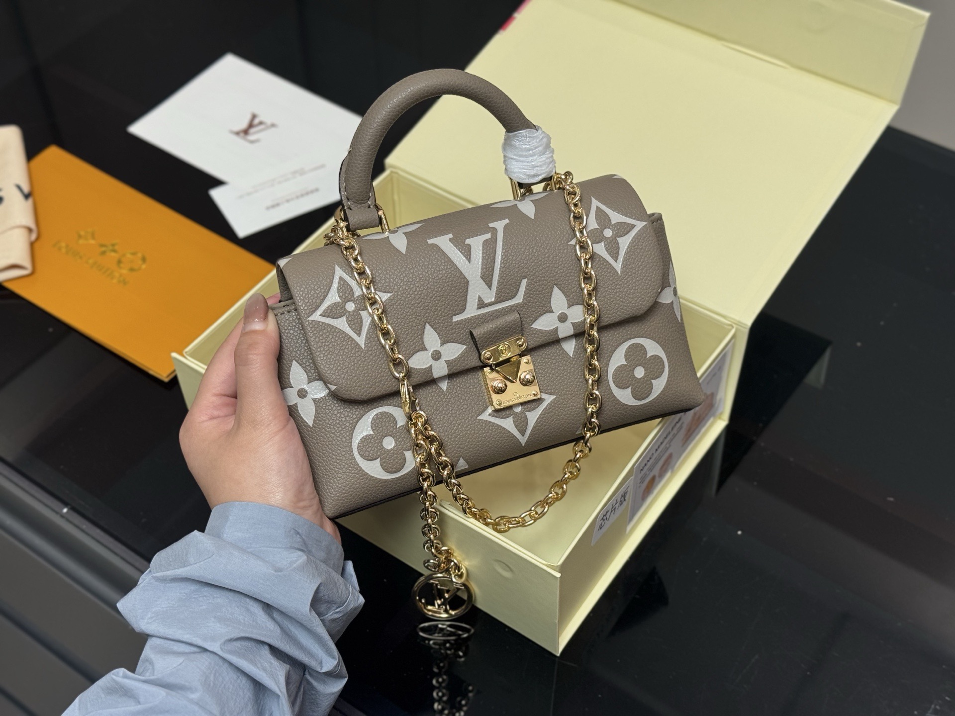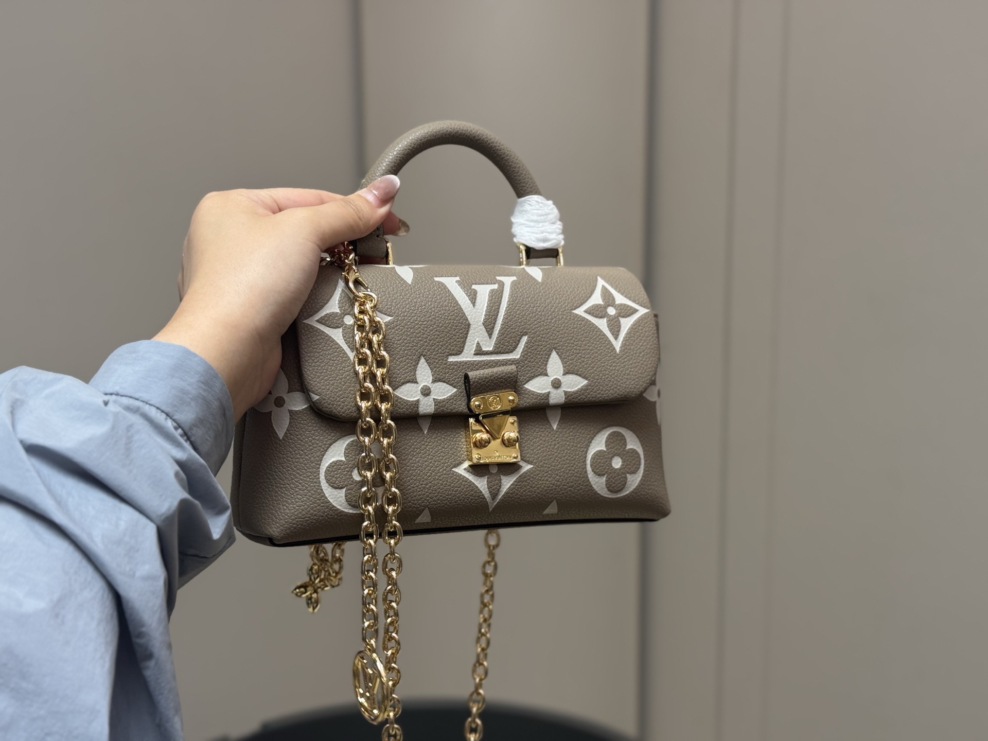 Louis Vuitton Nano Madeleine Handbag, Taurillon Leather, Dual Chain, 21*11cm