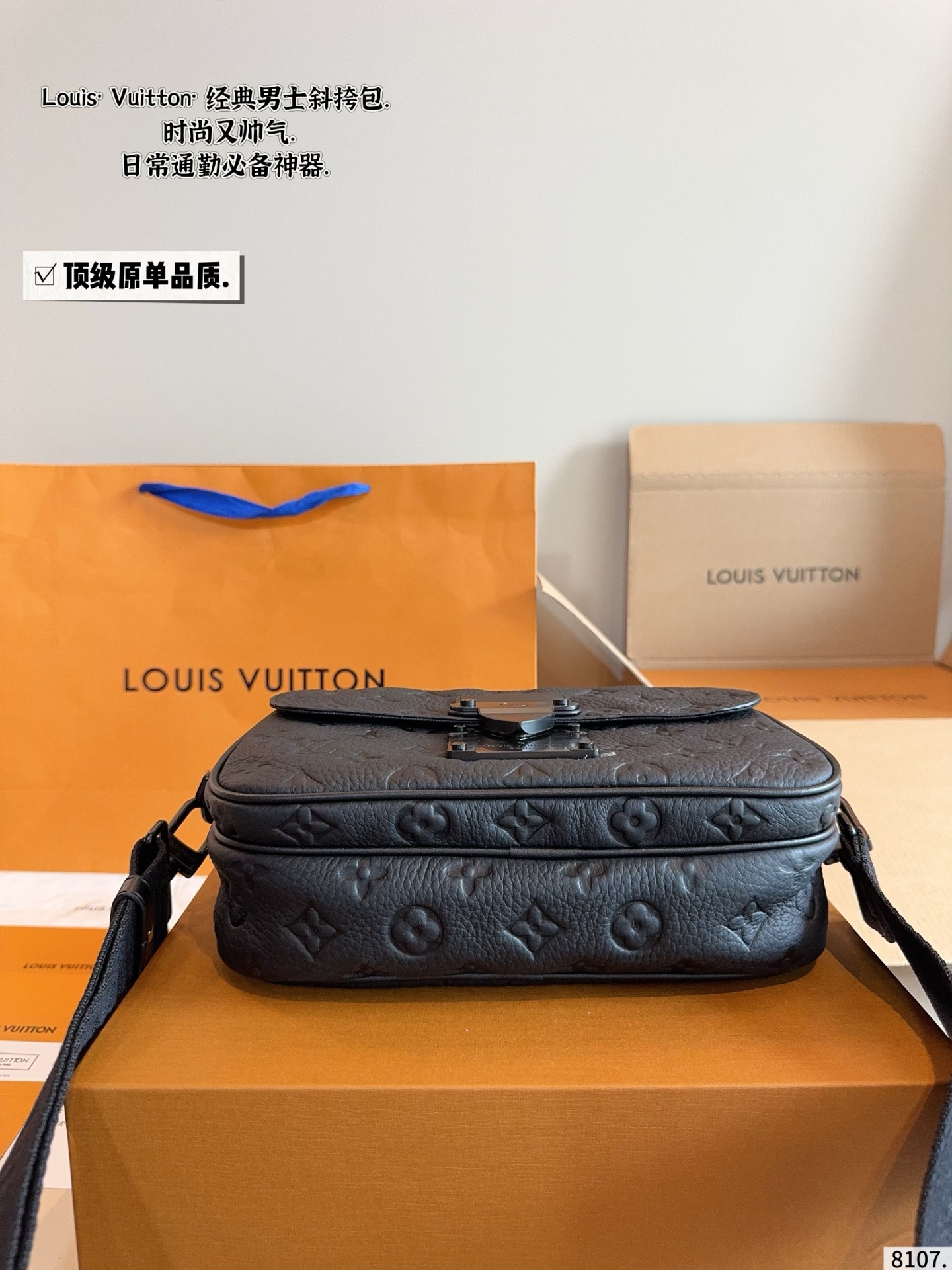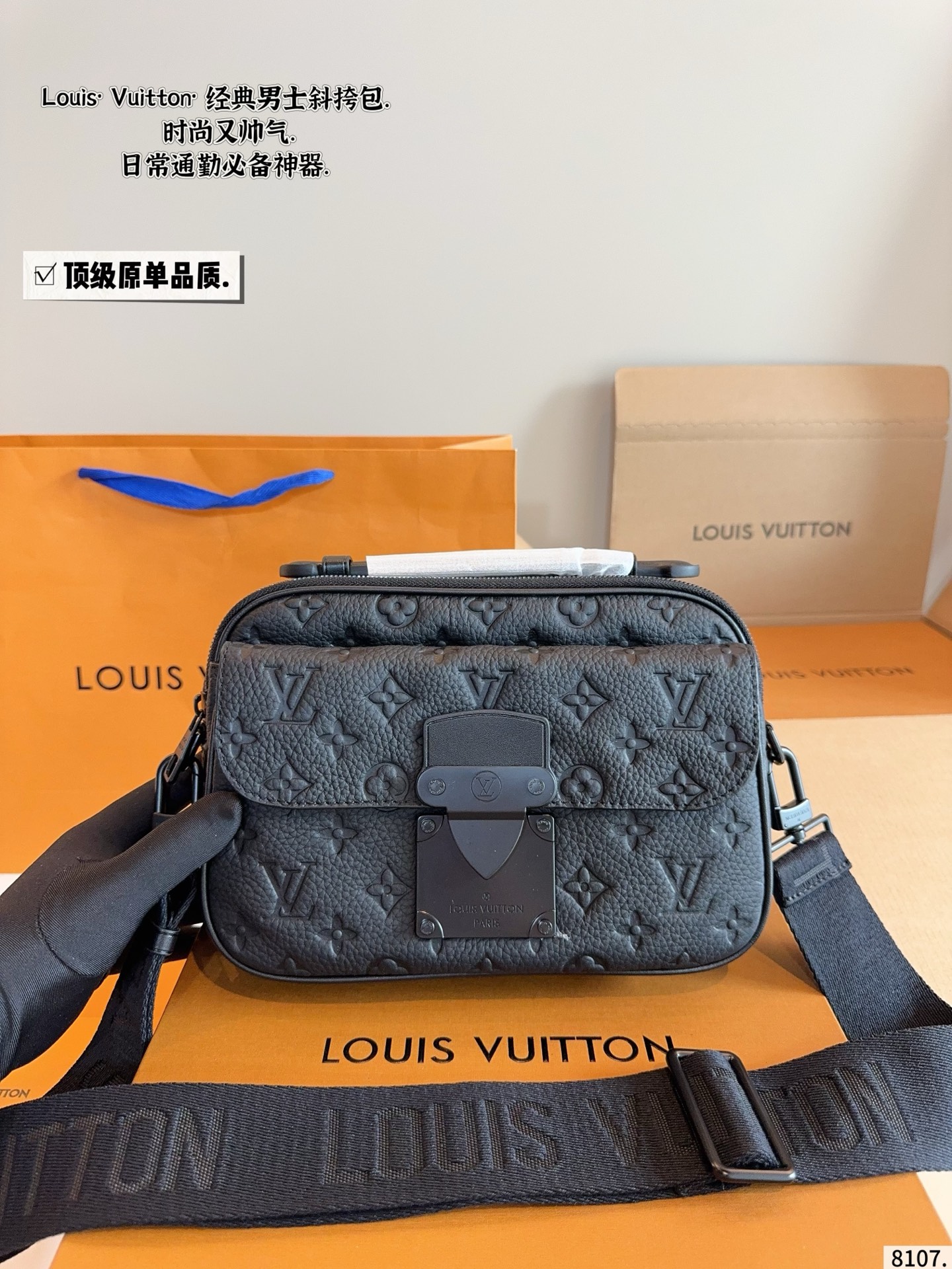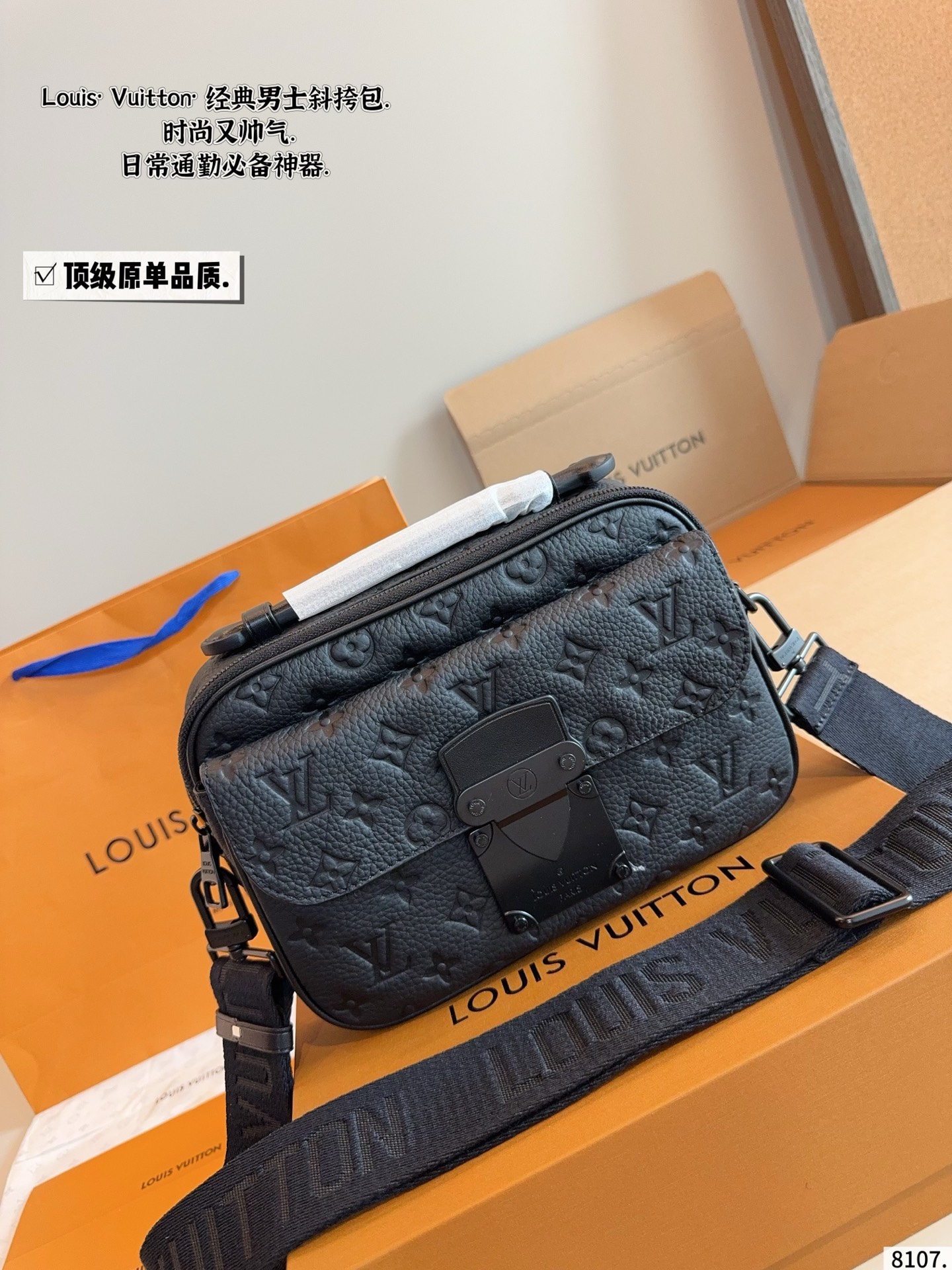 Tags: Designer Crossbody Bag, Embossed Leather Messenger Bag, Everyday Messenger Bag, Louis Vuitton Black Leather Bag, Luxury Men's Bag, S Lock Bag