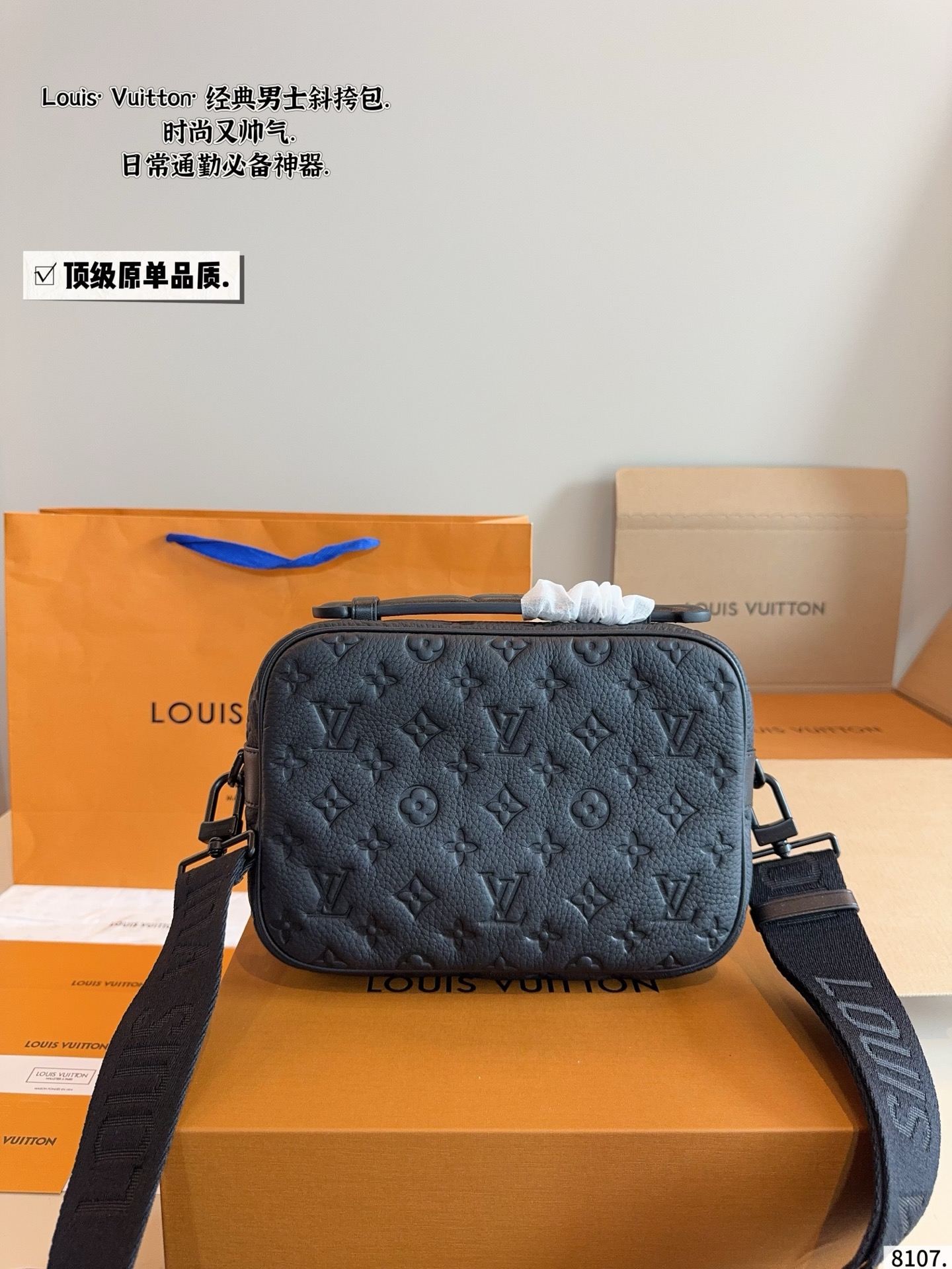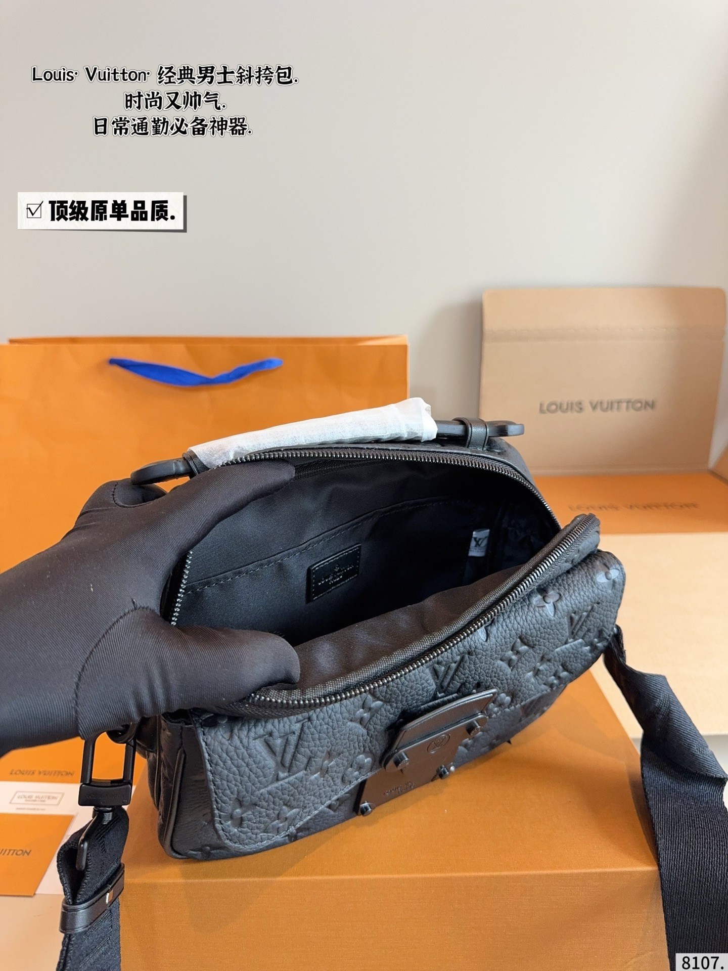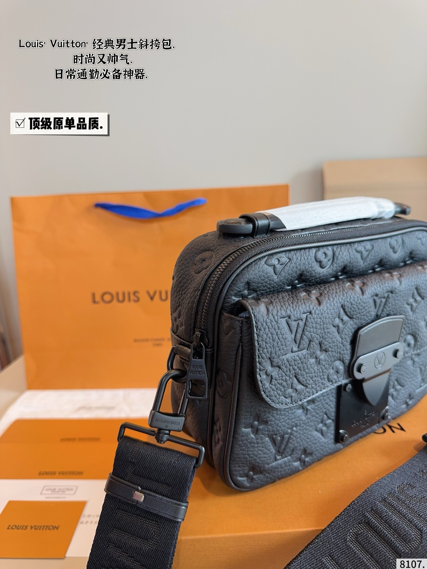 Tags: Designer Crossbody Bag, Embossed Leather Messenger Bag, Everyday Messenger Bag, Louis Vuitton Black Leather Bag, Luxury Men's Bag, S Lock Bag