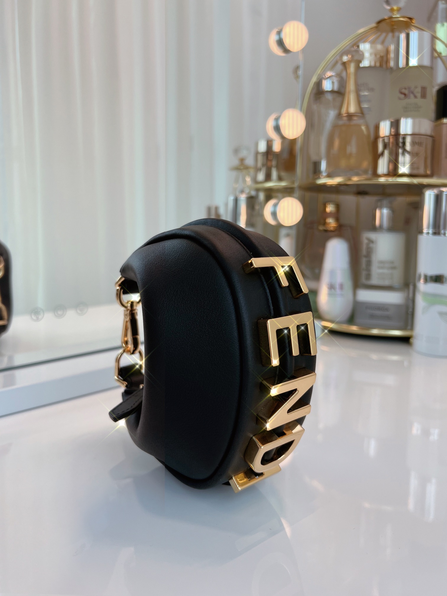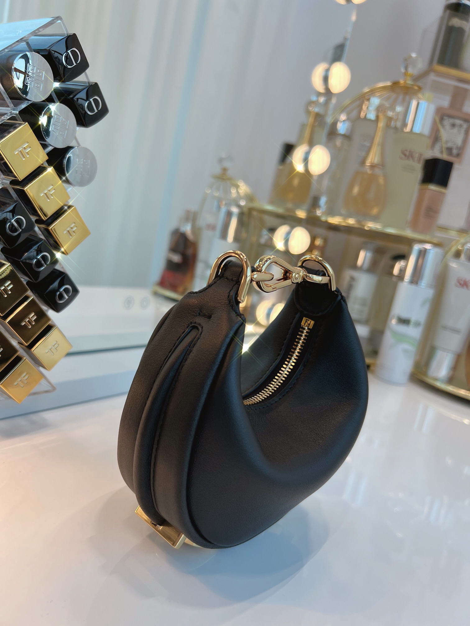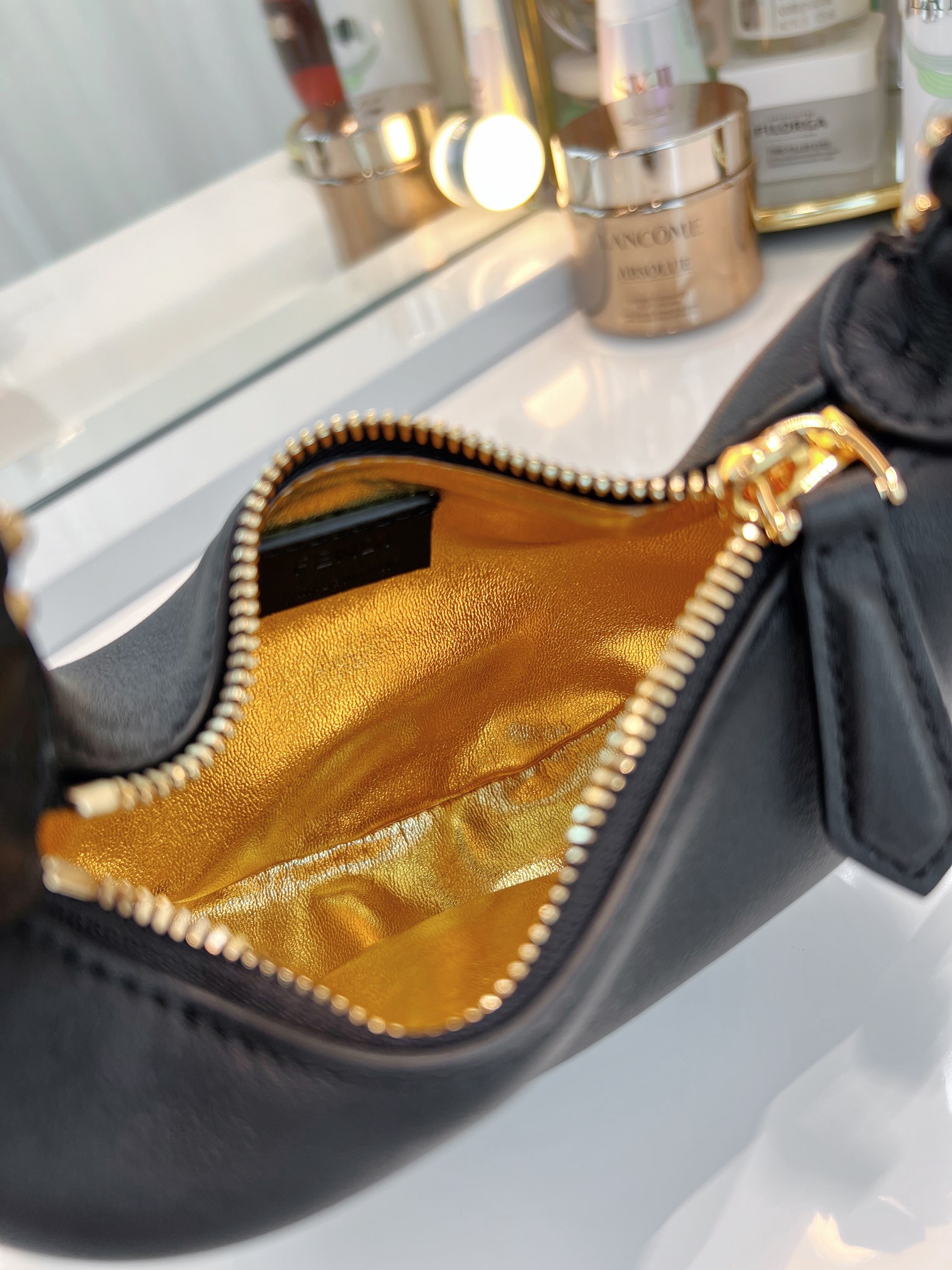 Tags: Black Leather Bag, Designer Shoulder Bag, Italian Leather Handbag, Mini Crescent Bag, Praphy Series Bag, Small Leather Purse