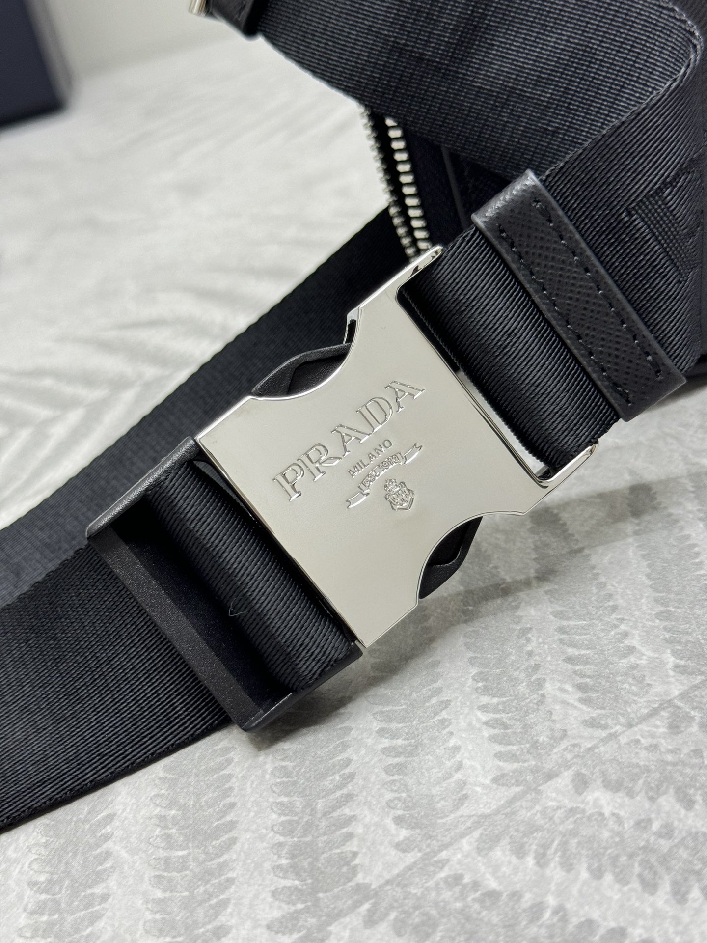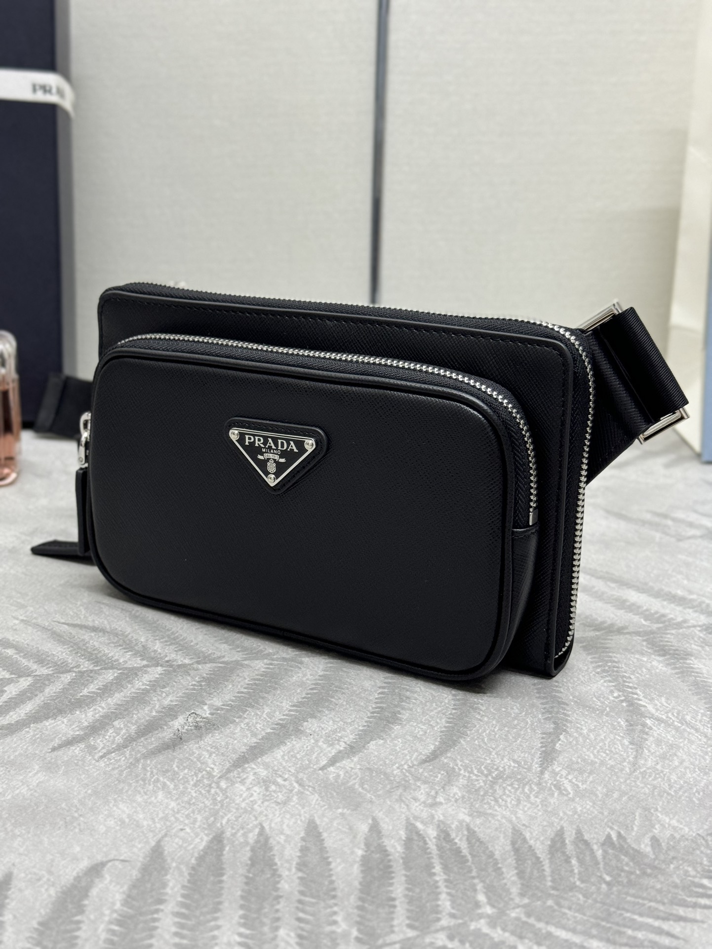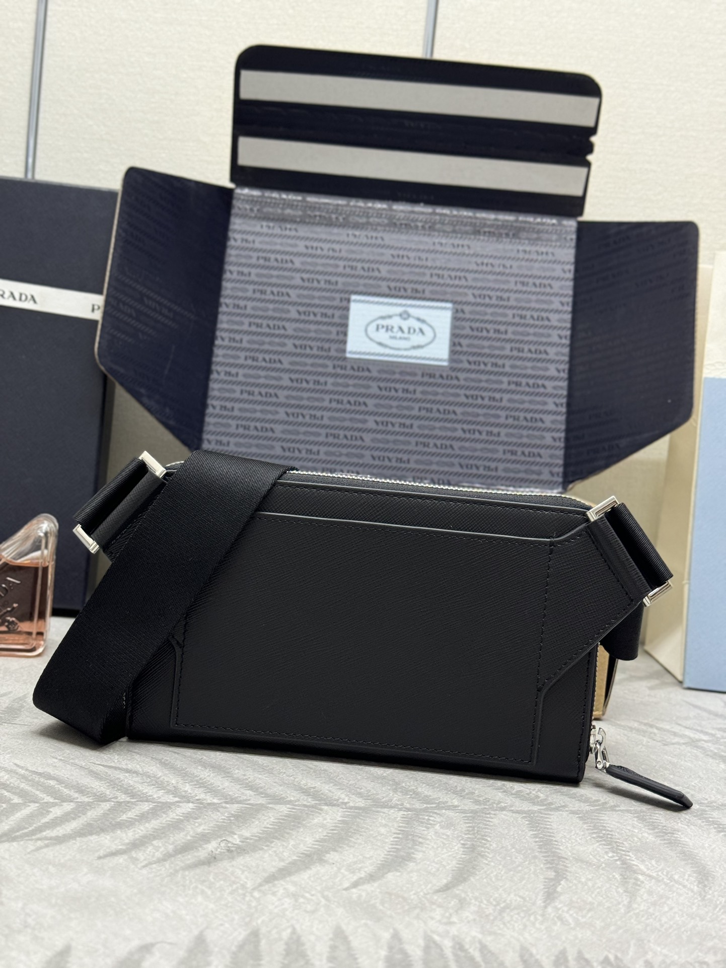 Prada Crossbody Bag 2VH156 Saffiano Leather Black, Adjustable Nylon Strap