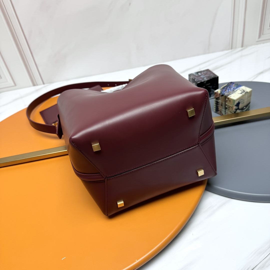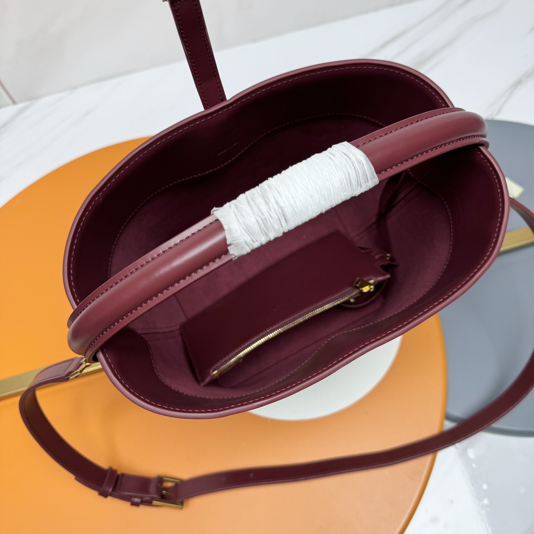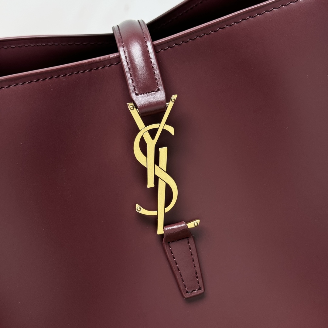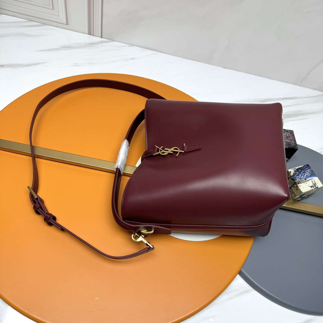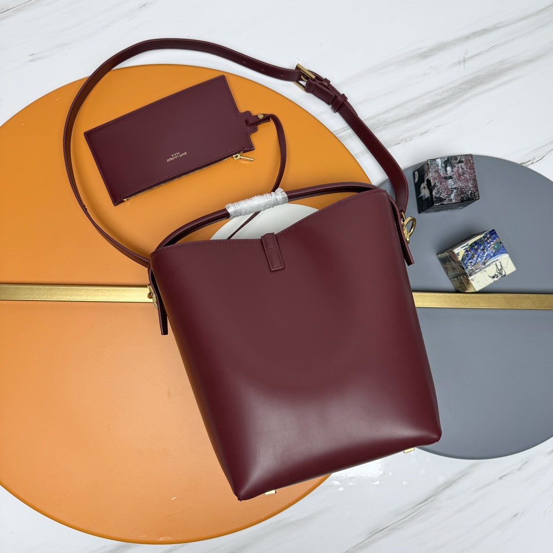 Tags: Burgundy Leather Bag, Calfskin Leather Purse, Designer Bucket Bag, Gold Hardware Handbag, Saint Laurent Bucket Bag