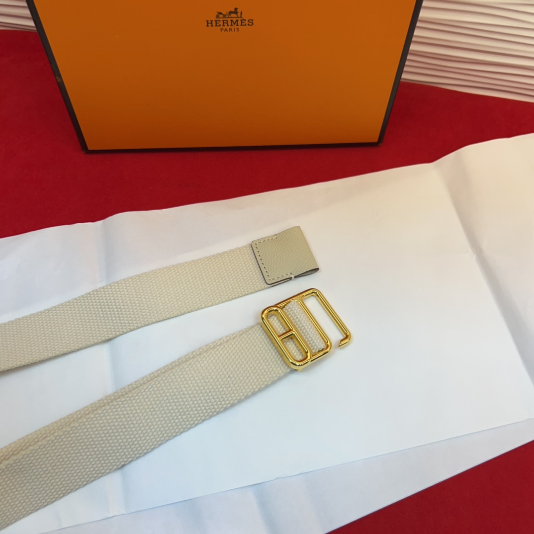 Hermes Ecume Belt in Mist Gray Fabric with Leather Details & Palladium Buckle