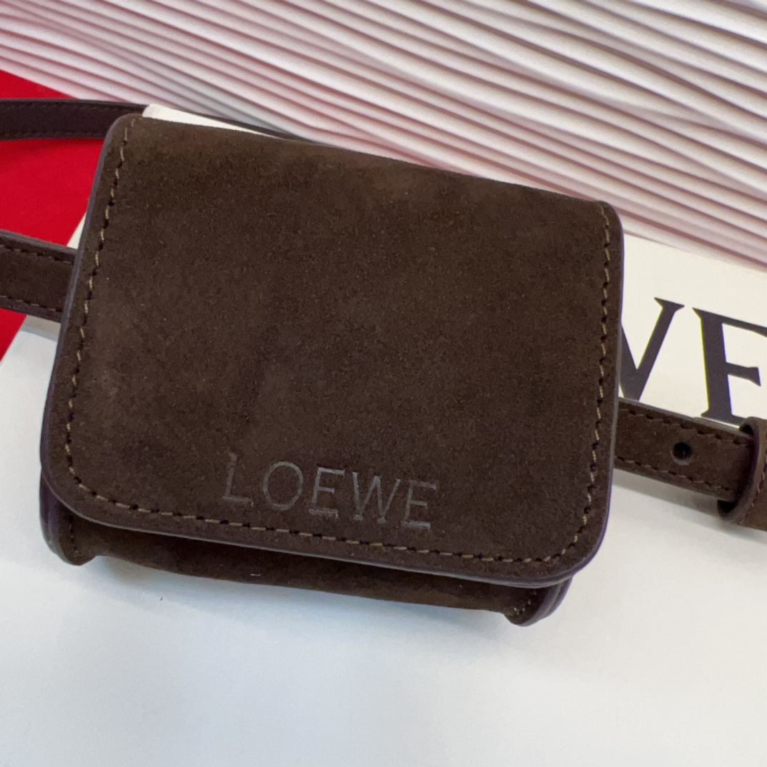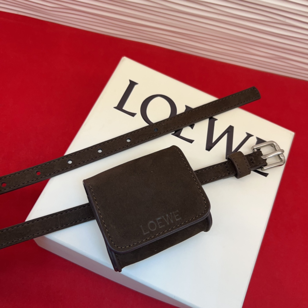 Loewe Anagram Buckle Suede Leather Belt with Pouch - Narrow Width