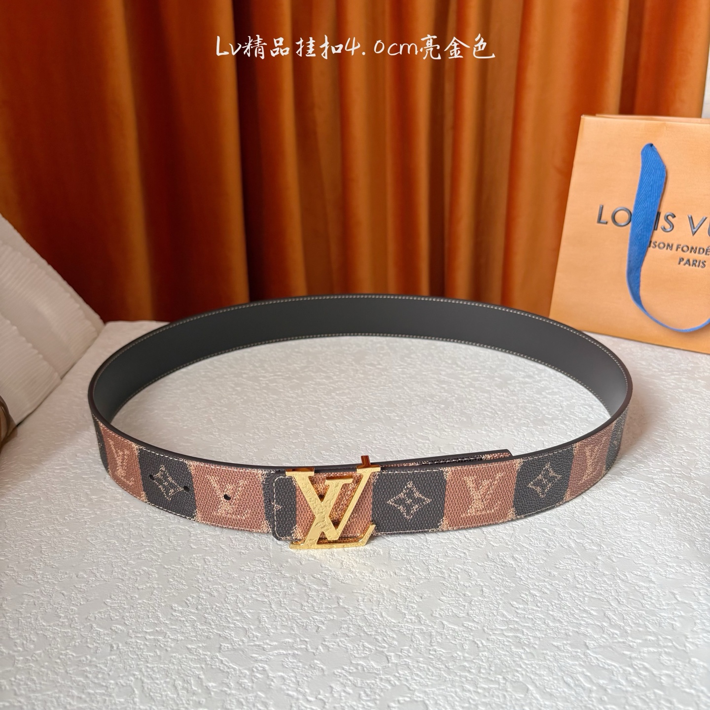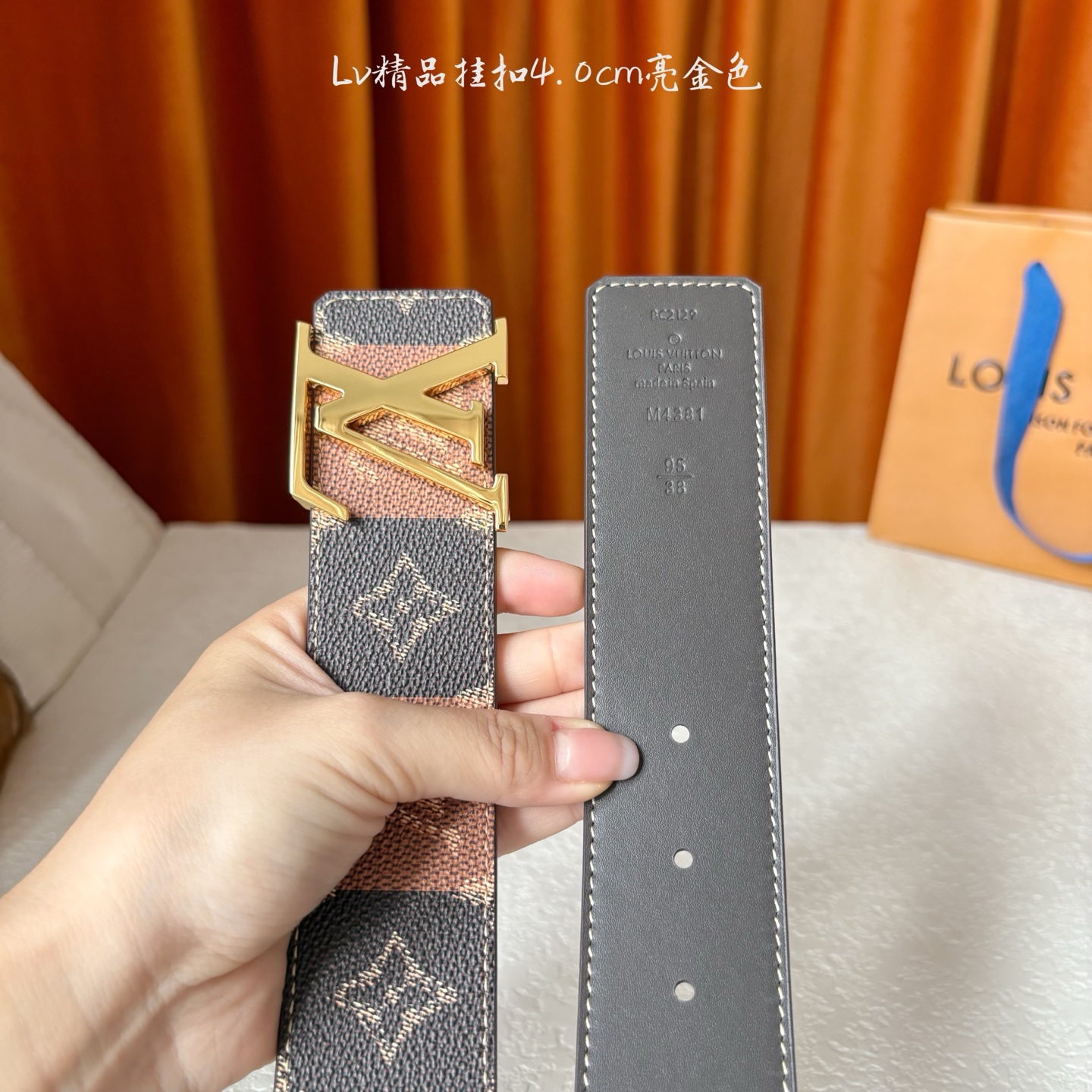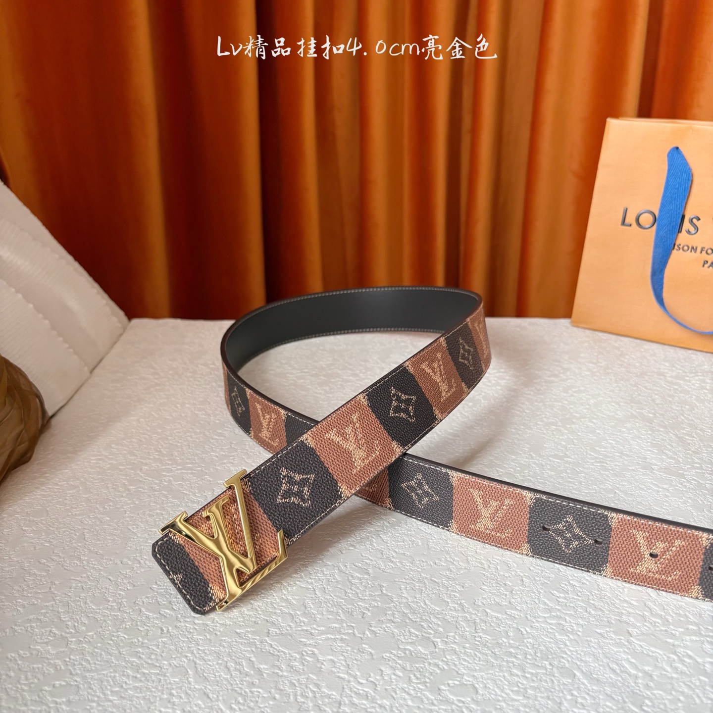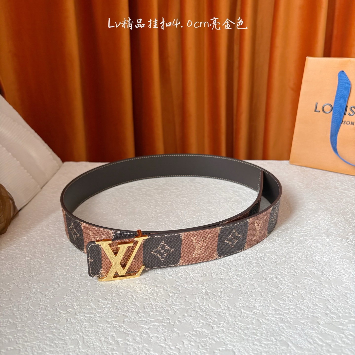 Elevate your style with this Louis Vuitton belt. Featuring iconic monogram leather and a gold buckle, it adds a touch of luxury to any outfit.
