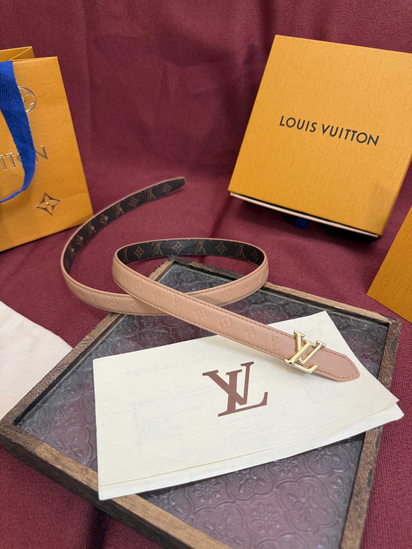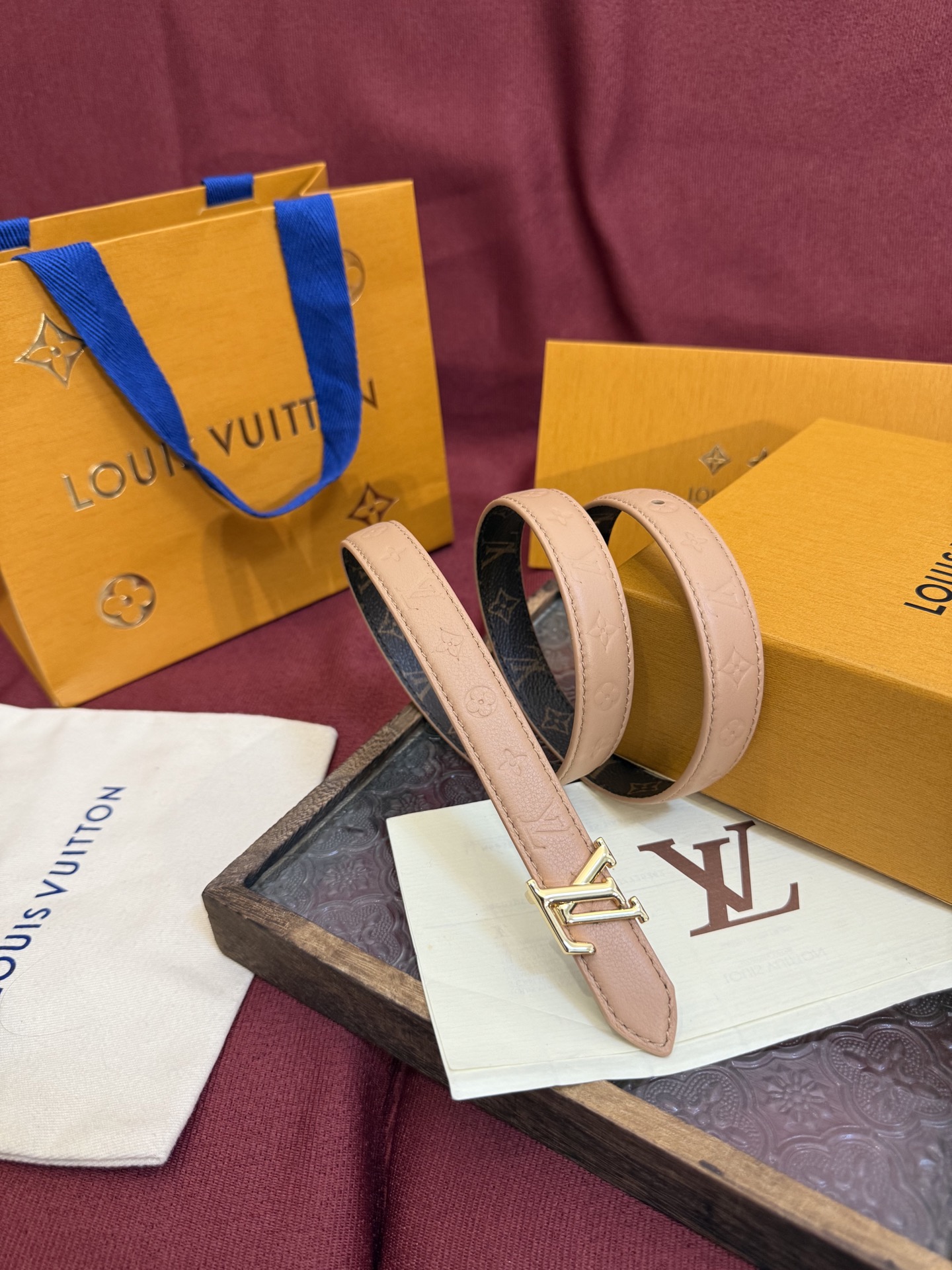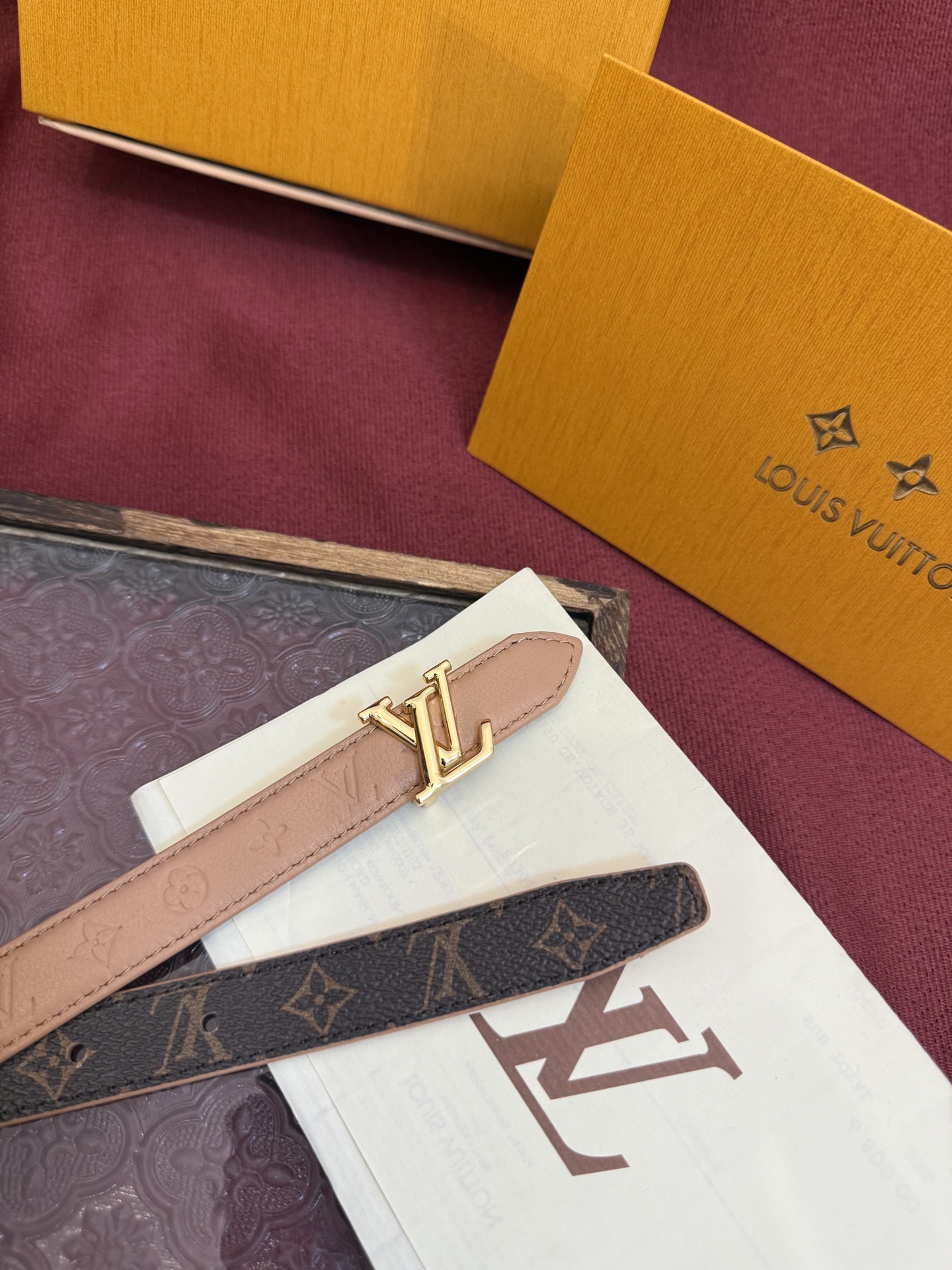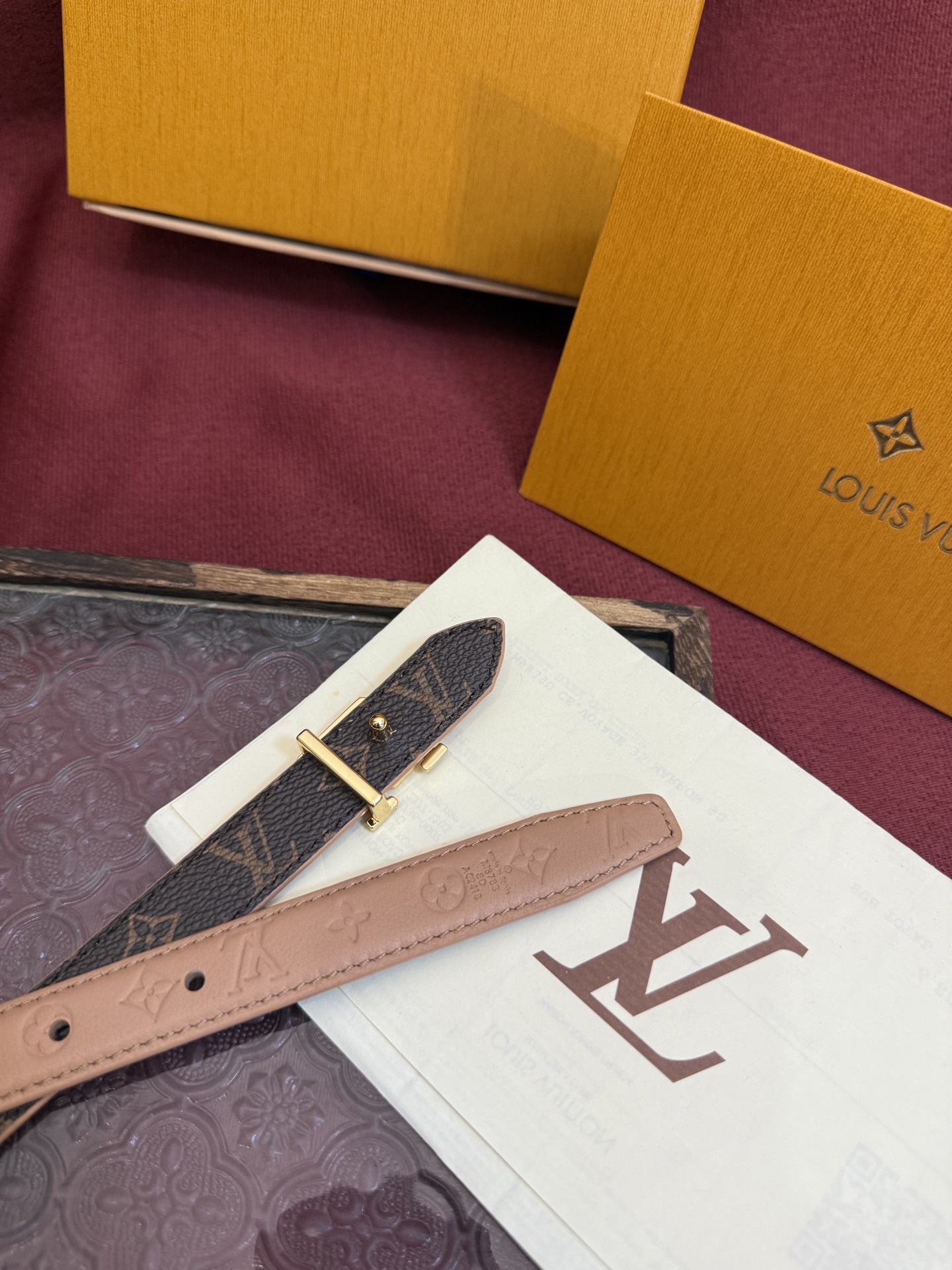 This Louis Vuitton Flowergram 20mm belt offers a blend of classic design and modern versatility. Its slim profile and iconic details make it a perfect accessory for any outfit.