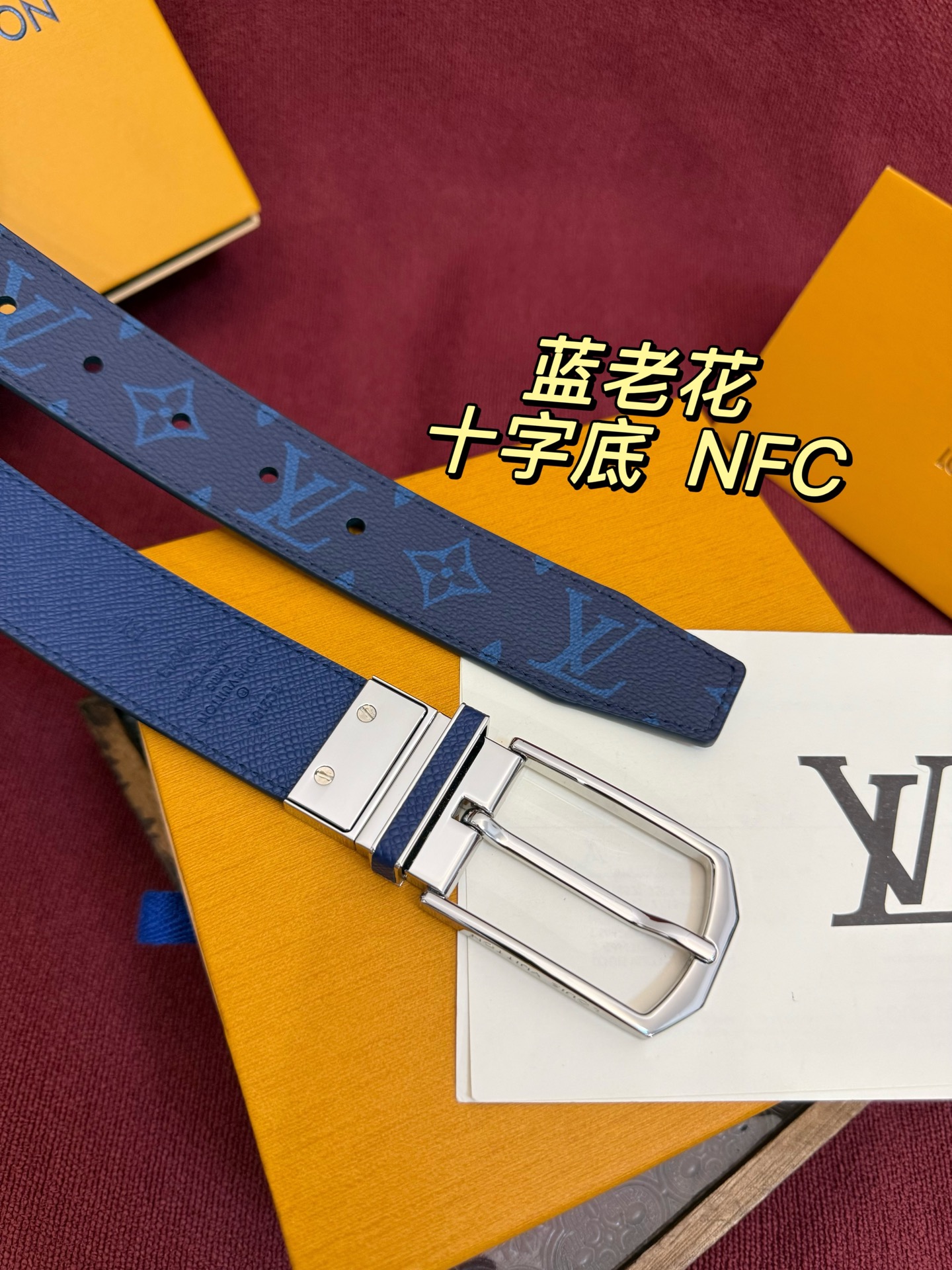 - Buckle: Silver-tone metal with "Louis Vuitton" engraving