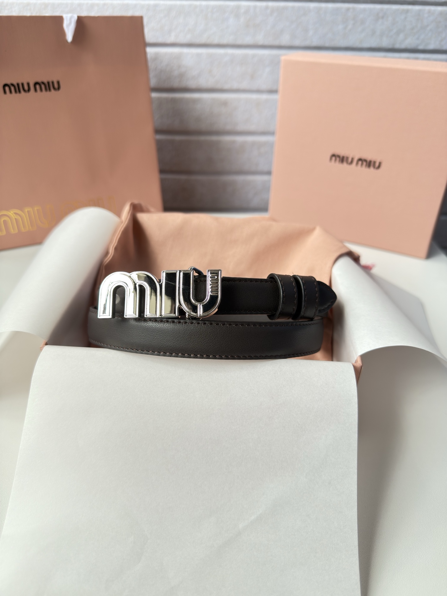 Elevate your style with this Miu Miu 24SS belt. Features the iconic Miu Miu logo buckle on a 2cm wide strap, perfect for adding a touch of sophistication to any outfit.
