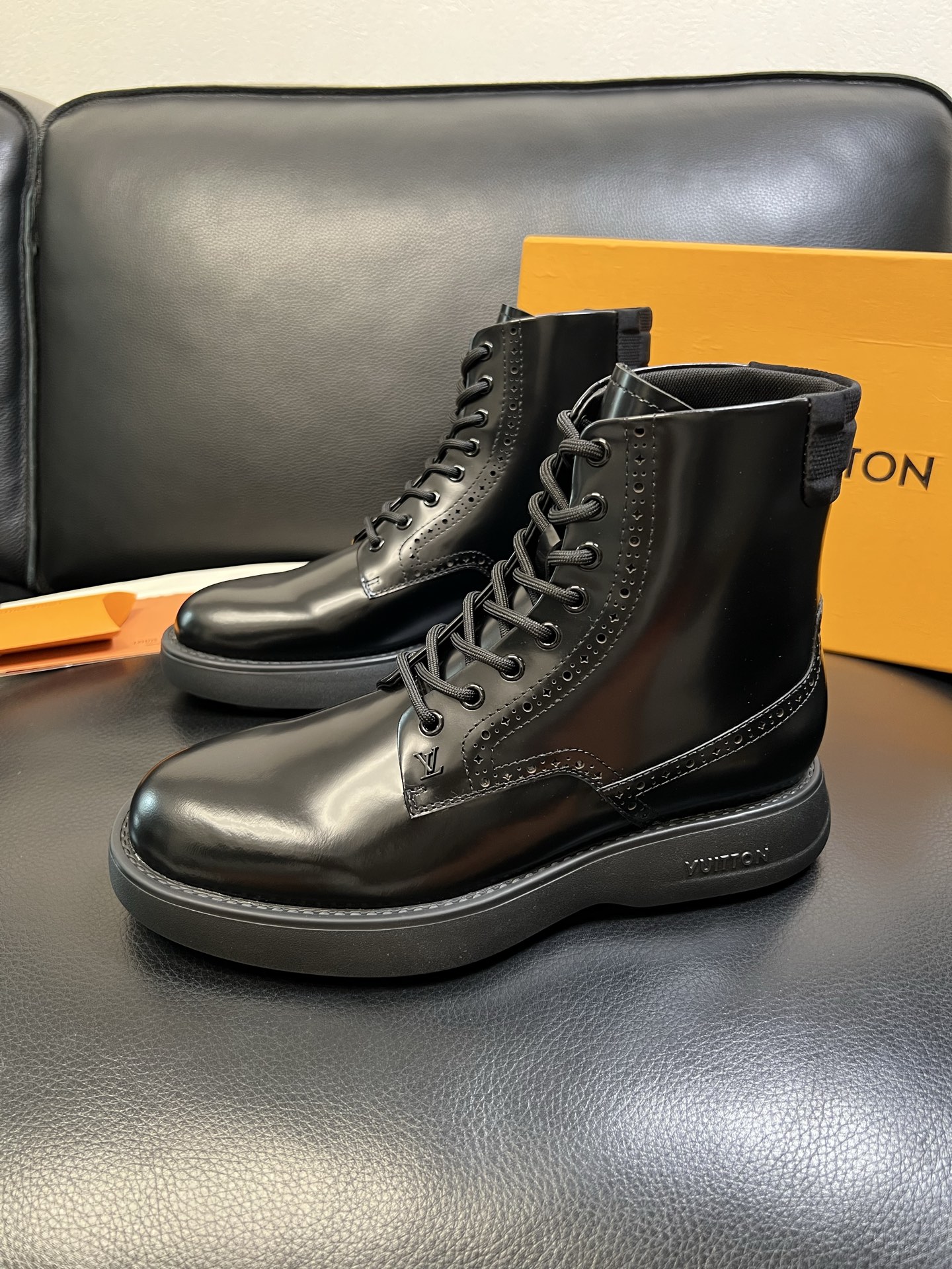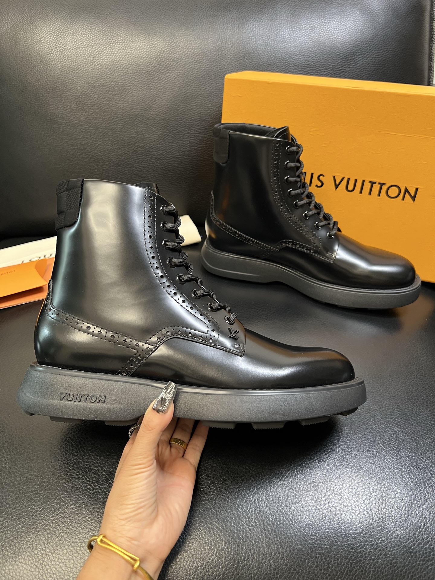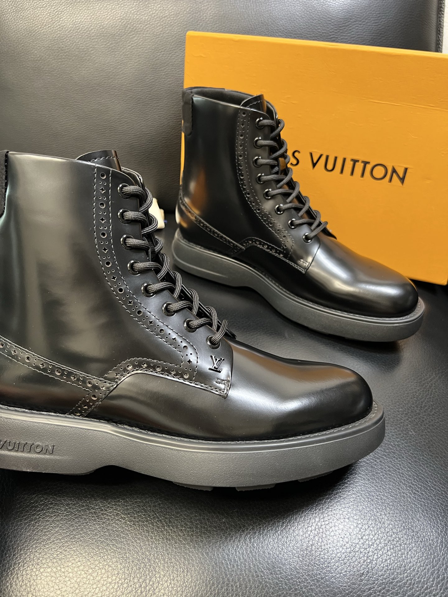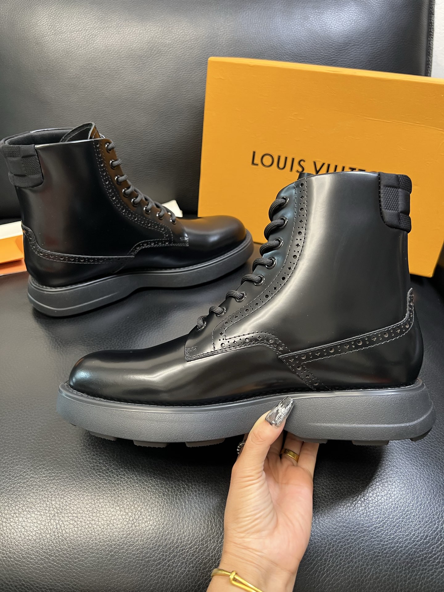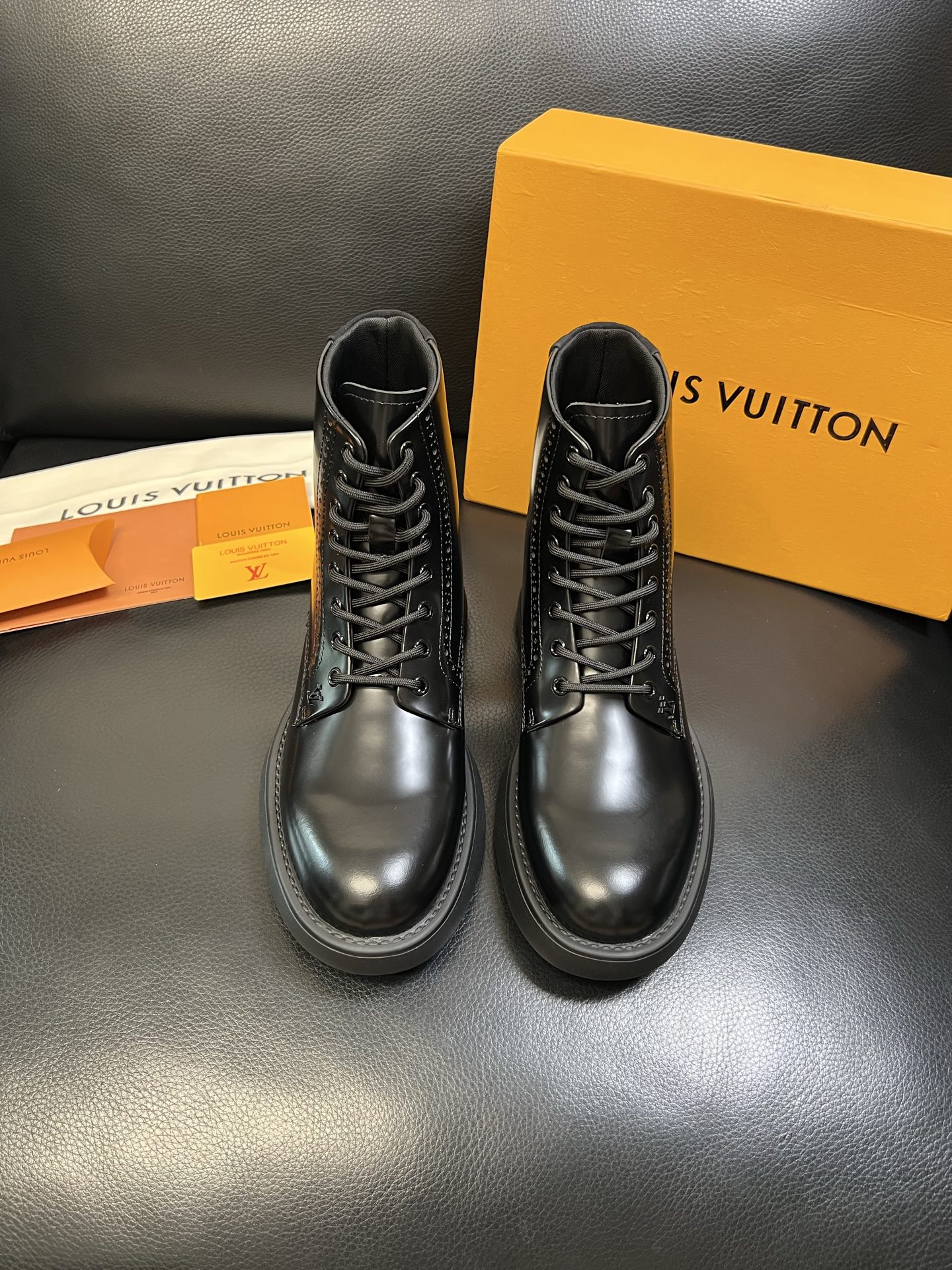 Louis Vuitton High-Top Leather Boots, Imported Italian Leather Upper