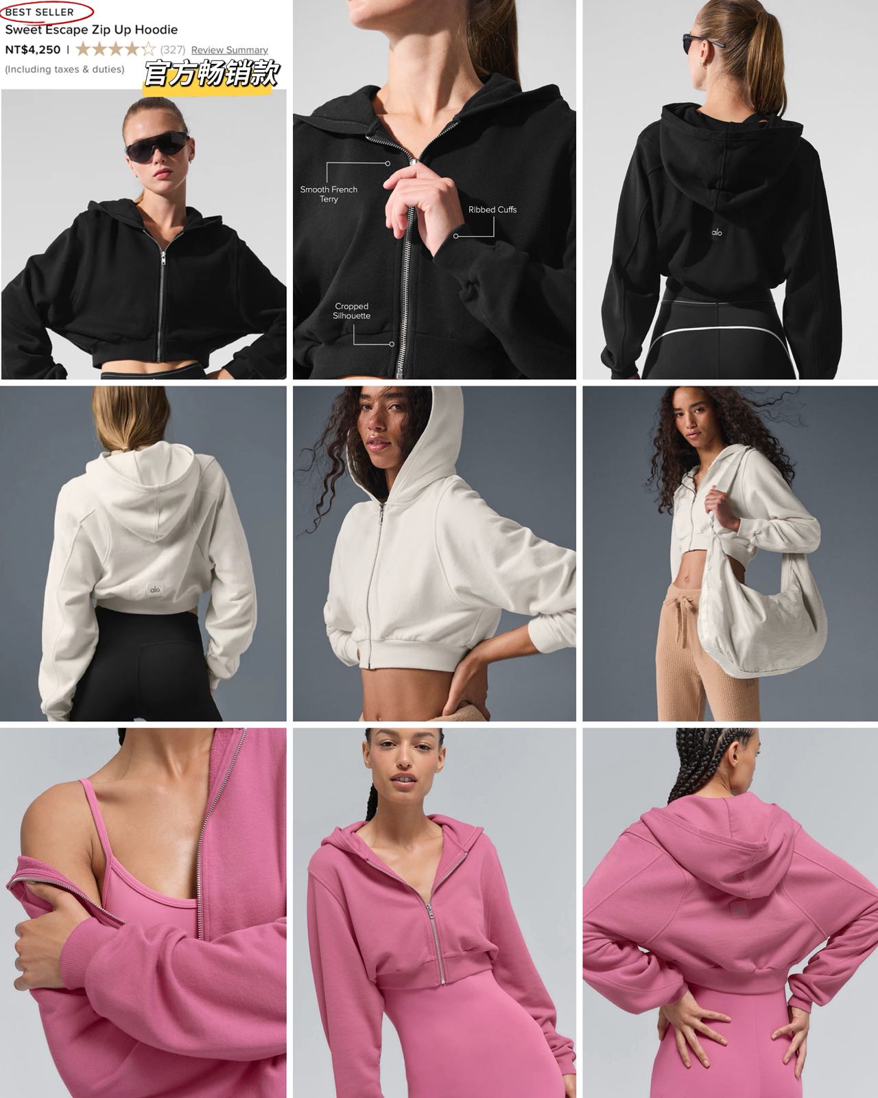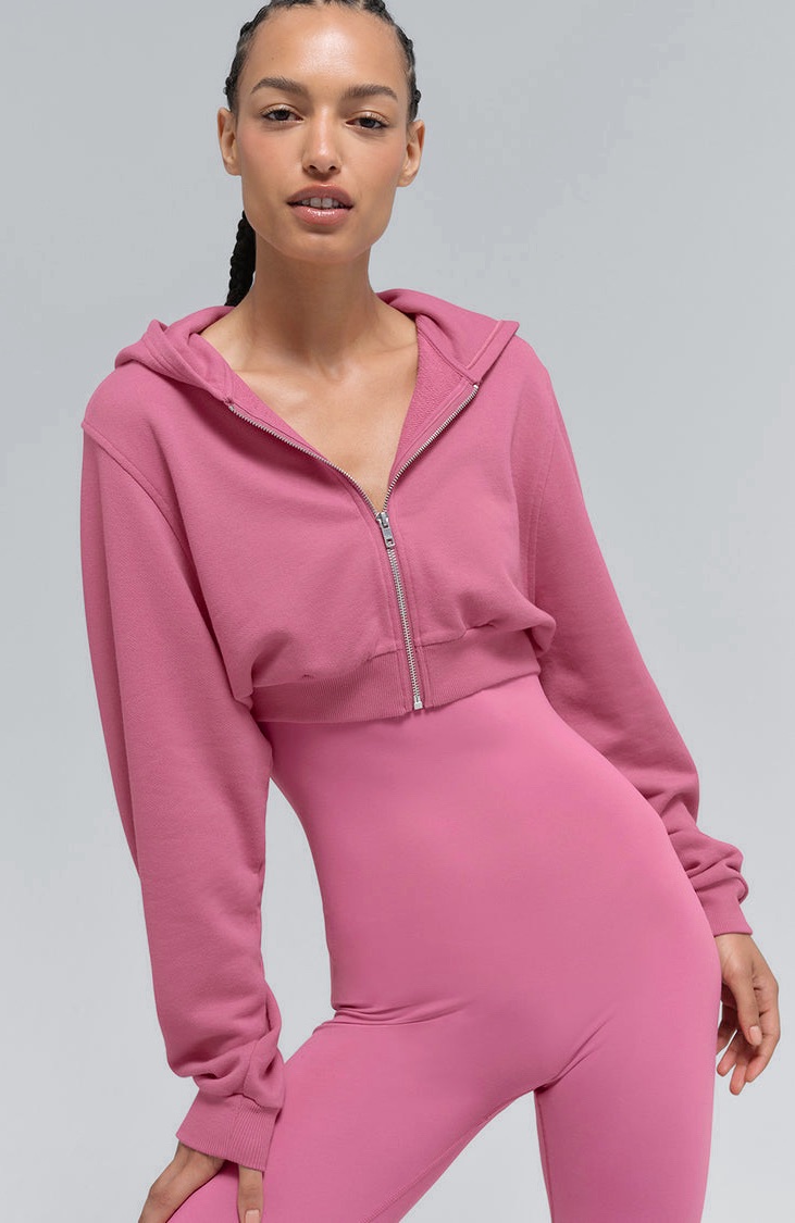 The ALO Women's Sweet Escape Cropped Full-Zip Hoodie merges high fashion with athletic functionality, making it a versatile addition to any wardrobe.