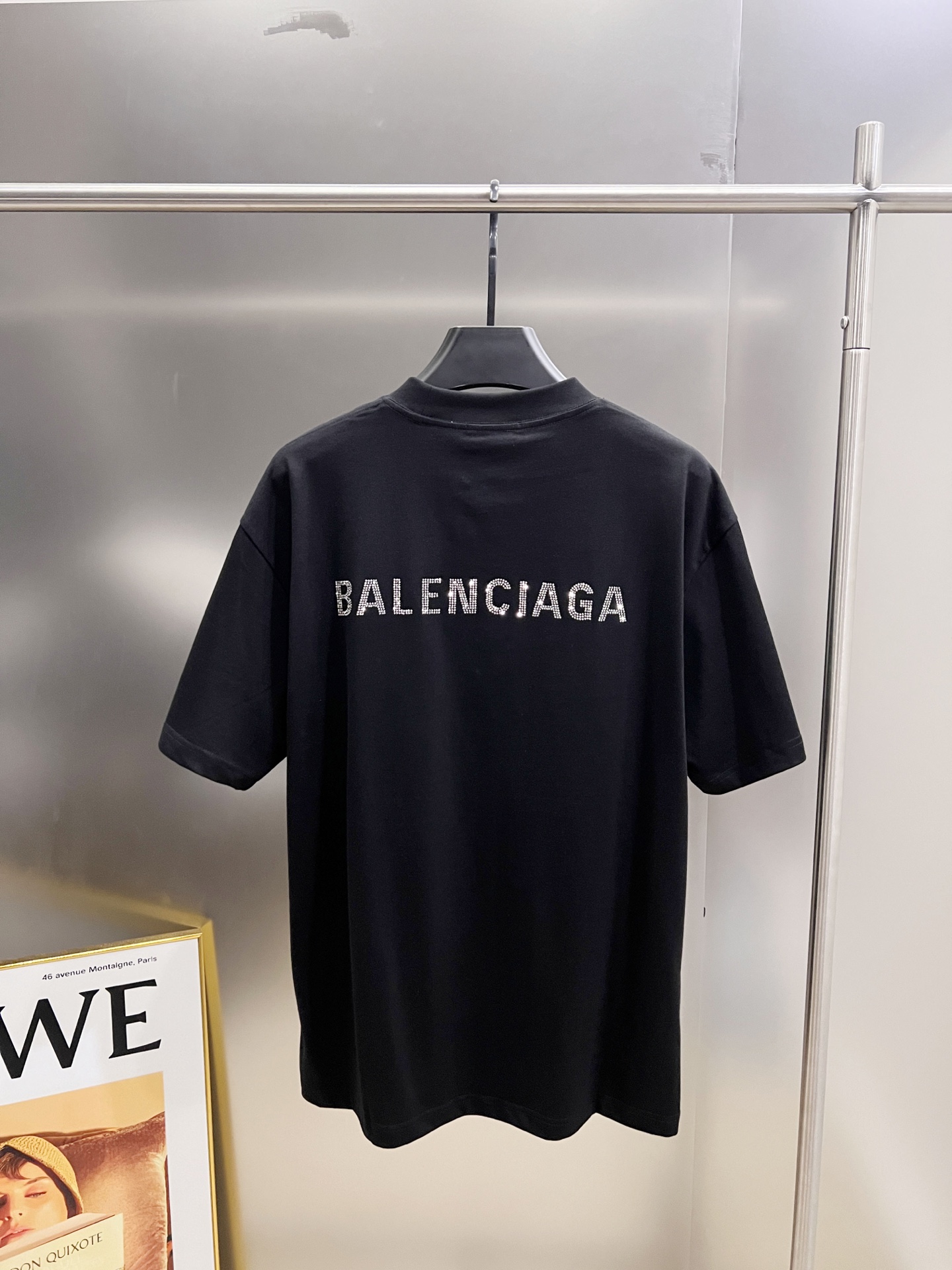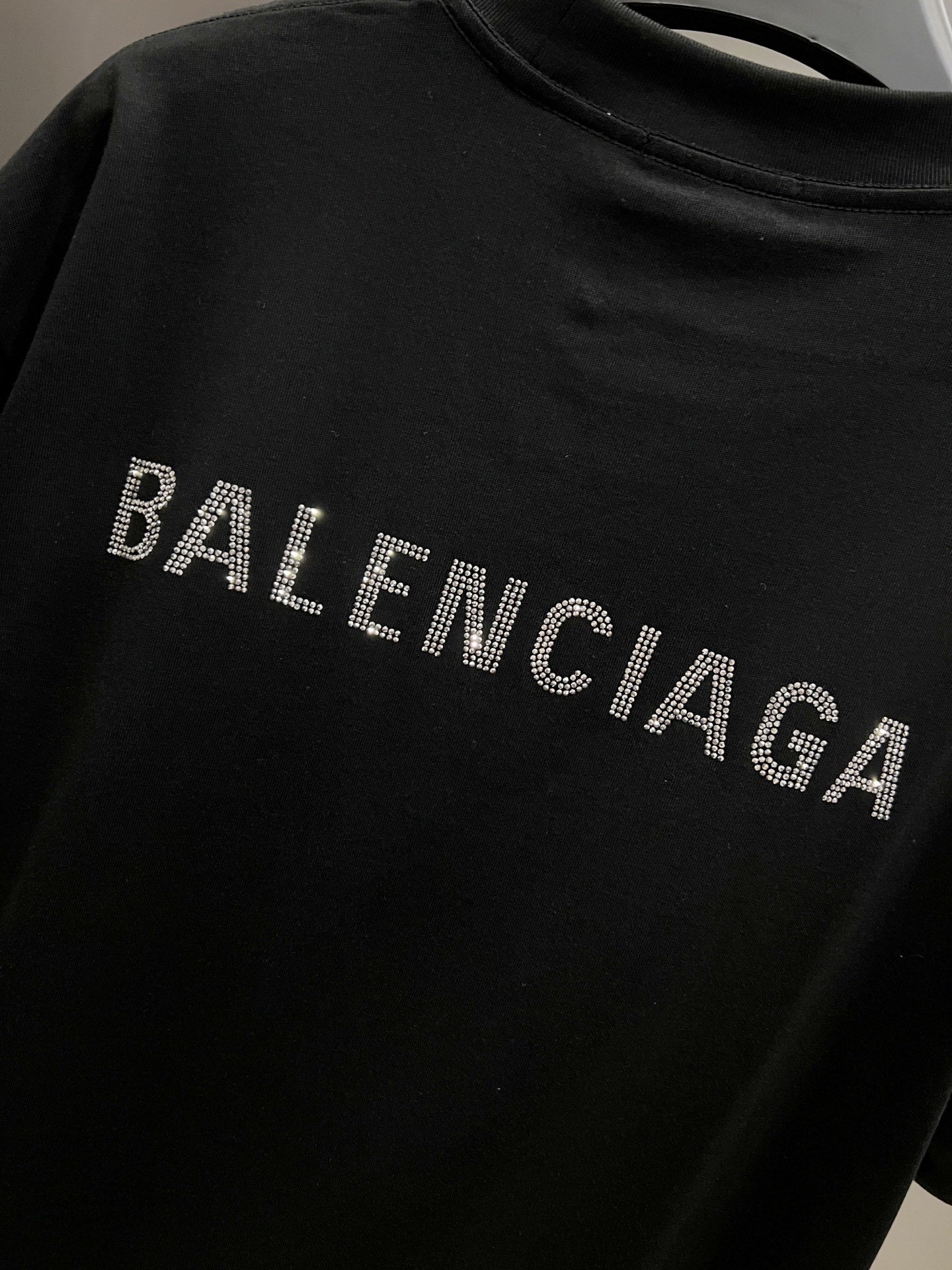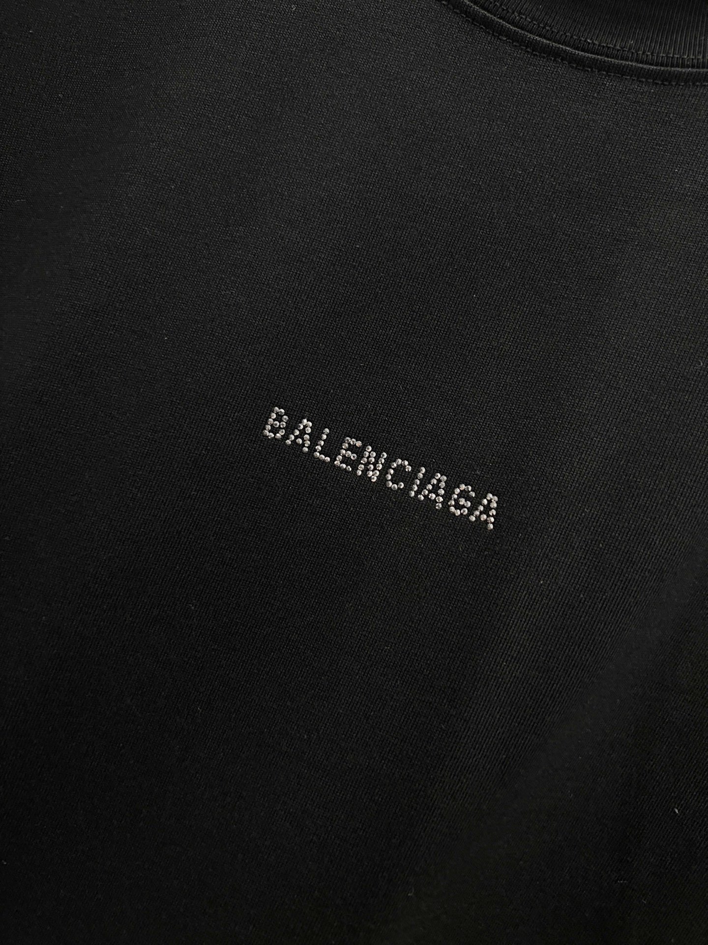 Balenciaga 2025 Black Cotton T-Shirt with Rhinestone Logo - Unisex