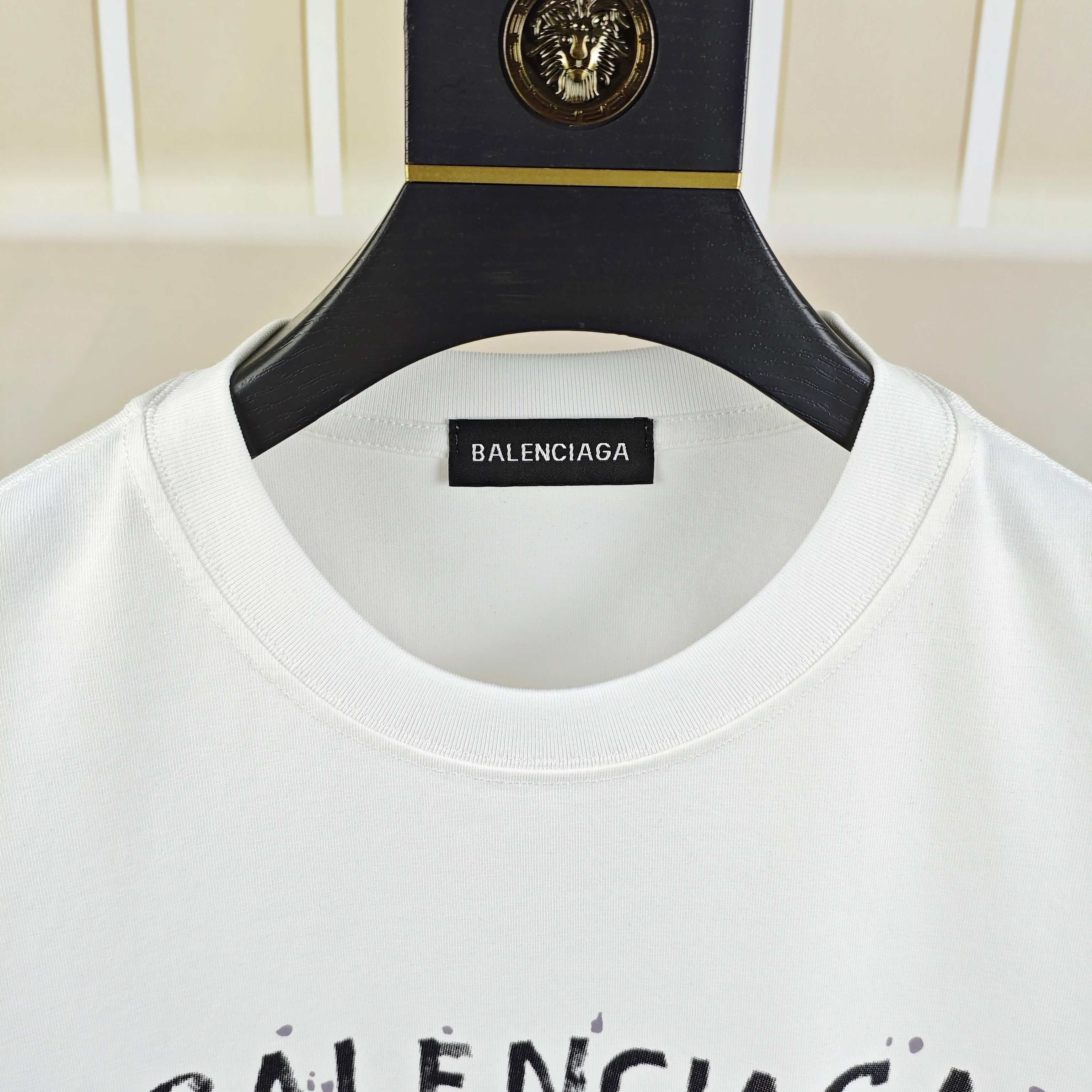 Tags: Balenciaga T-Shirt, Cotton Logo Tee, Designer Men's T-Shirt, Mens Short Sleeve T-Shirt, White Graphic T-Shirt