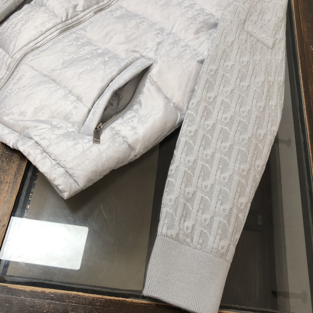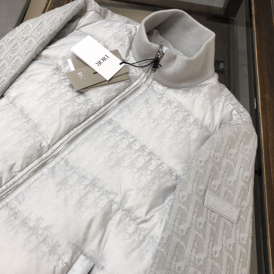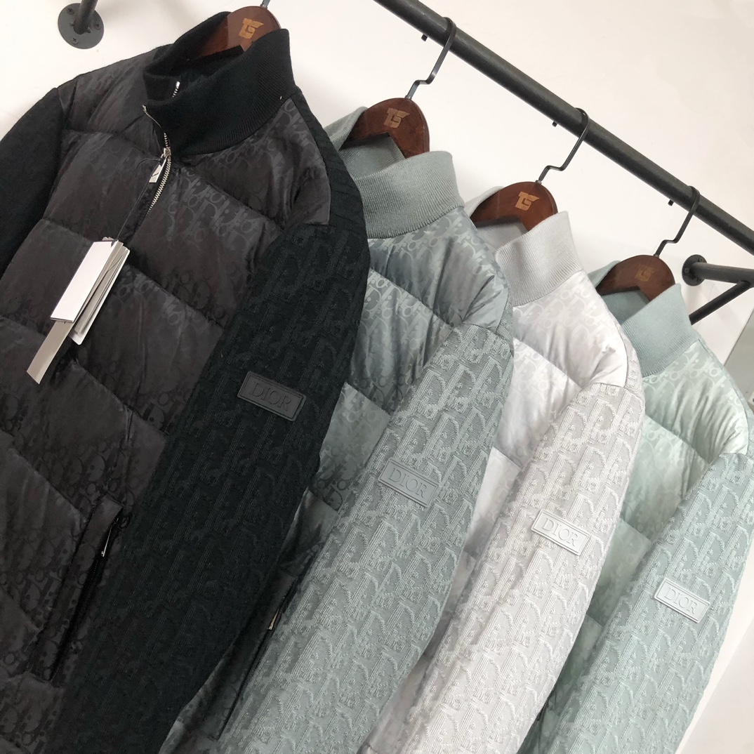 Tags: Designer Down Jacket, Dior Puffer Jacket, High Fashion Puffer, Luxury Outerwear, Oblique Logo Jacket, Wool Knit Jacket