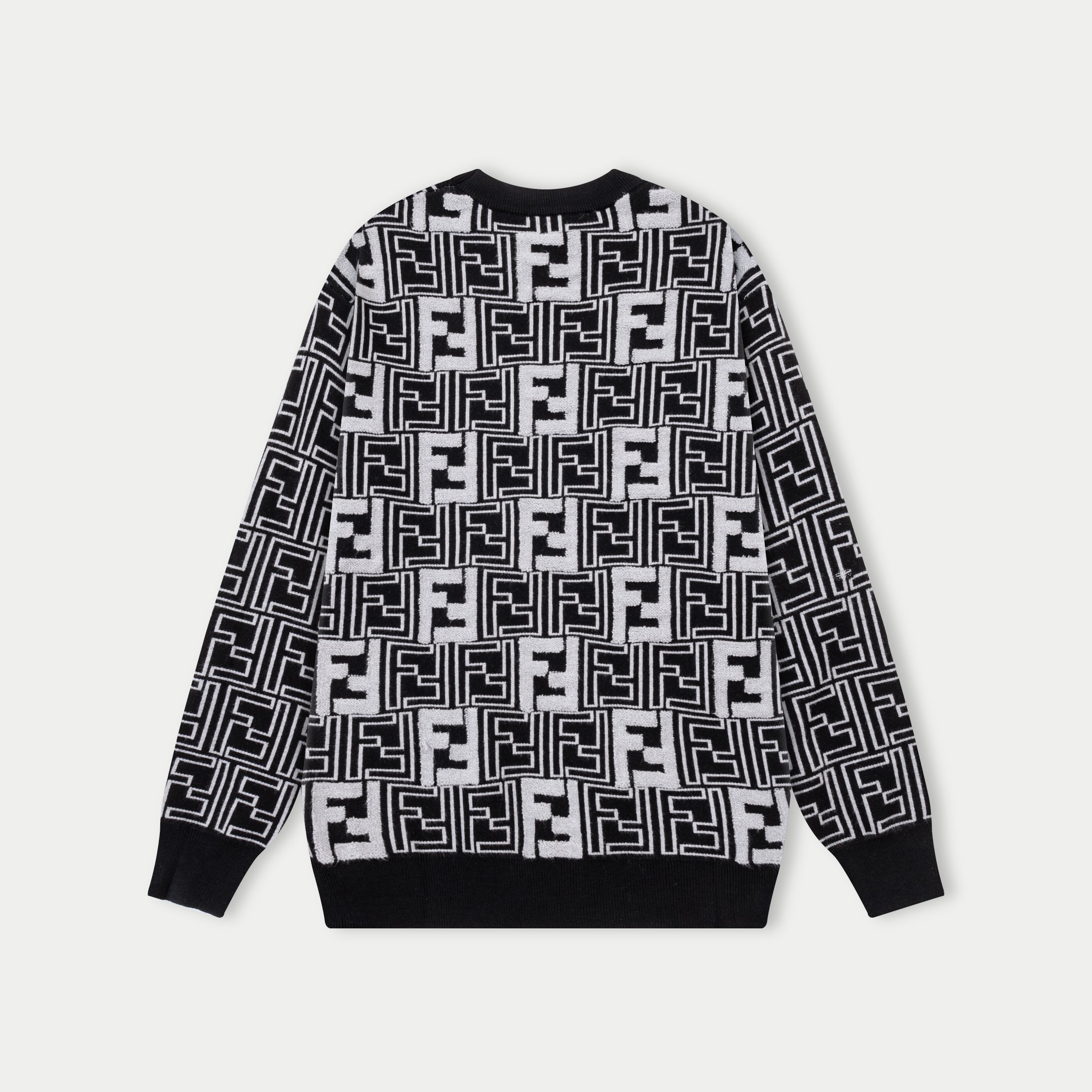 Fendi FF Motif Wool Sweater, Round Neck, Long Sleeves, Unisex Design