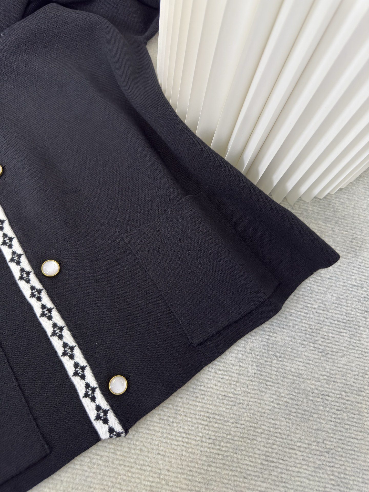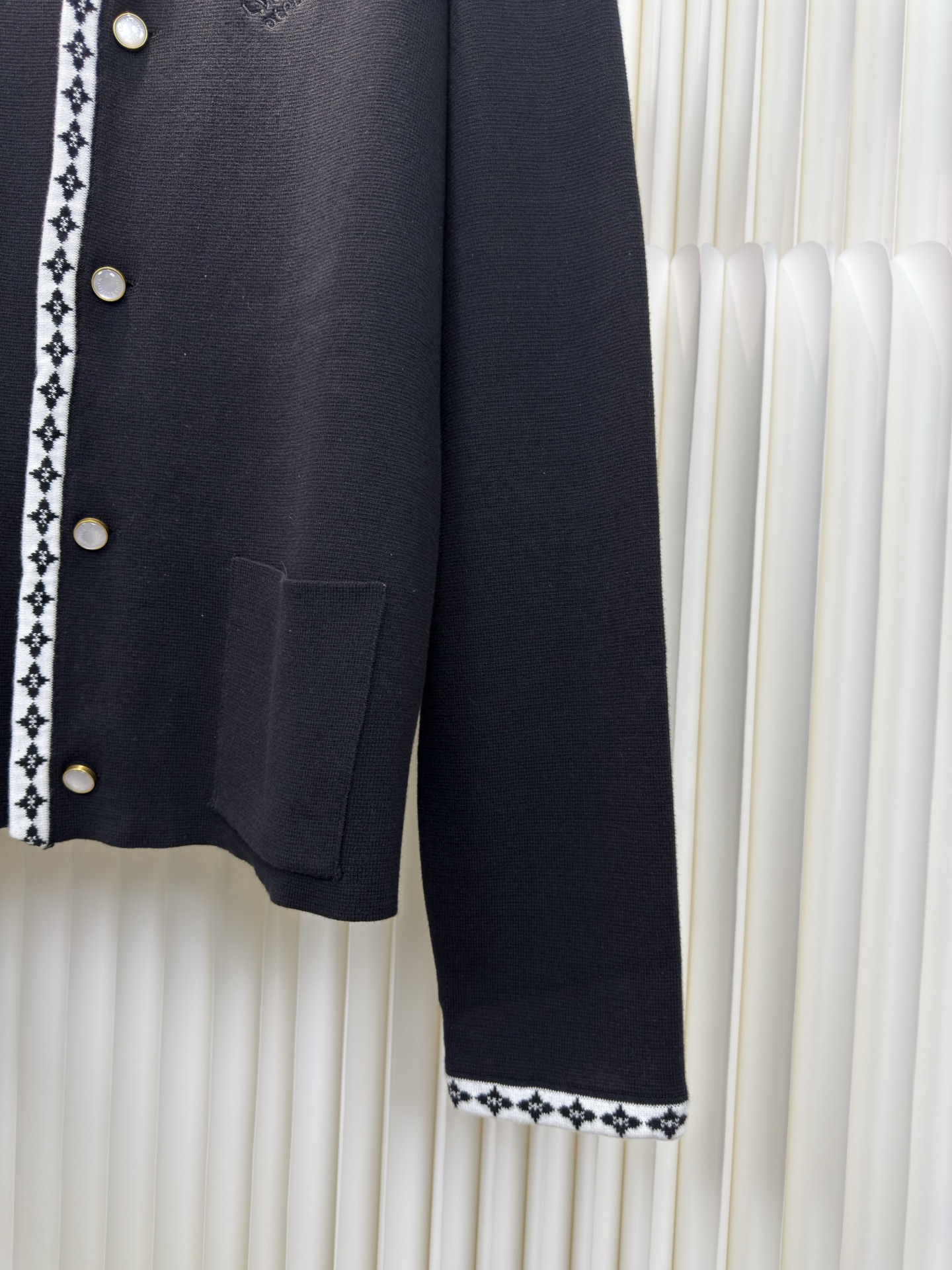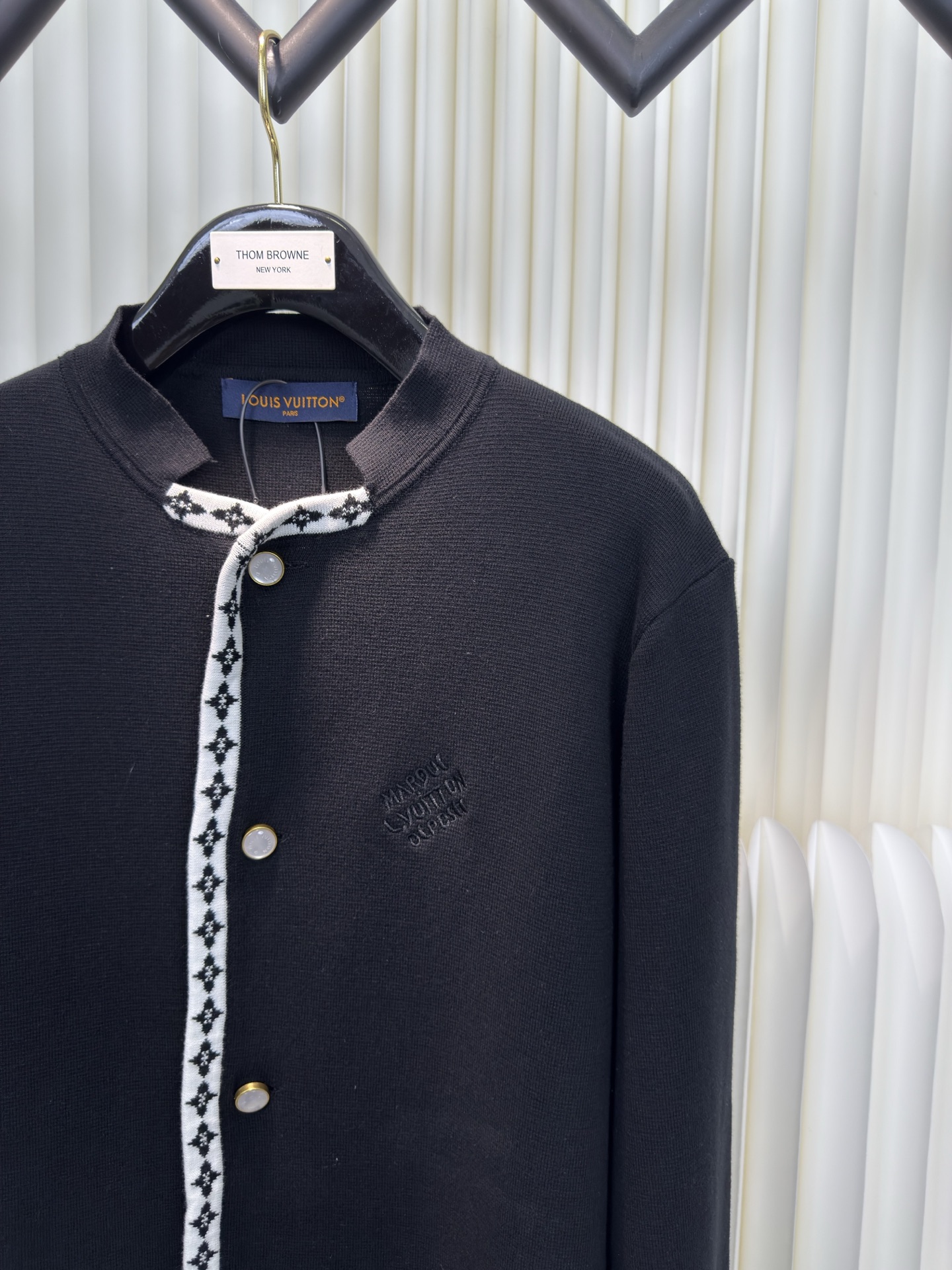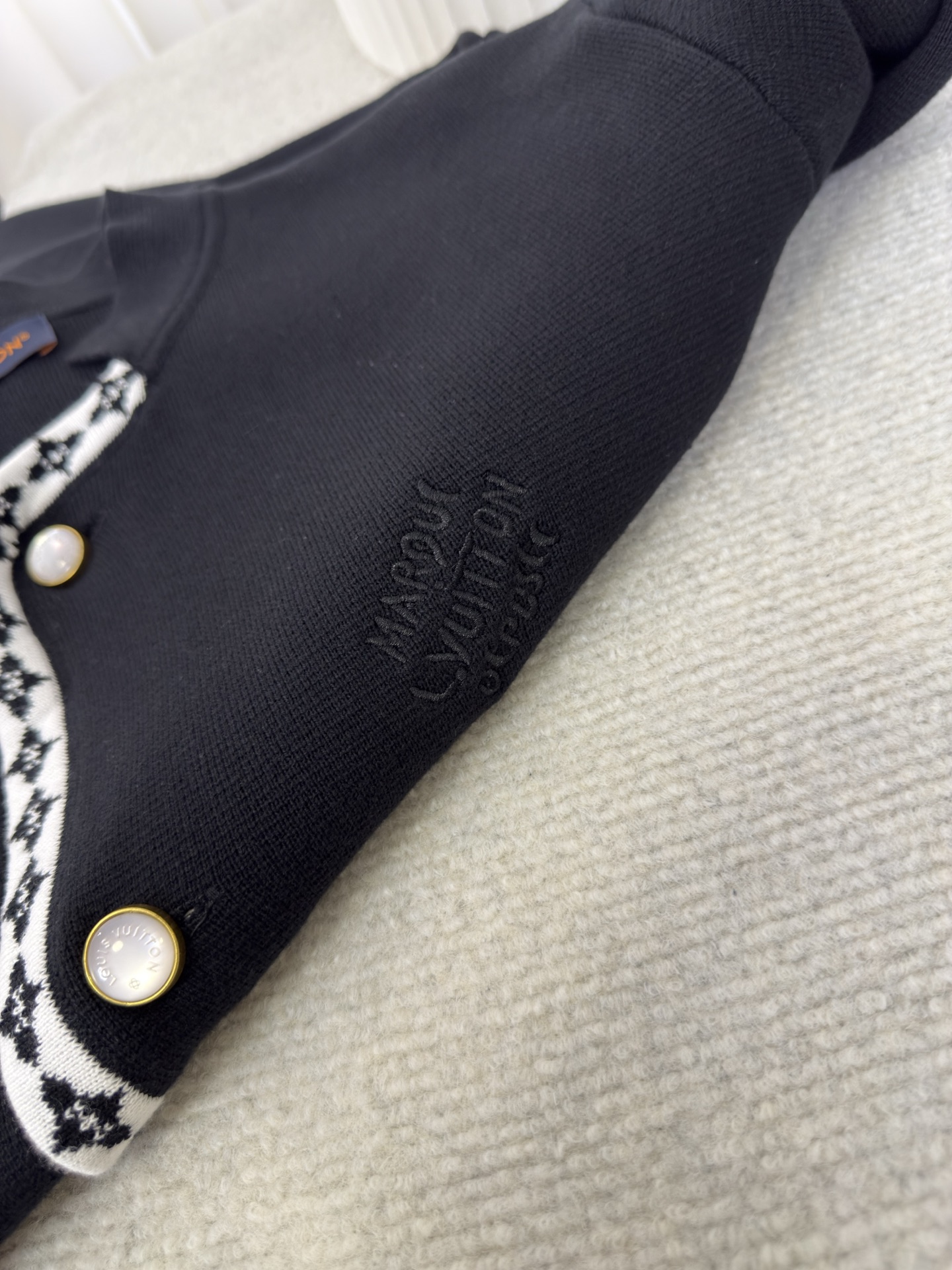 Tags: Designer Knit Jacket, Louis Vuitton Cardigan, Luxury Wool Cardigan, Monogram Trim Cardigan, Wool Blend Knitwear