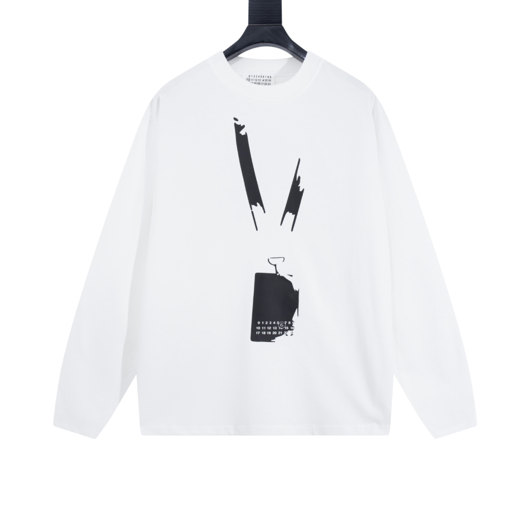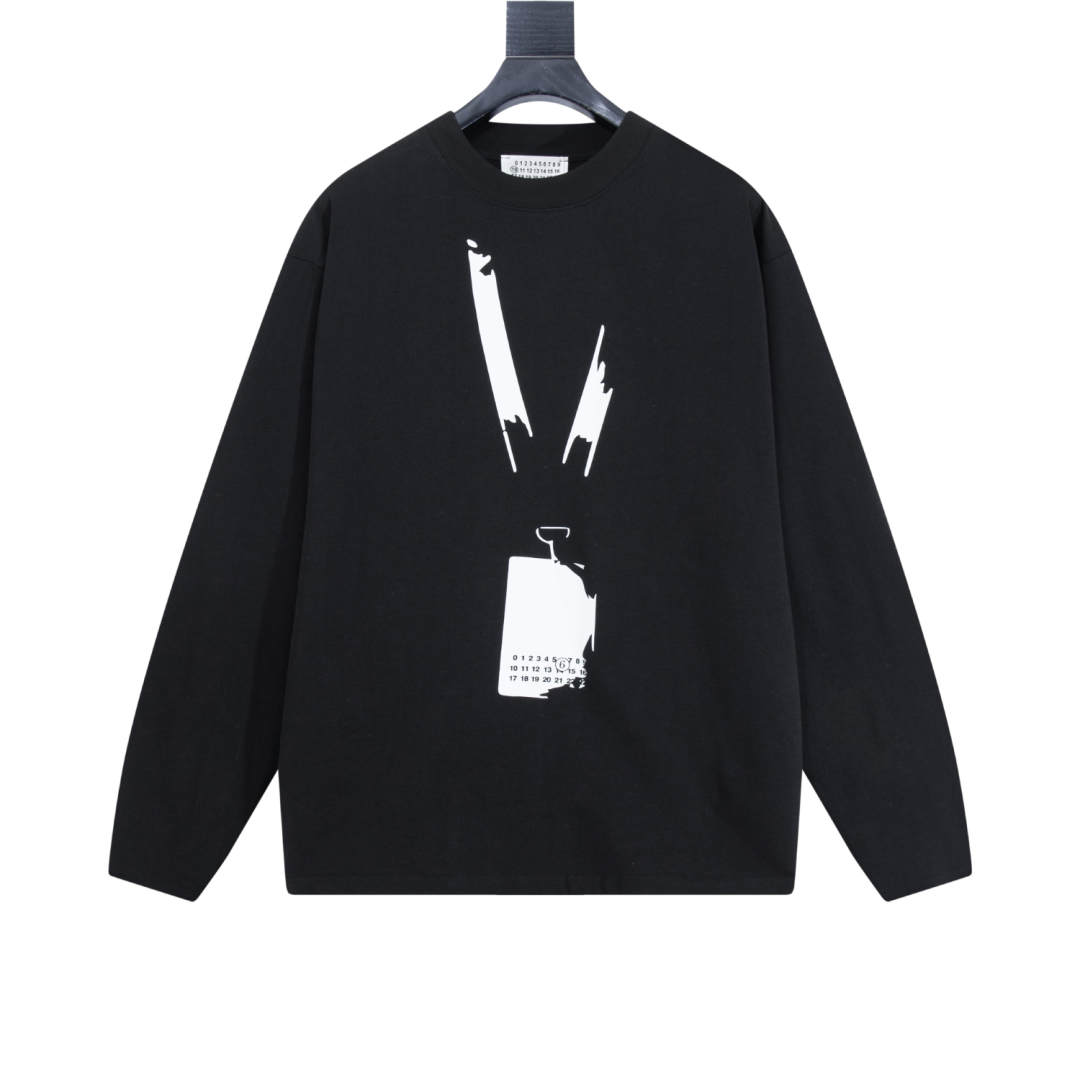 Tags: Black and White Graphic T-shirt, Designer Long Sleeve Tee, High Fashion Casual Wear, Maison Margiela Long Sleeve T-shirt, Margiela Graphic Tee, MM6 Unisex T-shirt