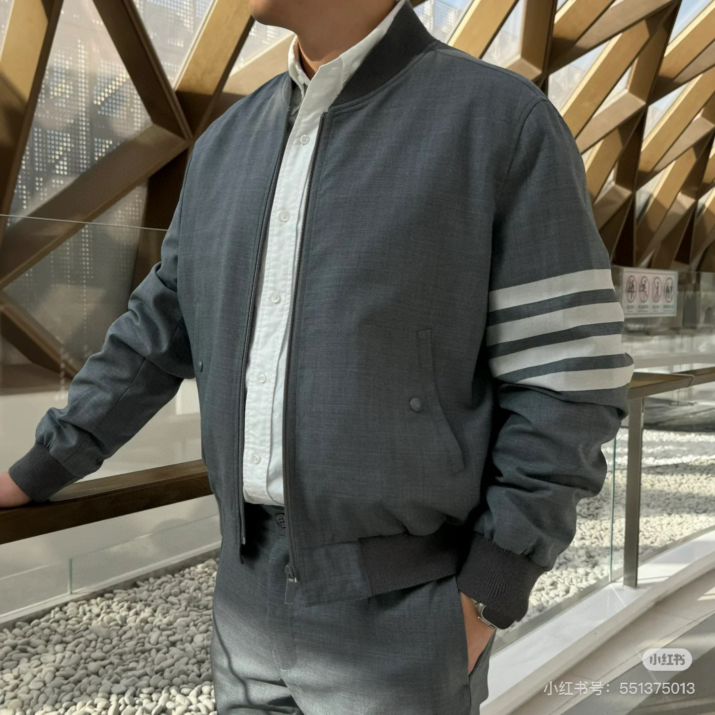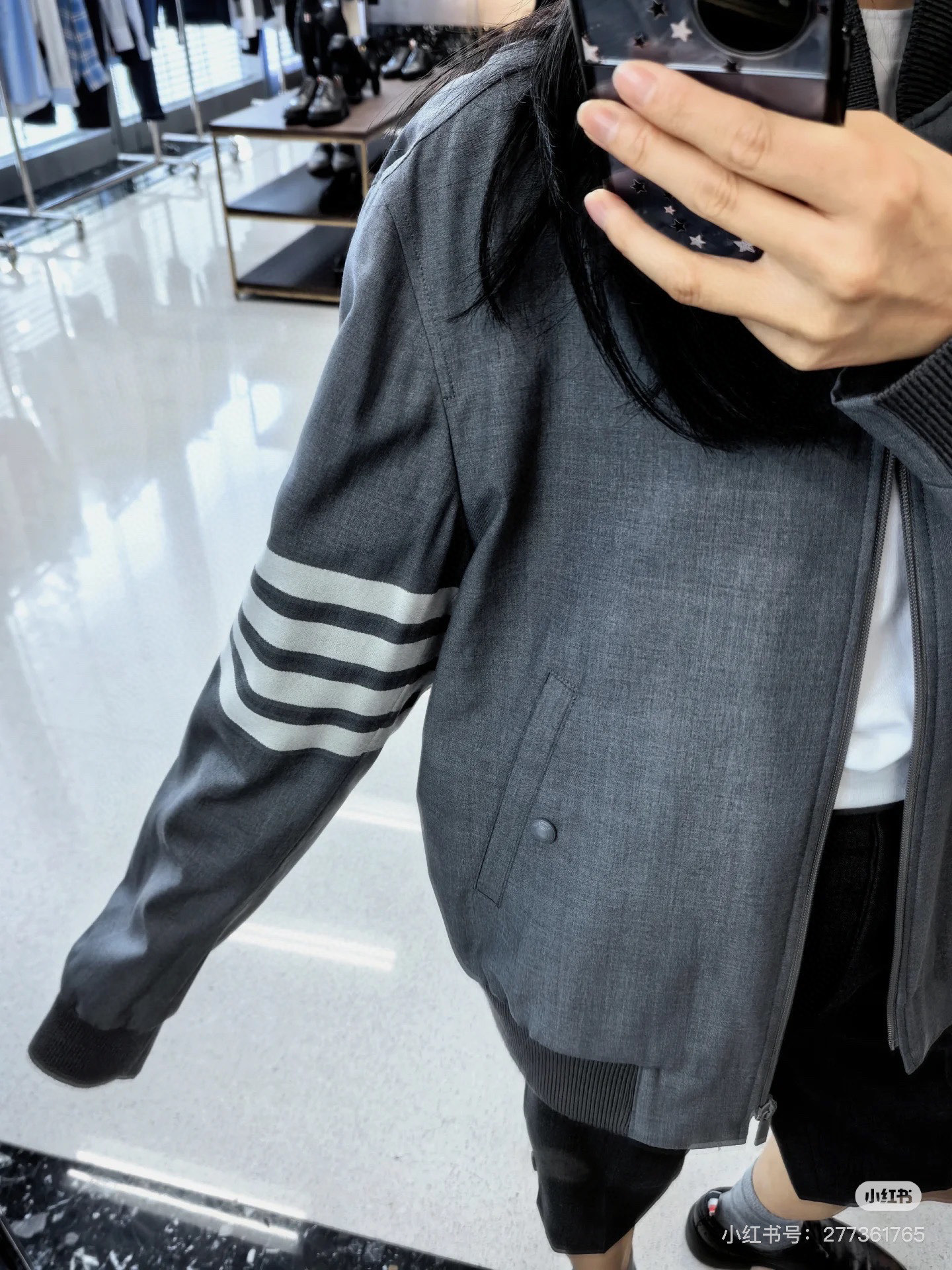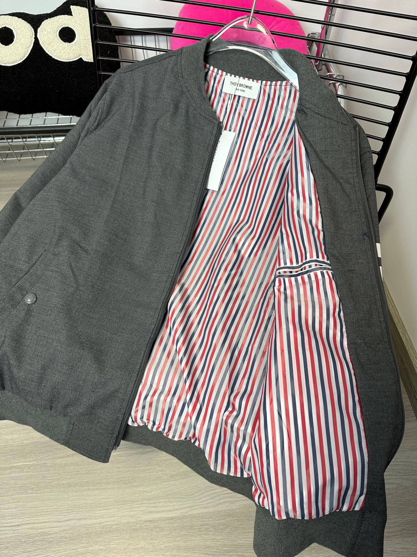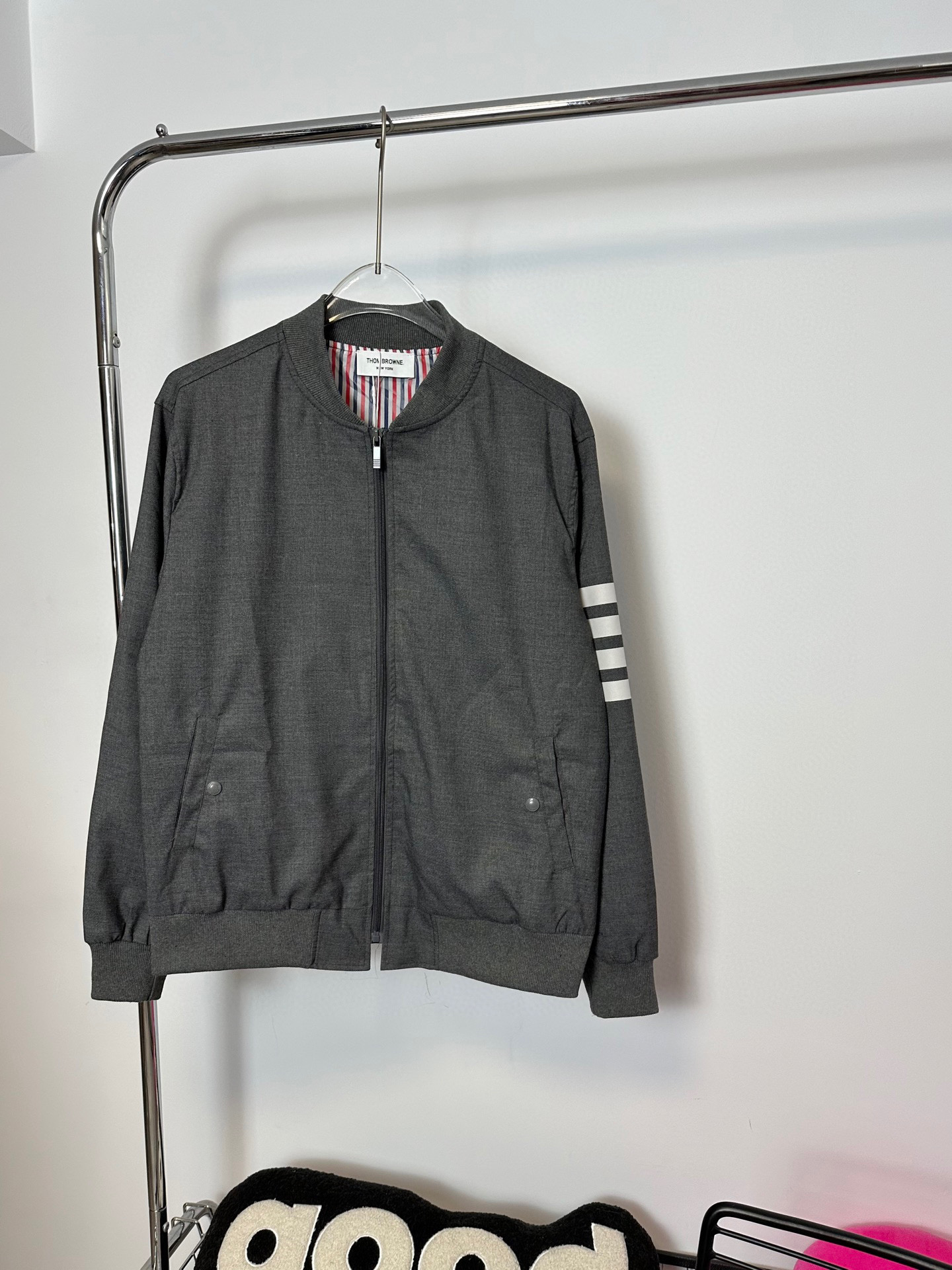 With its classic design and high-quality construction, this Thom Browne bomber jacket is a timeless piece that will remain a staple in your wardrobe for years to come.