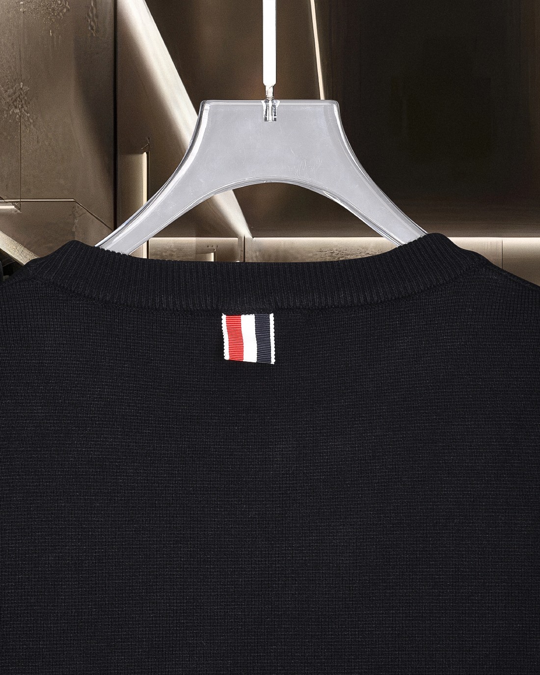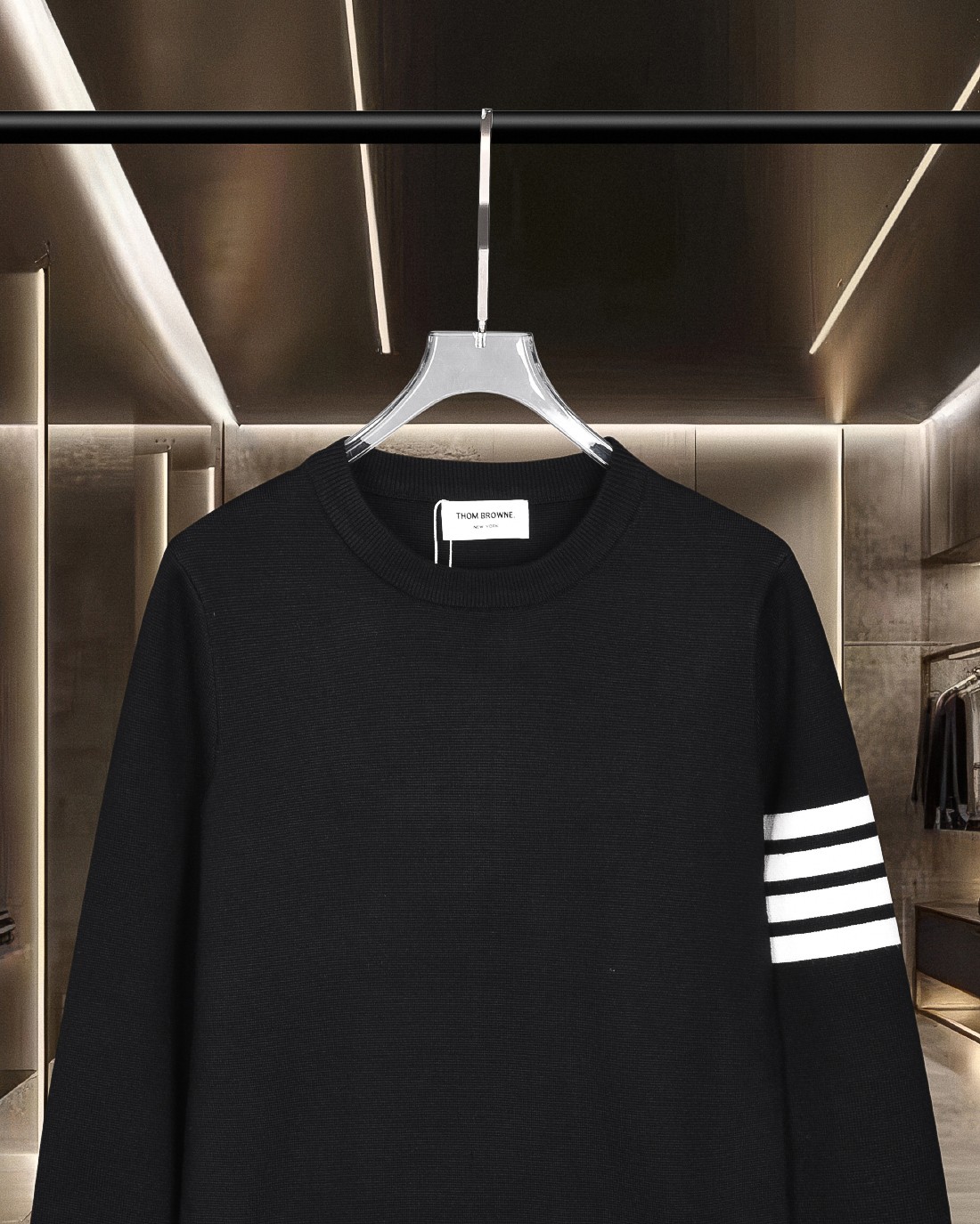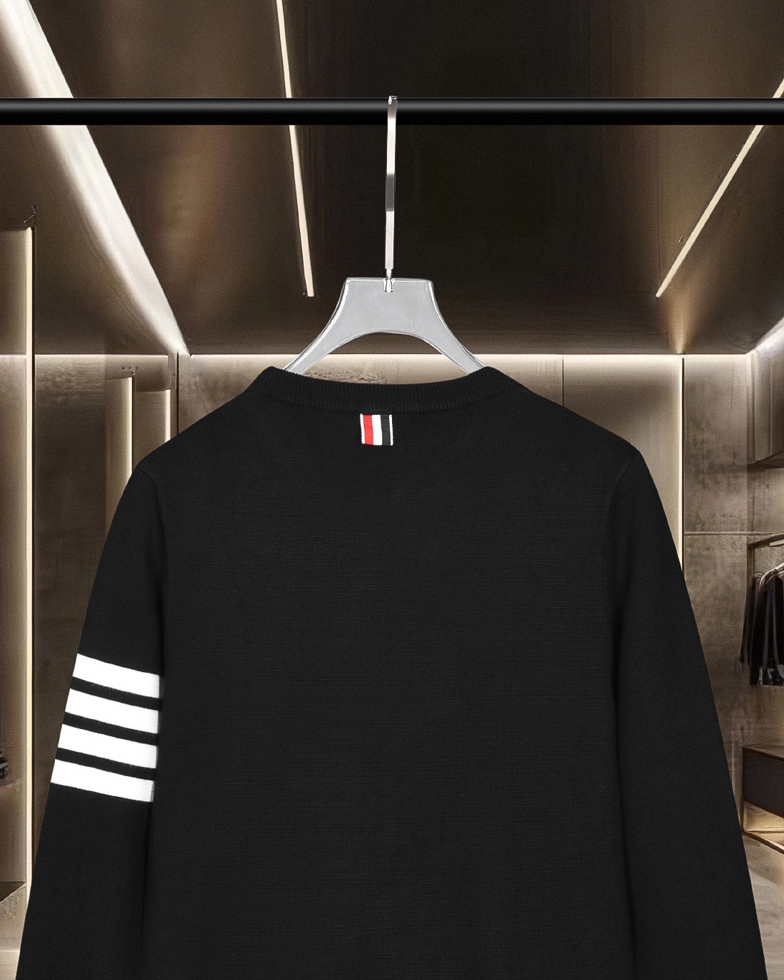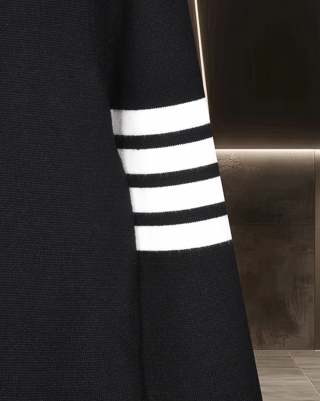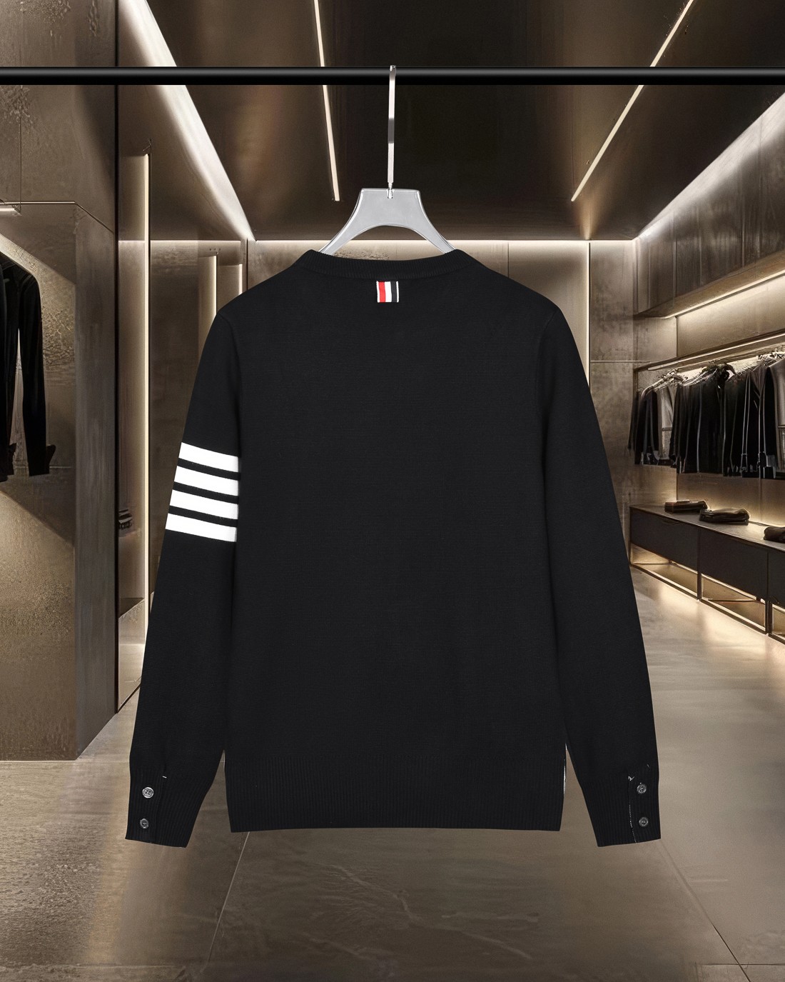 - Features Thom Browne's signature striped design on the sleeve.
