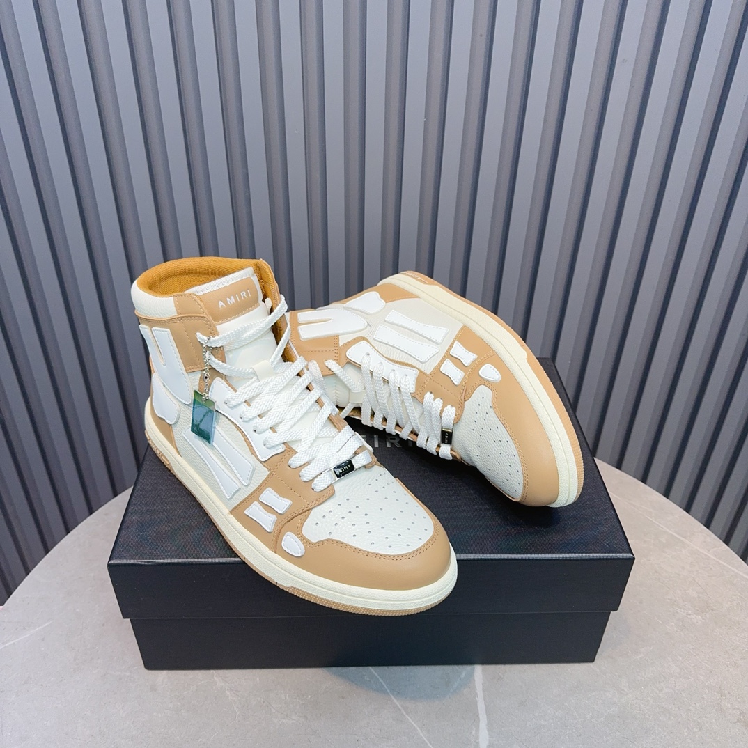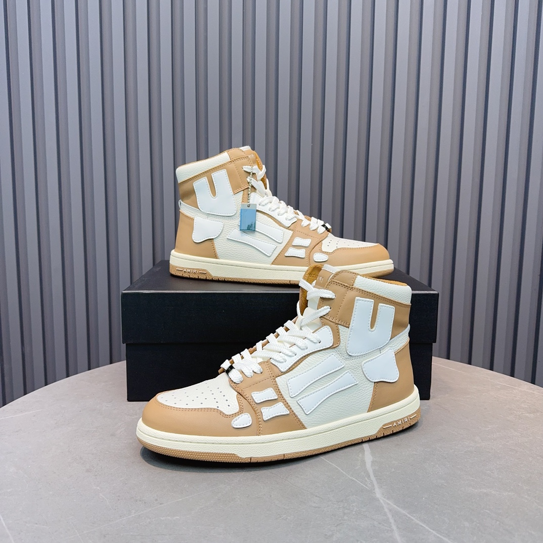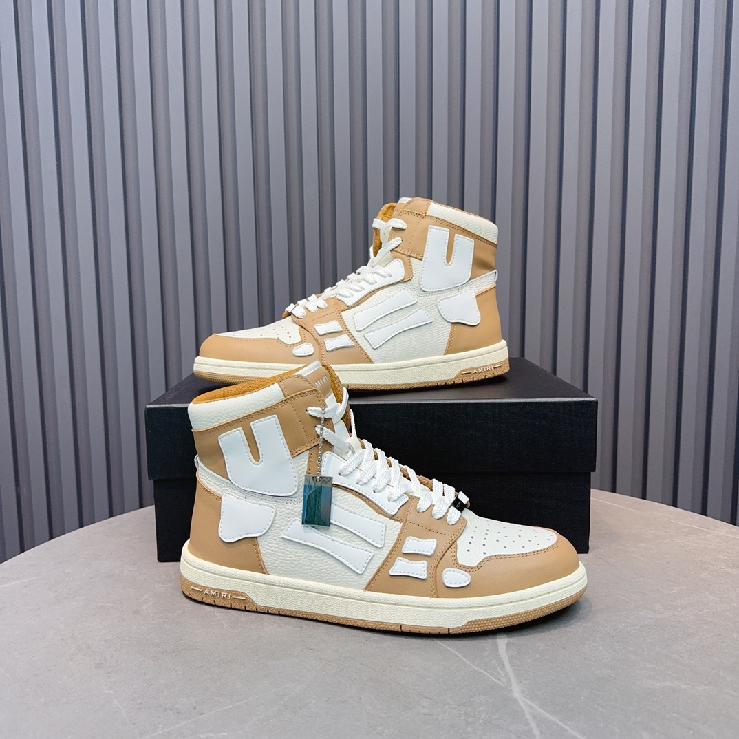 Amiri Skeltop High-Top Sneakers Beige/White Imported Leather Couple Shoes