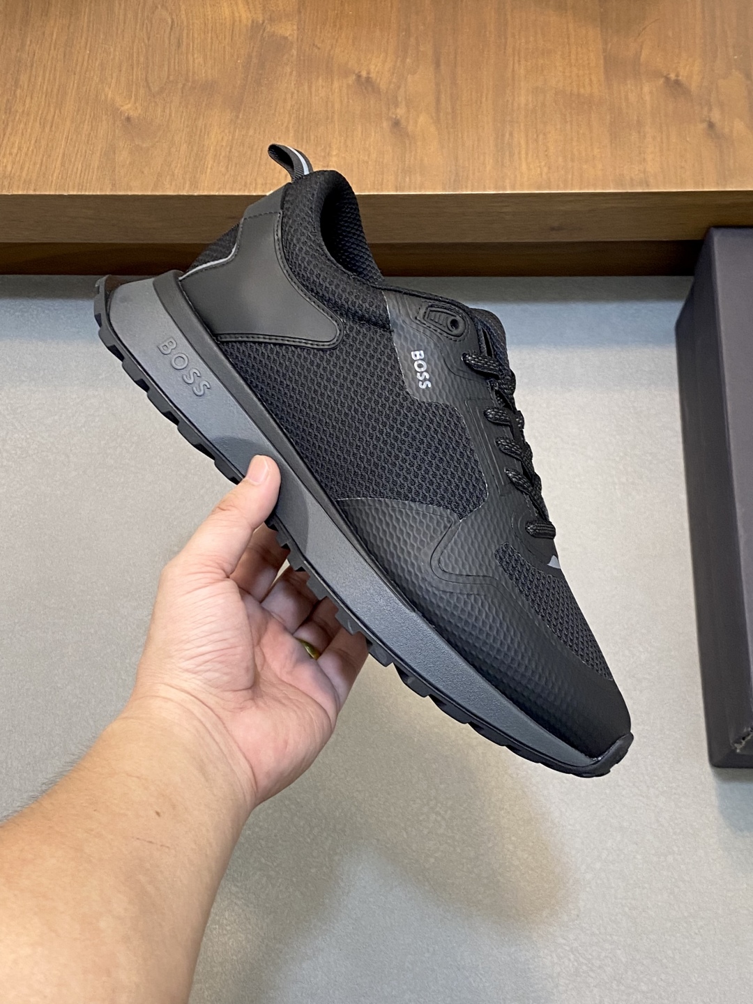 - Signature BOSS logo on the side and tongue.