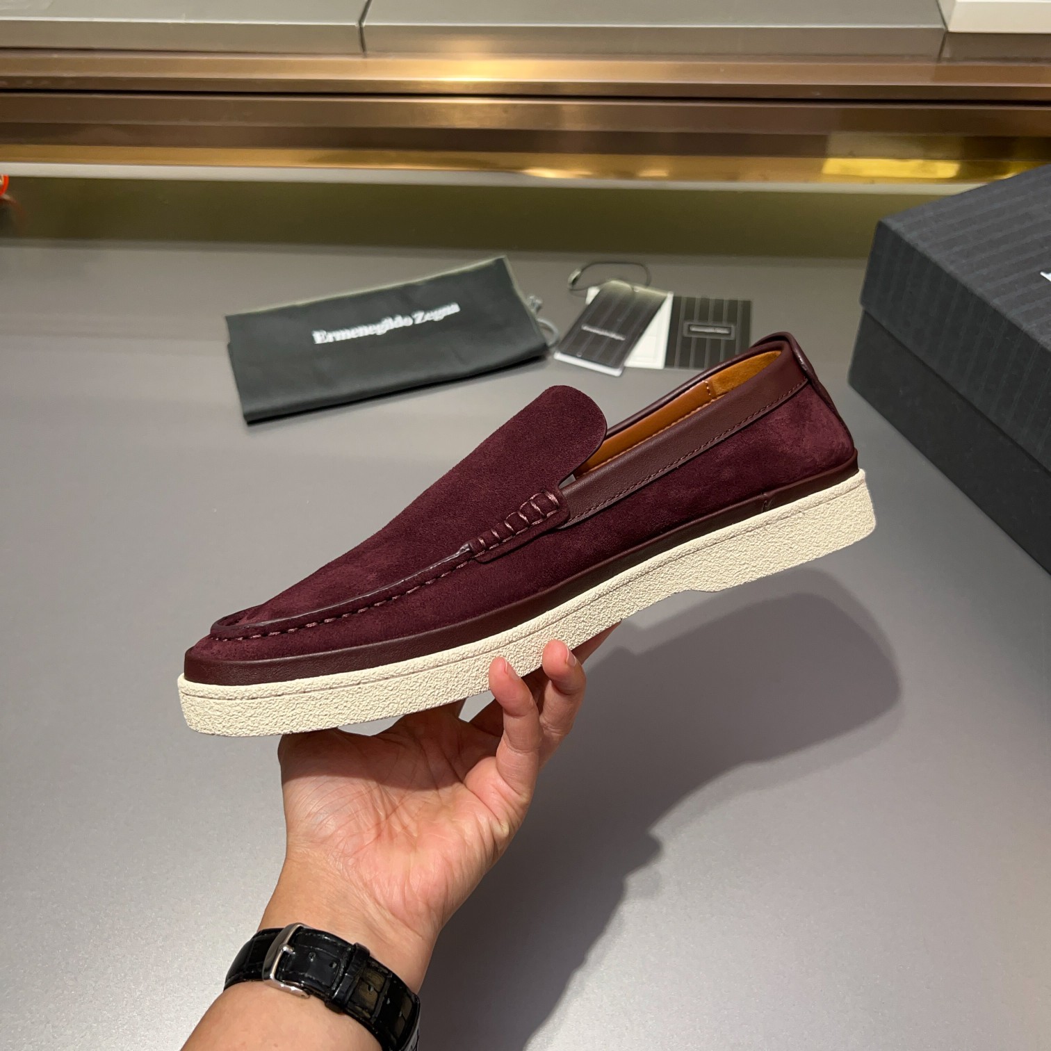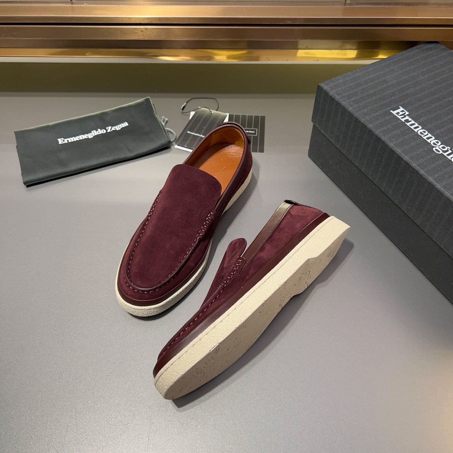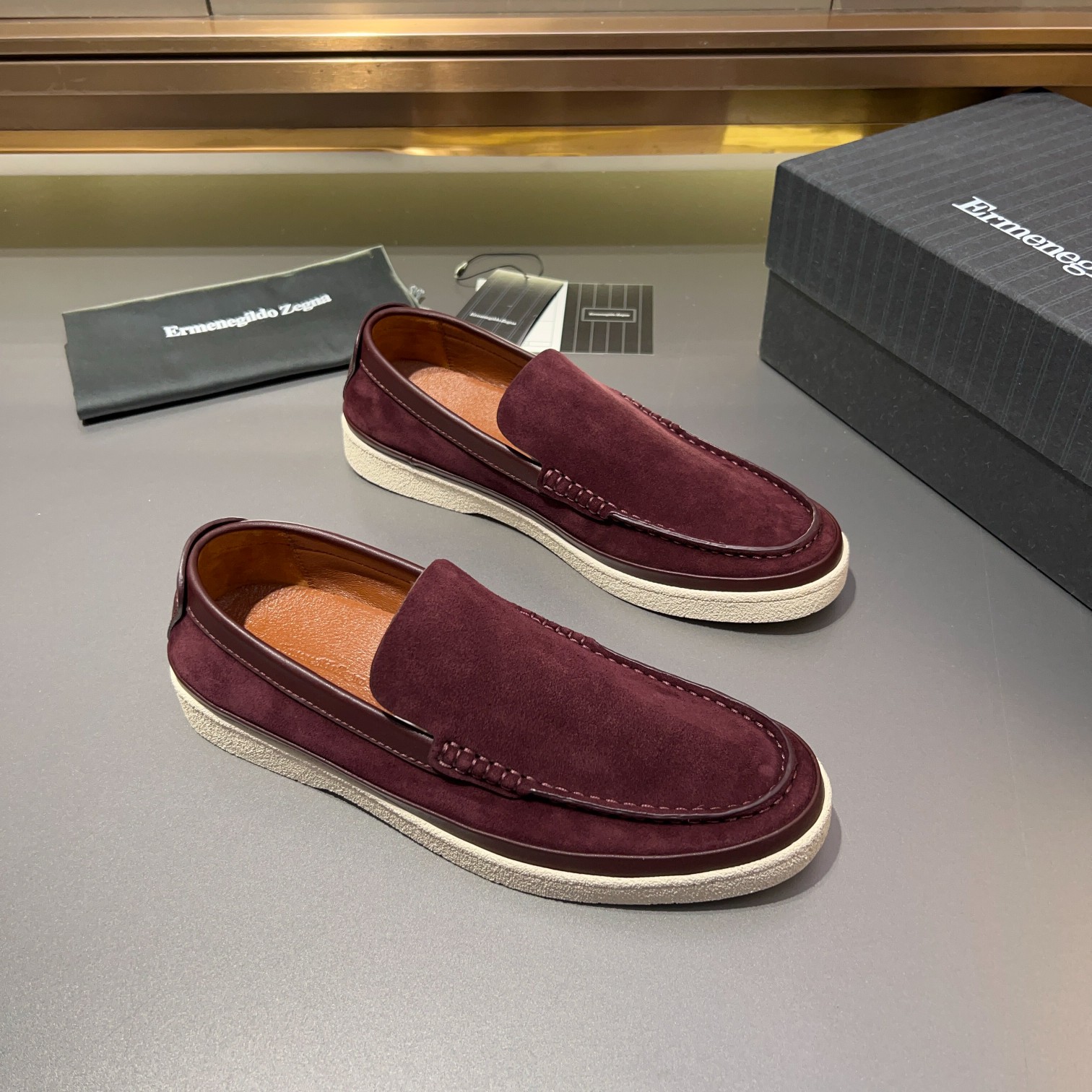 Tags: Burgundy Suede Shoes, Comfortable Men's Shoes, Designer Loafers, Ermenegildo Zegna Loafers, Leather Lined Shoes, Men's Slip On Loafers