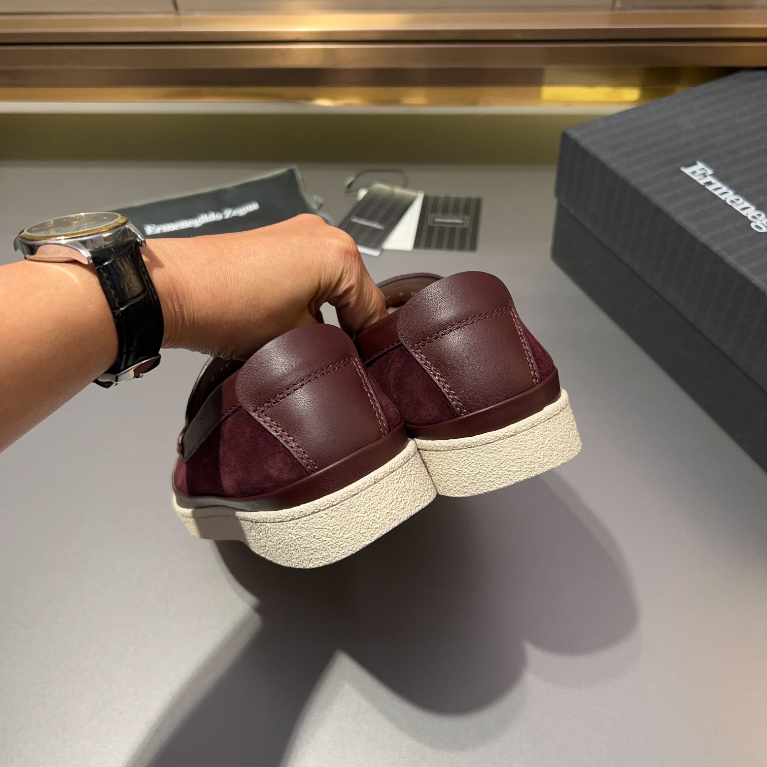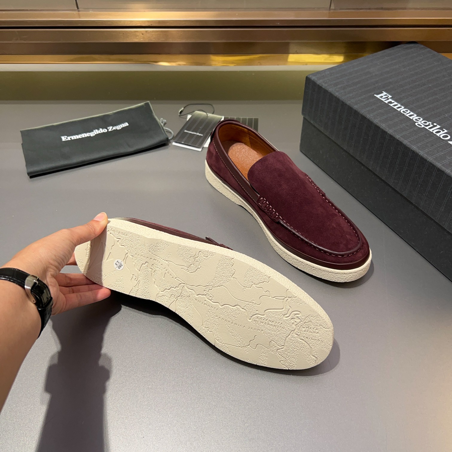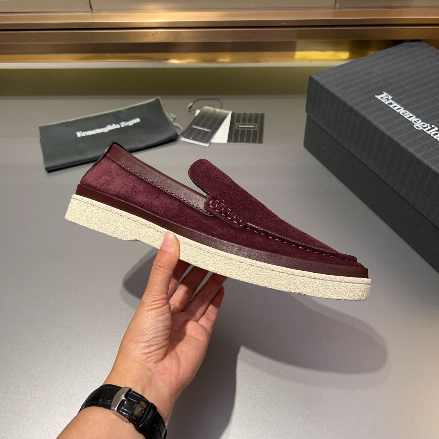 Tags: Burgundy Suede Shoes, Comfortable Men's Shoes, Designer Loafers, Ermenegildo Zegna Loafers, Leather Lined Shoes, Men's Slip On Loafers