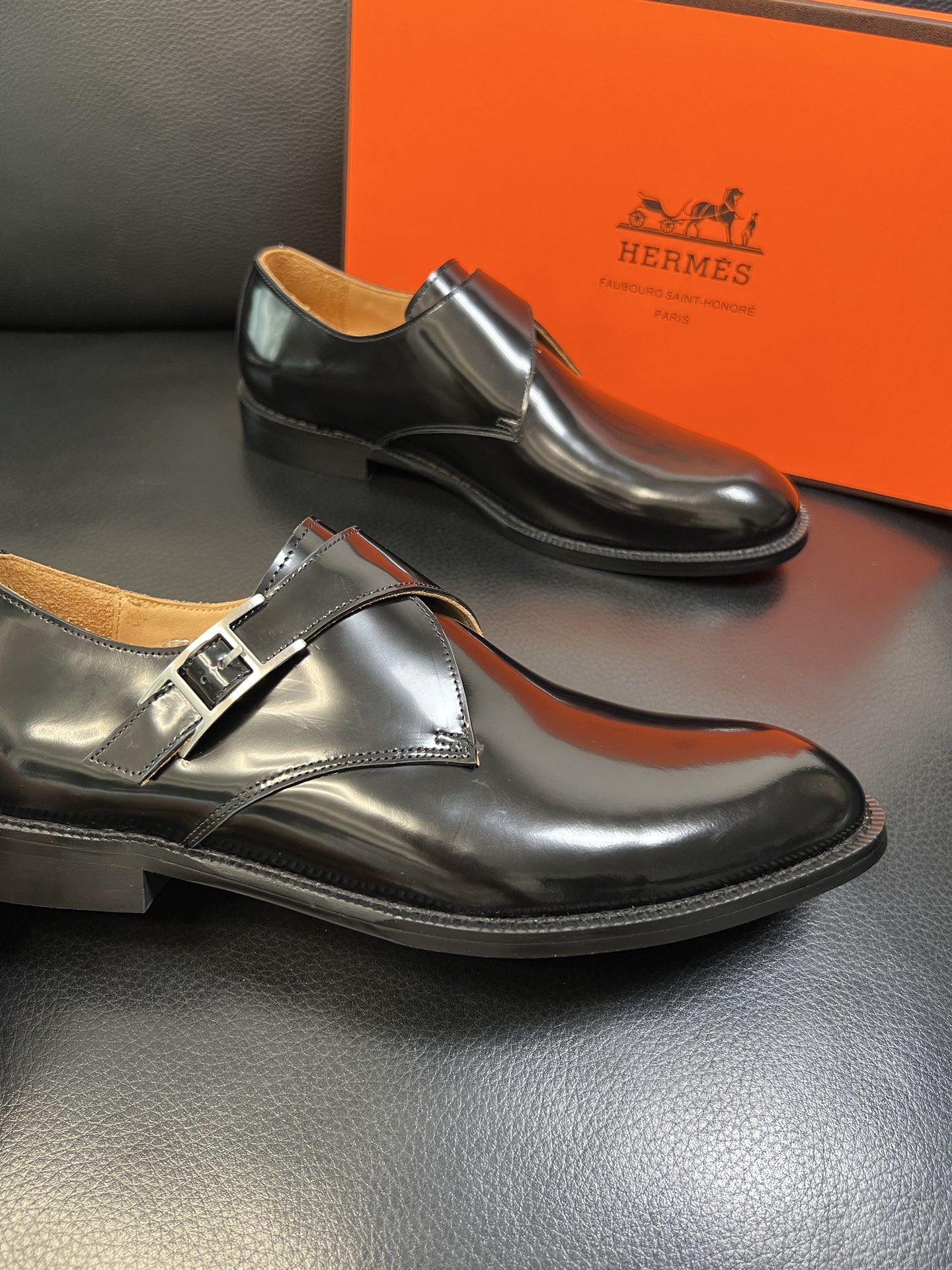 Tags: Black Leather Shoes, Designer dress shoes, Formal Leather Footwear, Hermes Monk Strap Shoes, Men's leather dress shoes