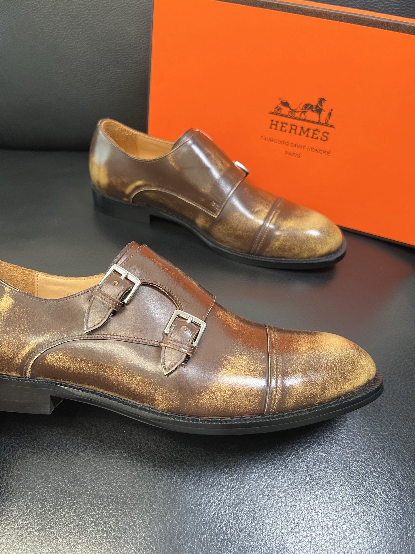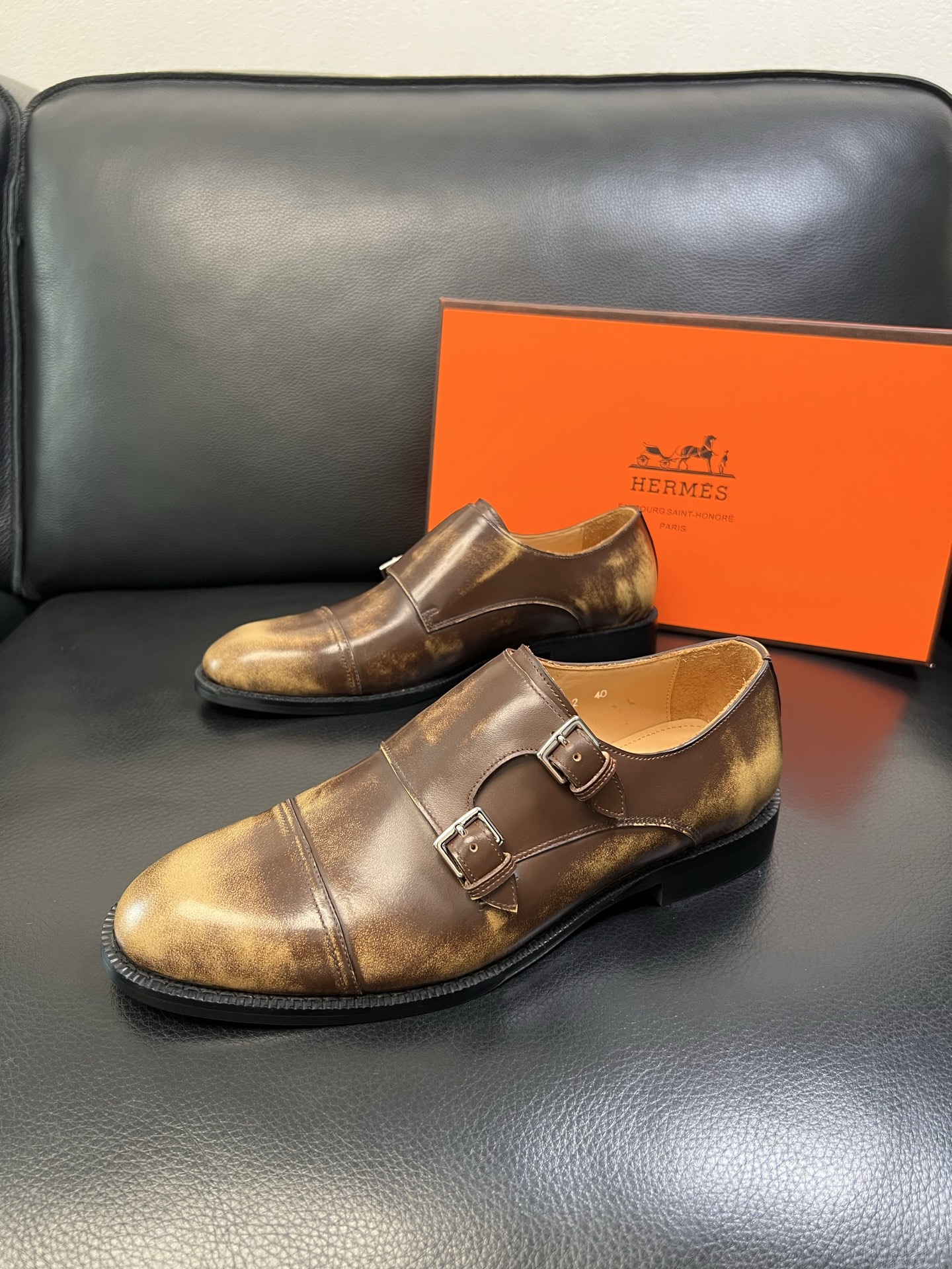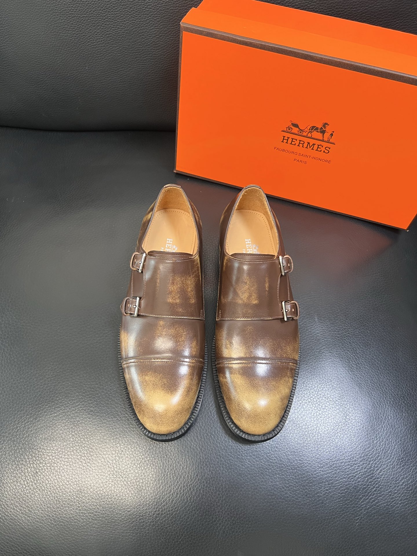 Tags: Brown Leather Dress Shoes, Formal Shoes For Men, Hermes Dress Shoes, Italian leather shoes, Men's Monk Strap Shoes