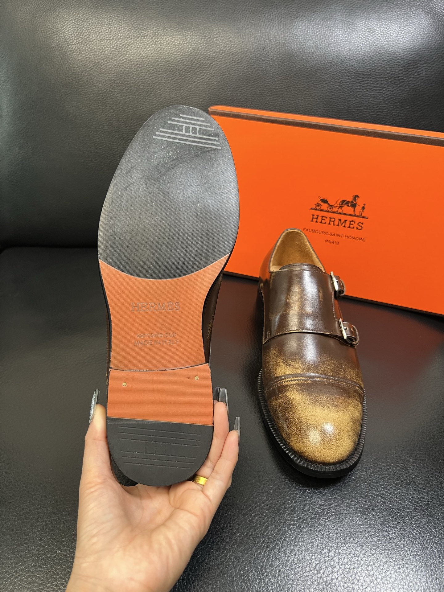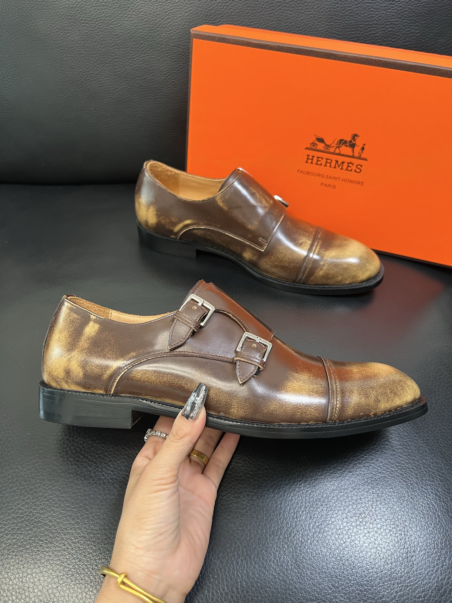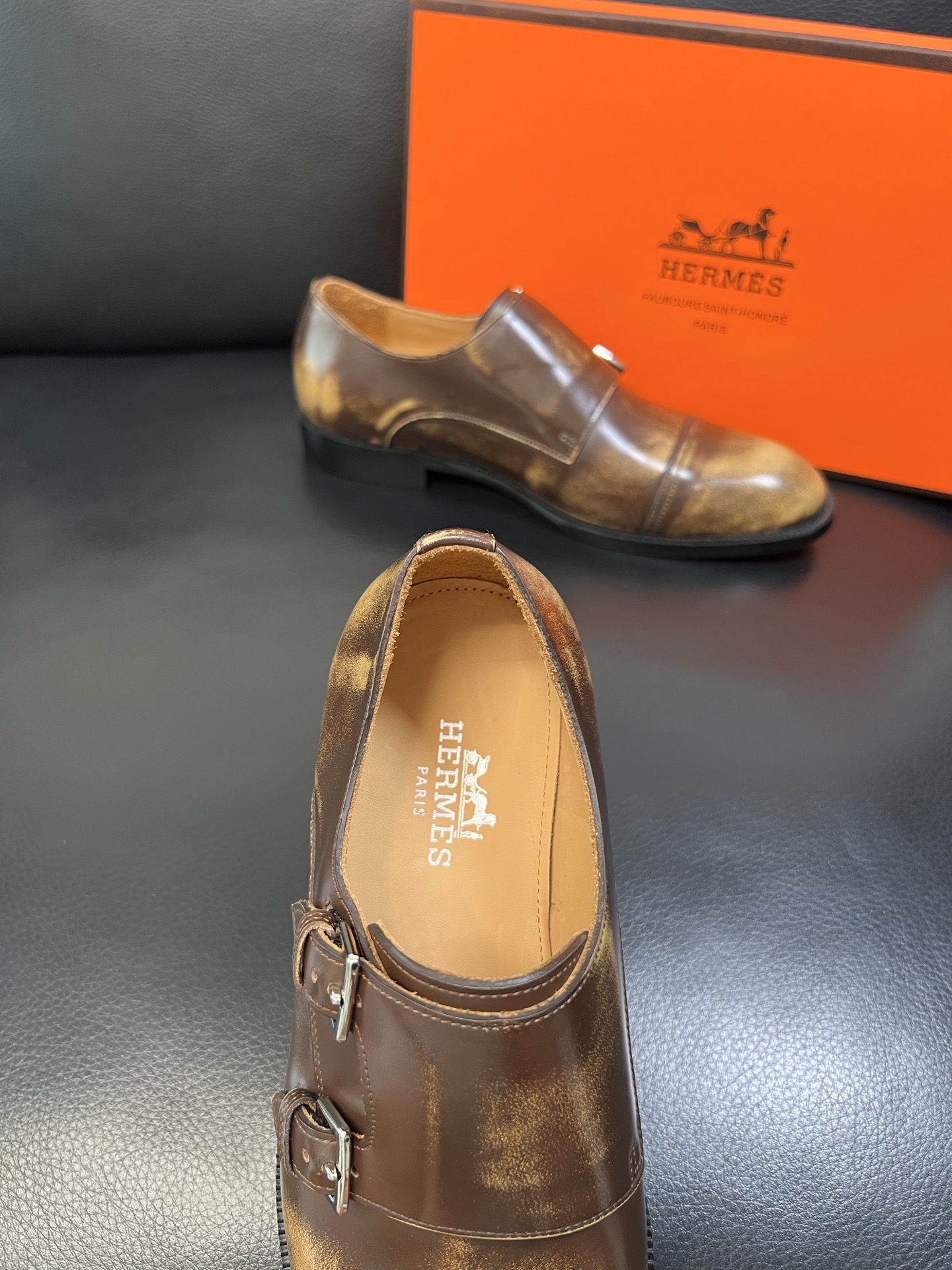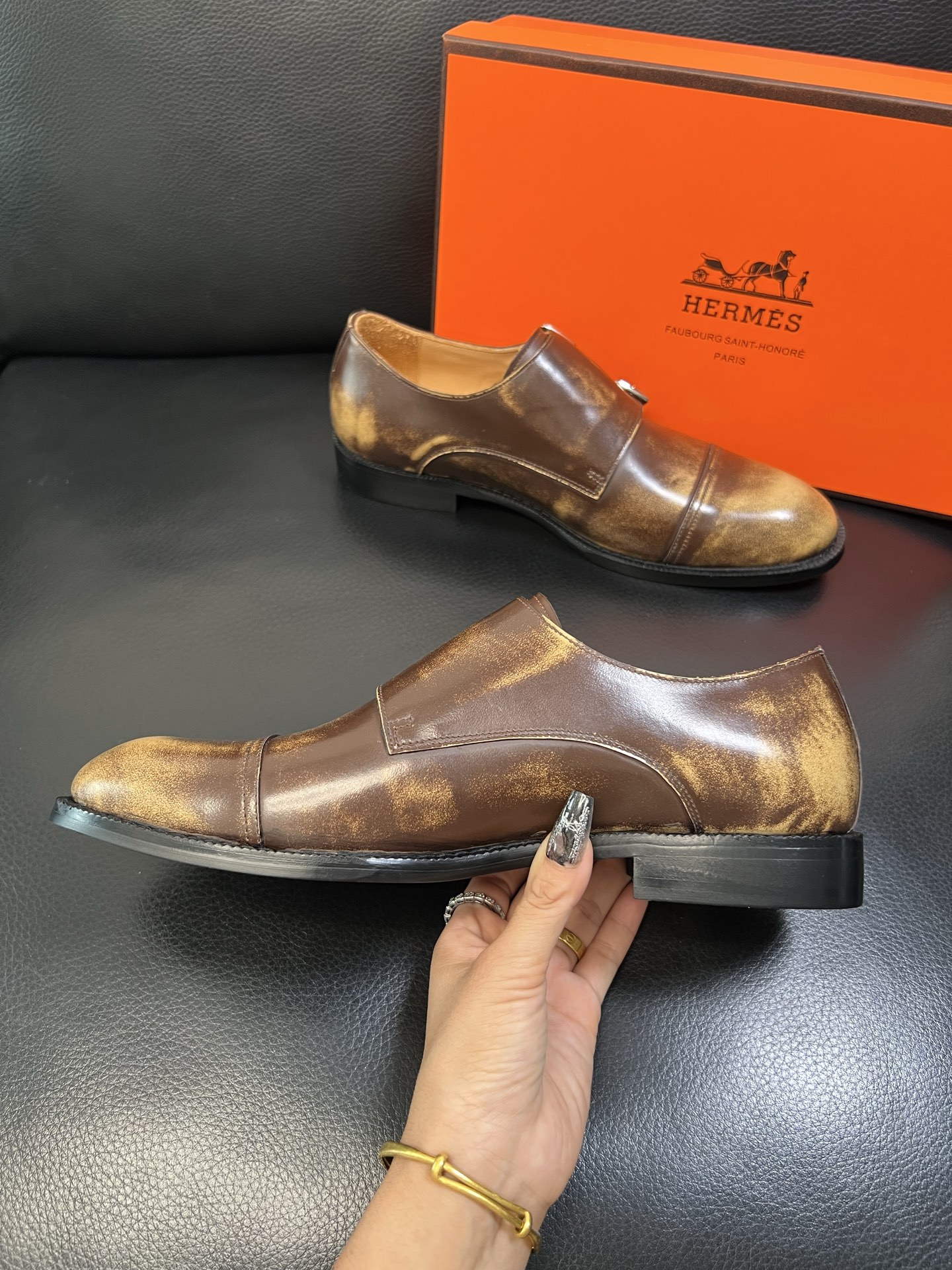 Tags: Brown Leather Dress Shoes, Formal Shoes For Men, Hermes Dress Shoes, Italian leather shoes, Men's Monk Strap Shoes