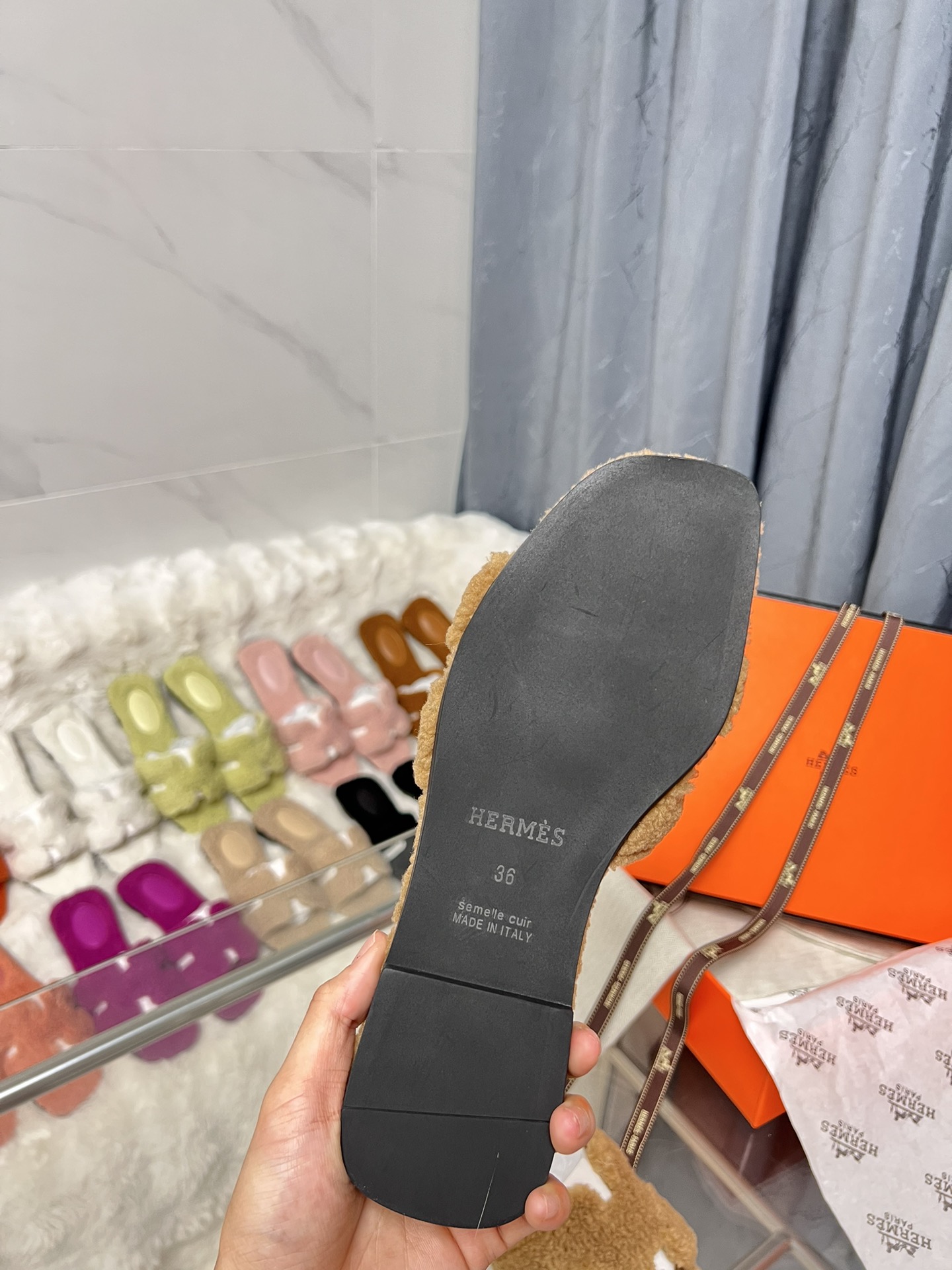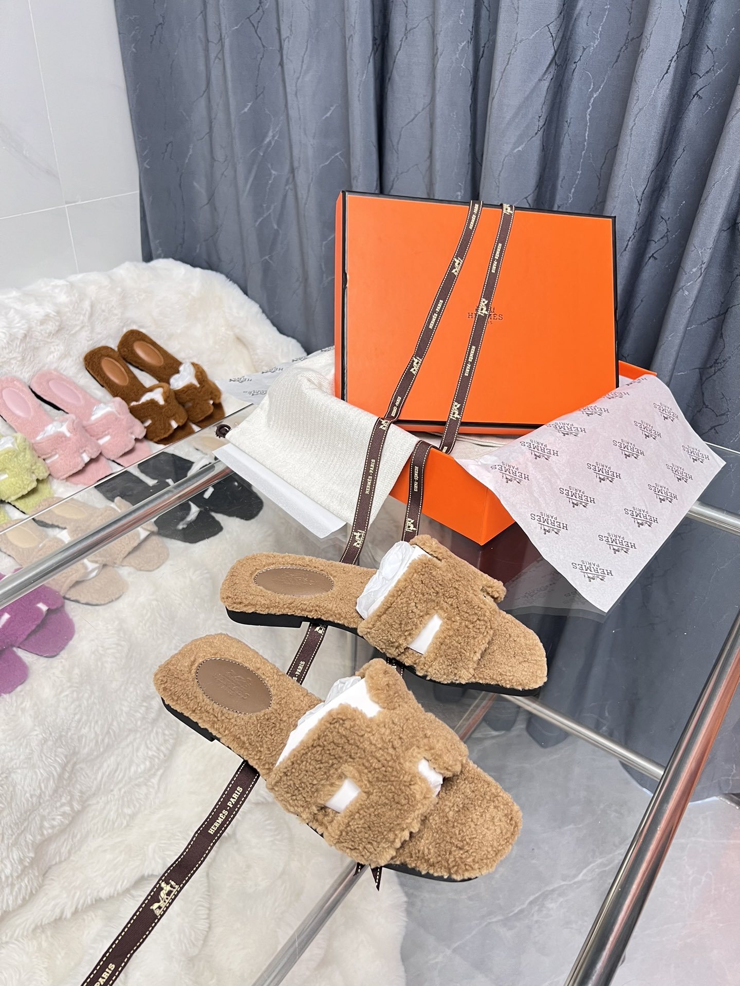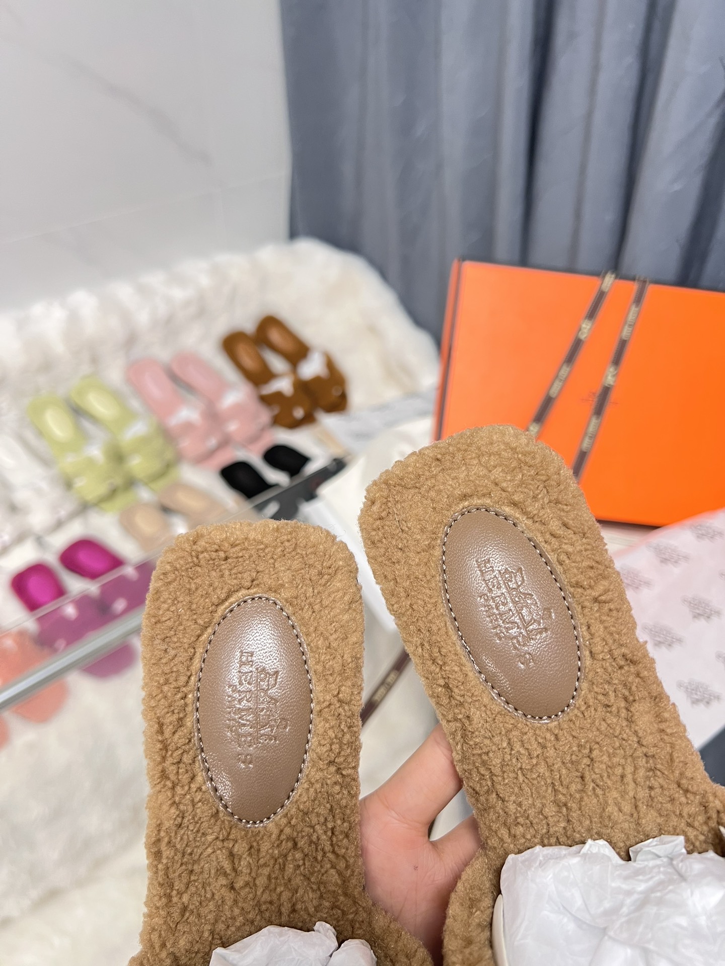 Hermès Teddy Shearling Slippers - Cozy Indoor/Outdoor Comfort, 22 Colors