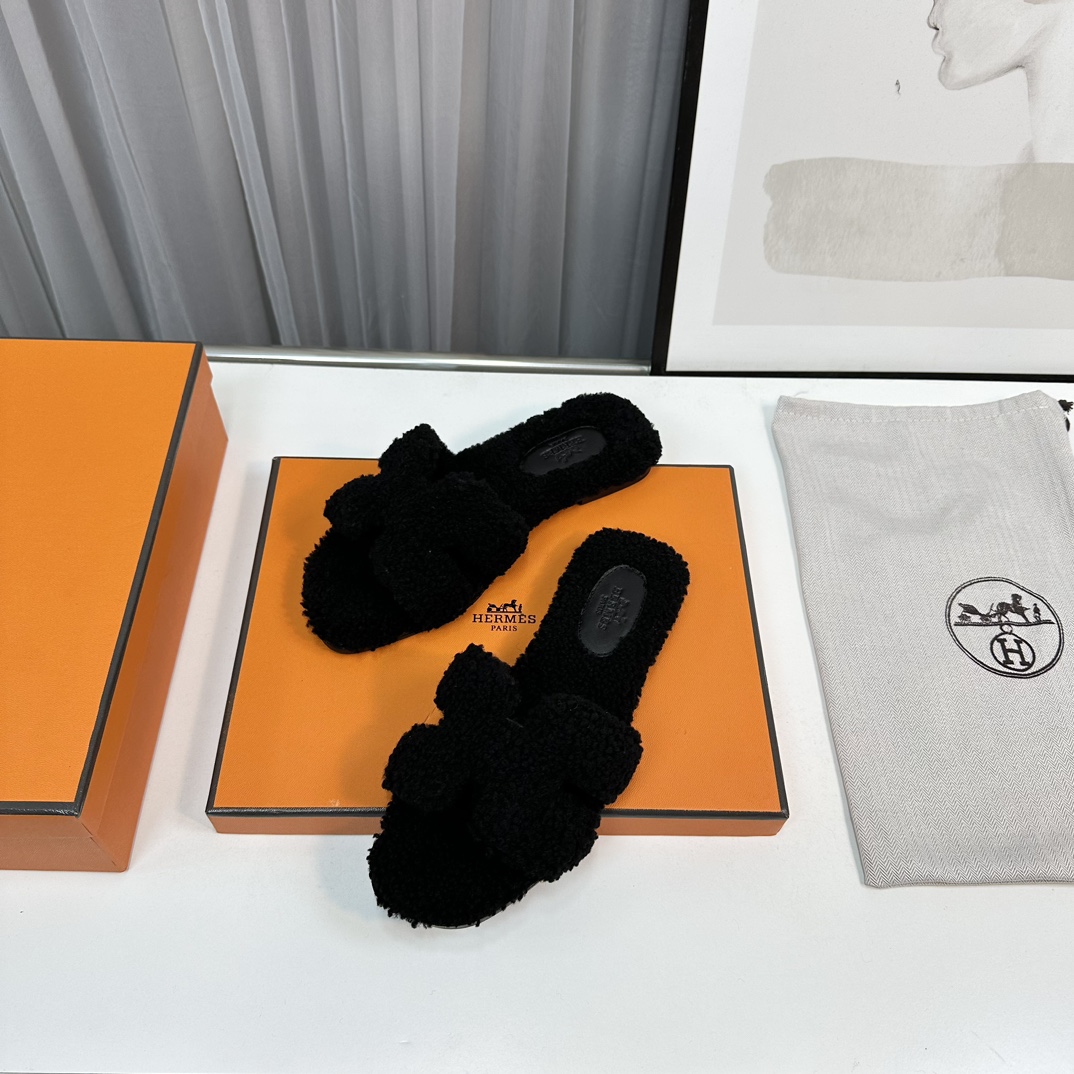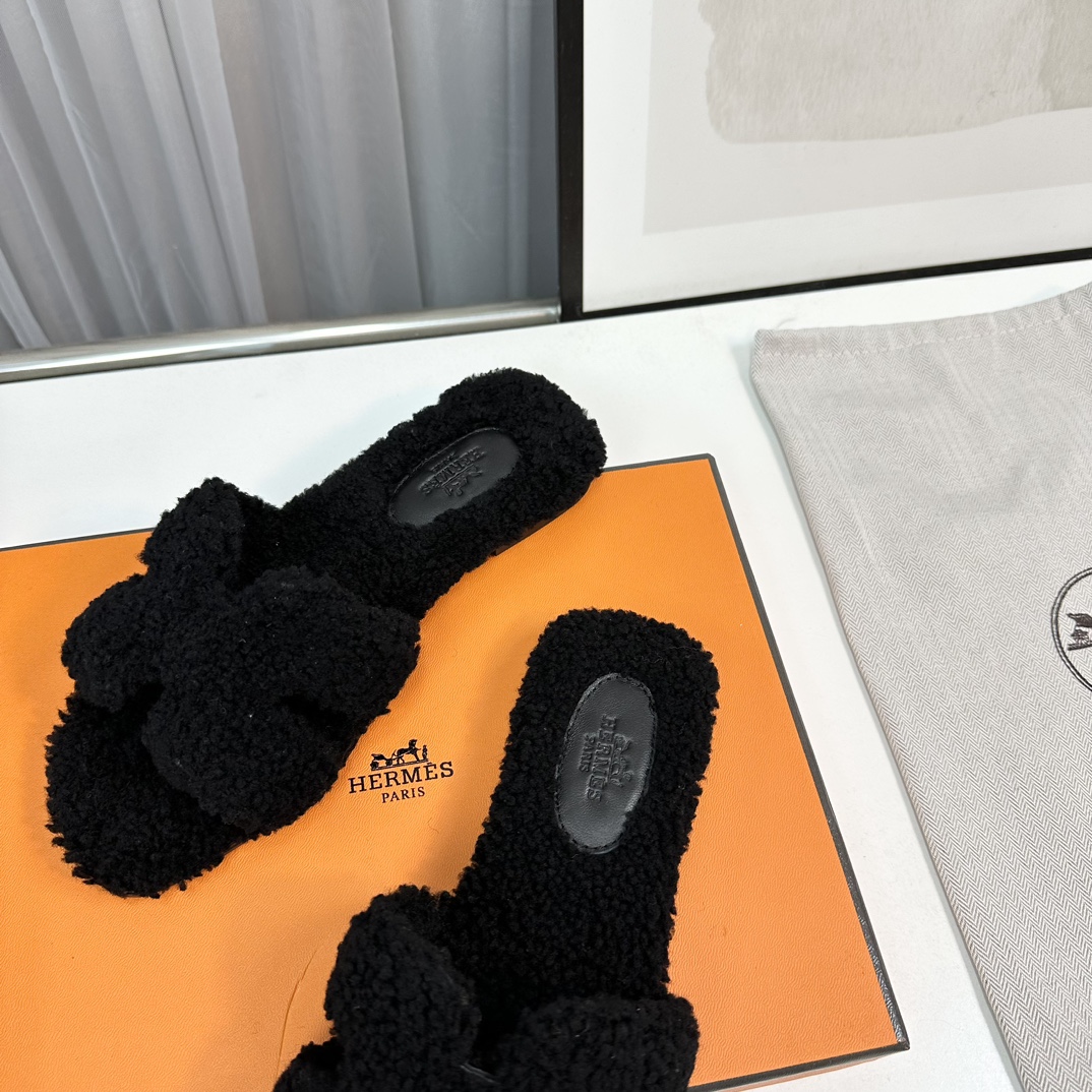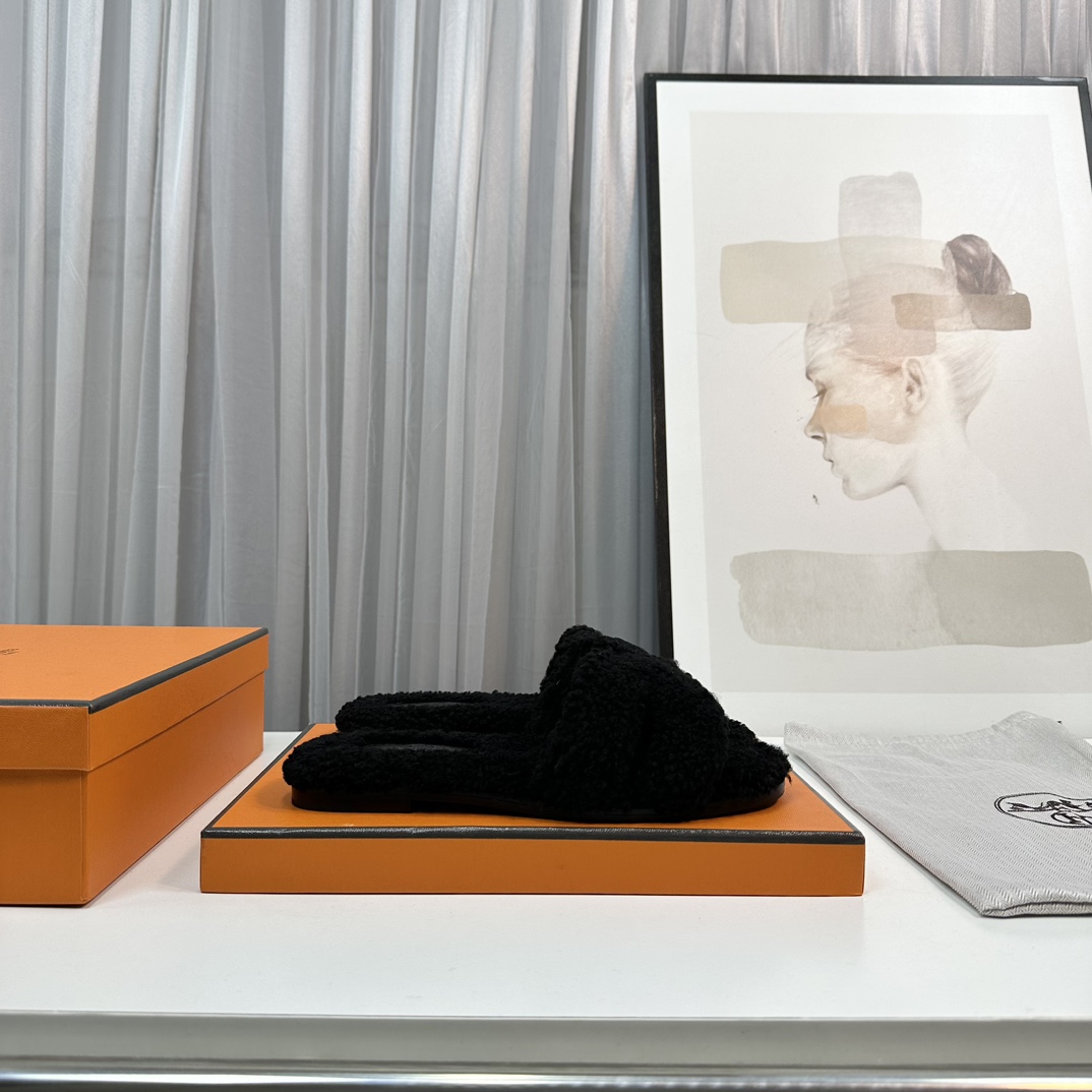 Hermès Teddy Wool H Slippers - Cozy Flat Slides for Women, Sizes 35-42