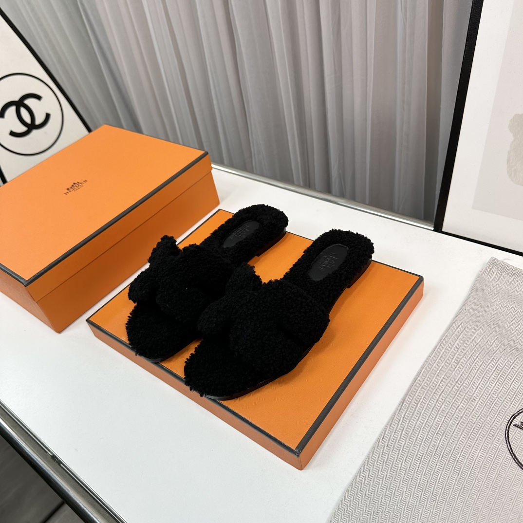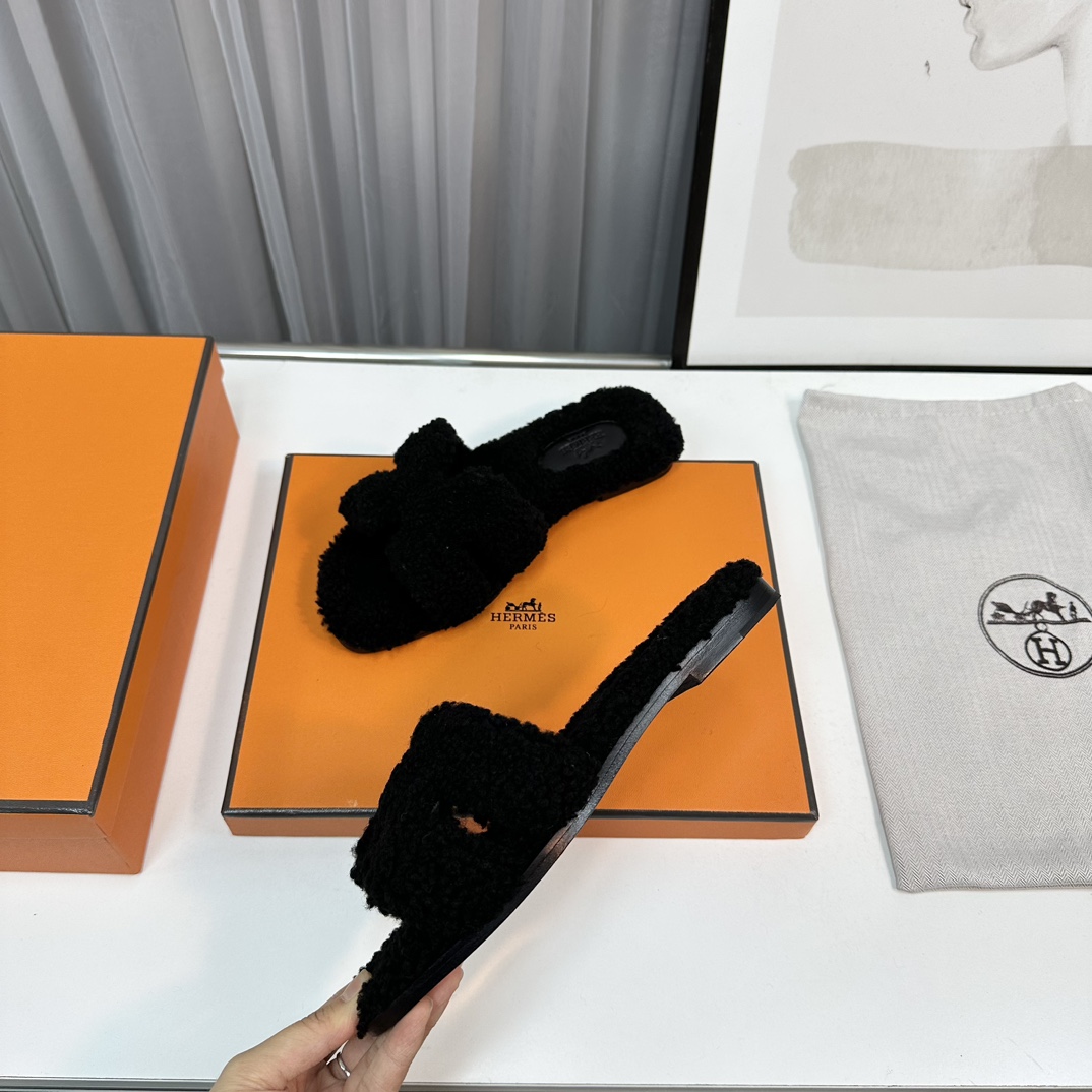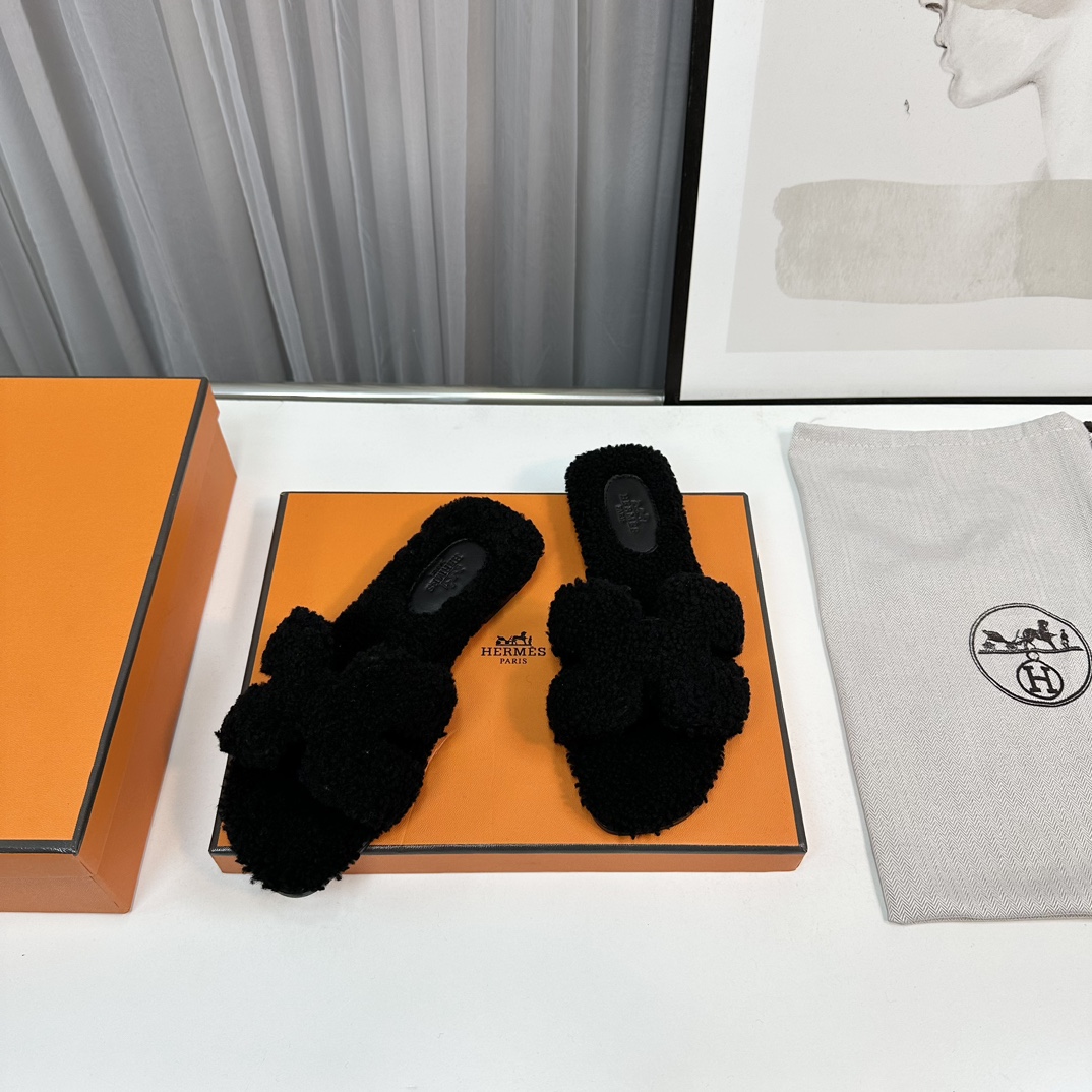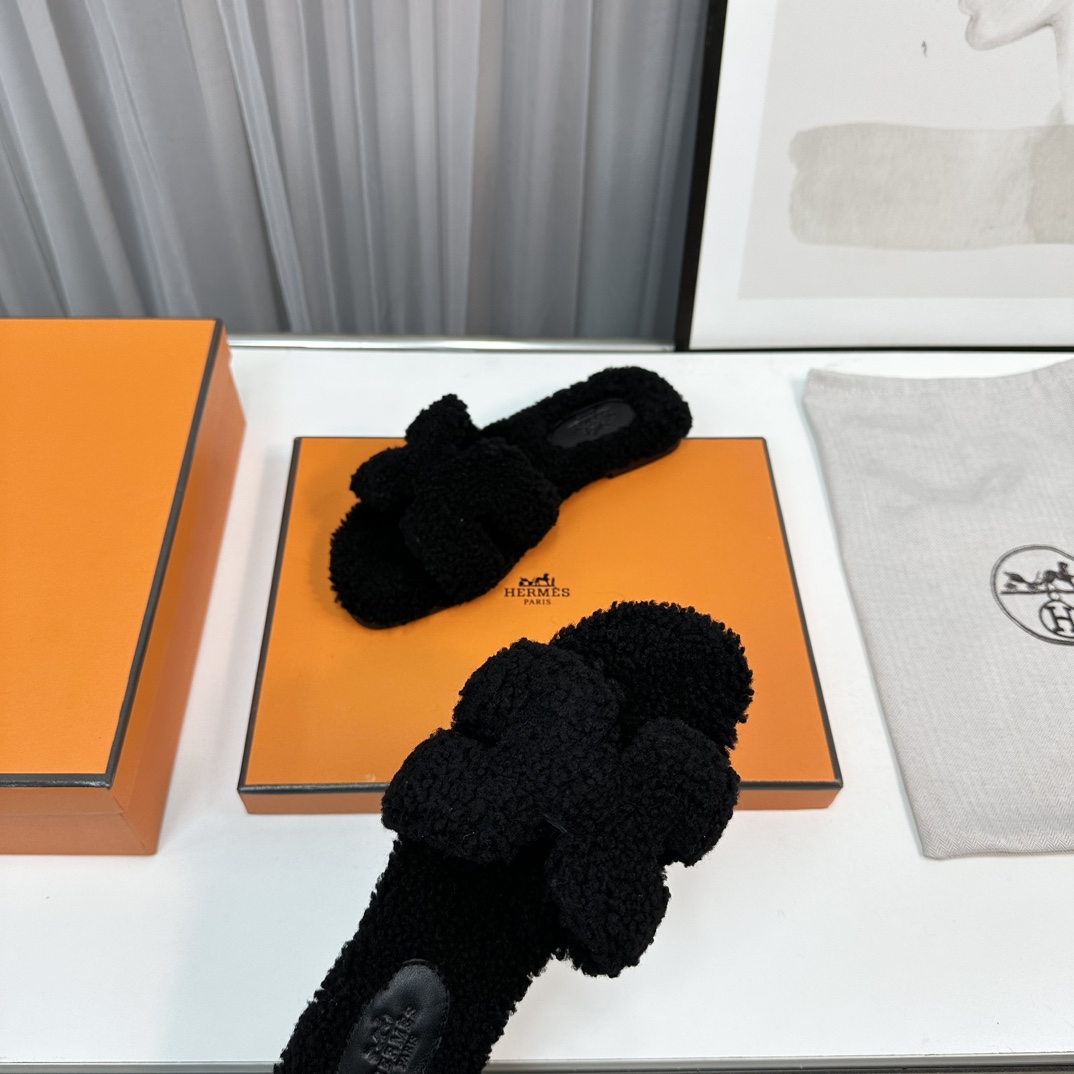 Hermès Teddy Wool H Slippers - Cozy Flat Slides for Women, Sizes 35-42