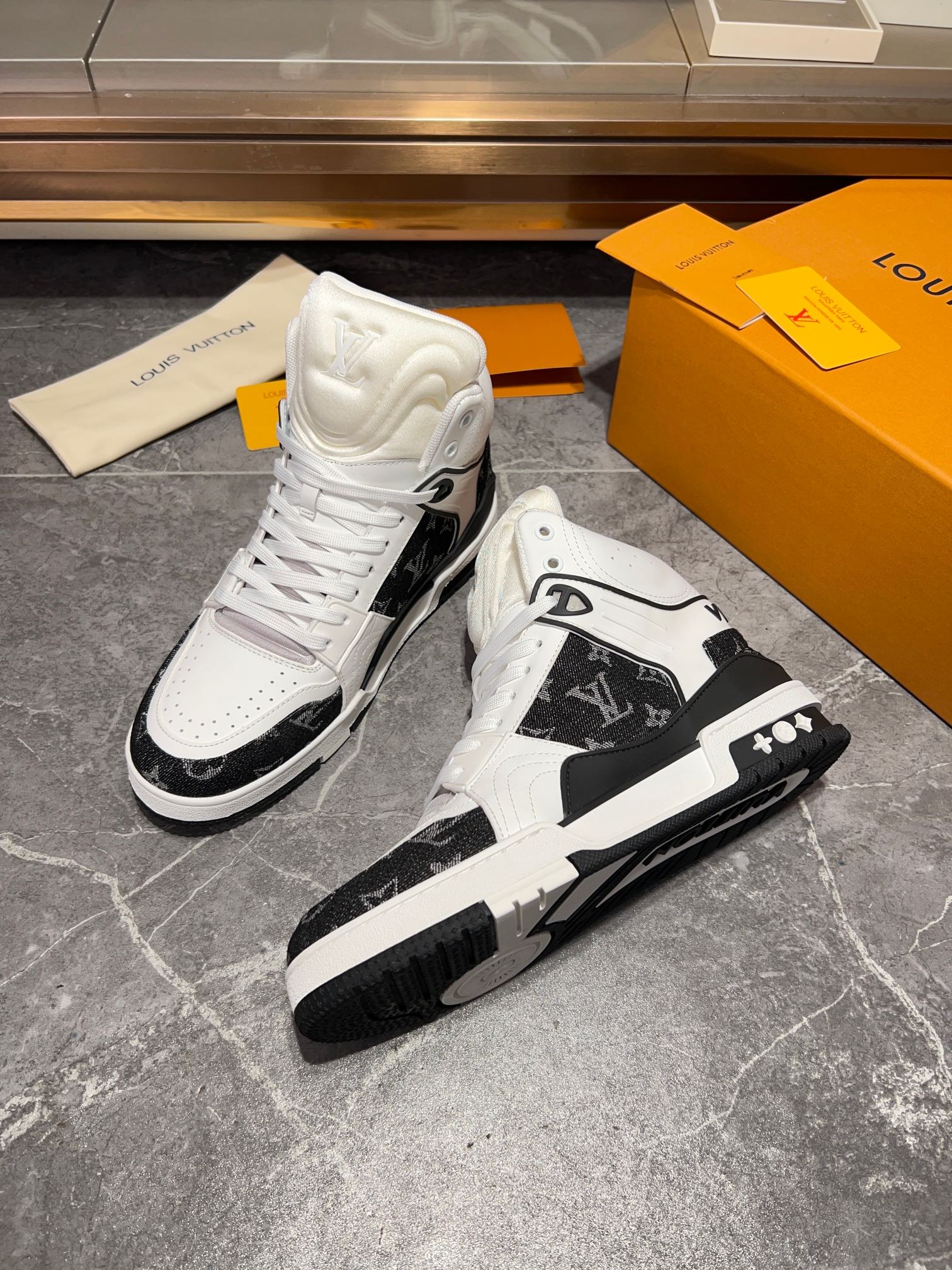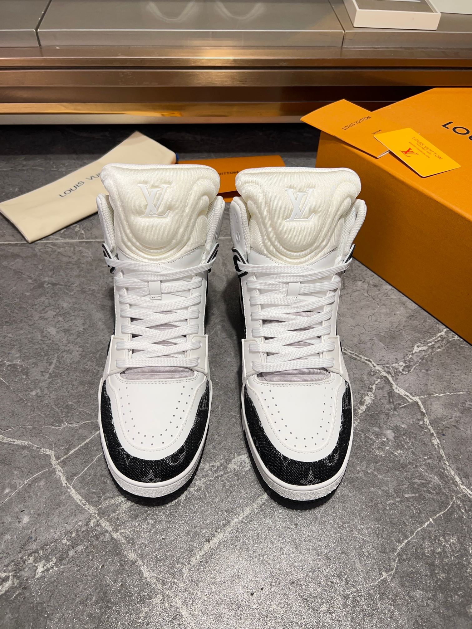Elevate your footwear collection with these exceptional Louis Vuitton high-top sneakers. Experience the perfect blend of style, comfort, and luxury with every step.