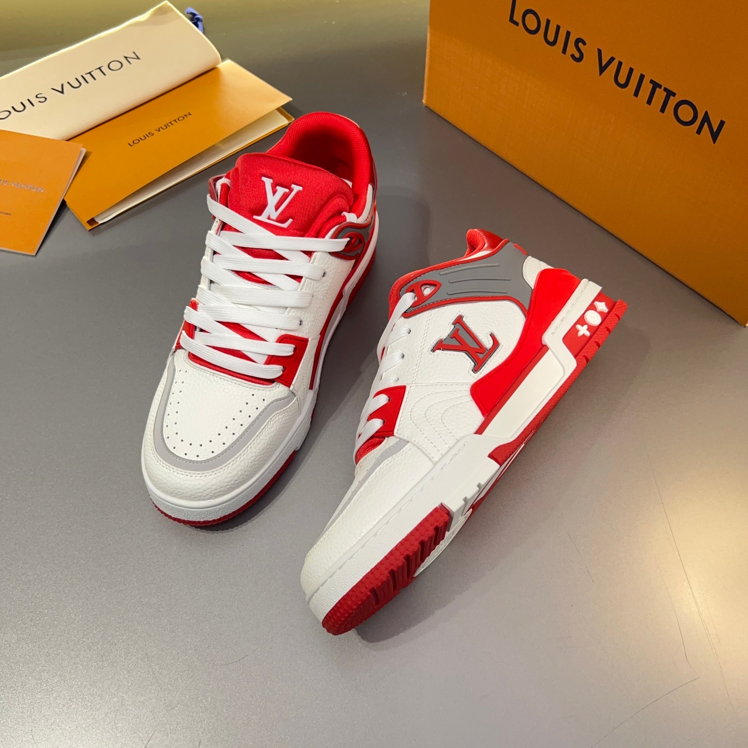 Introducing the L.V Trainer Sneaker, a fusion of classic design and modern innovation. These sneakers are crafted with meticulous attention to detail, featuring premium materials and iconic branding.