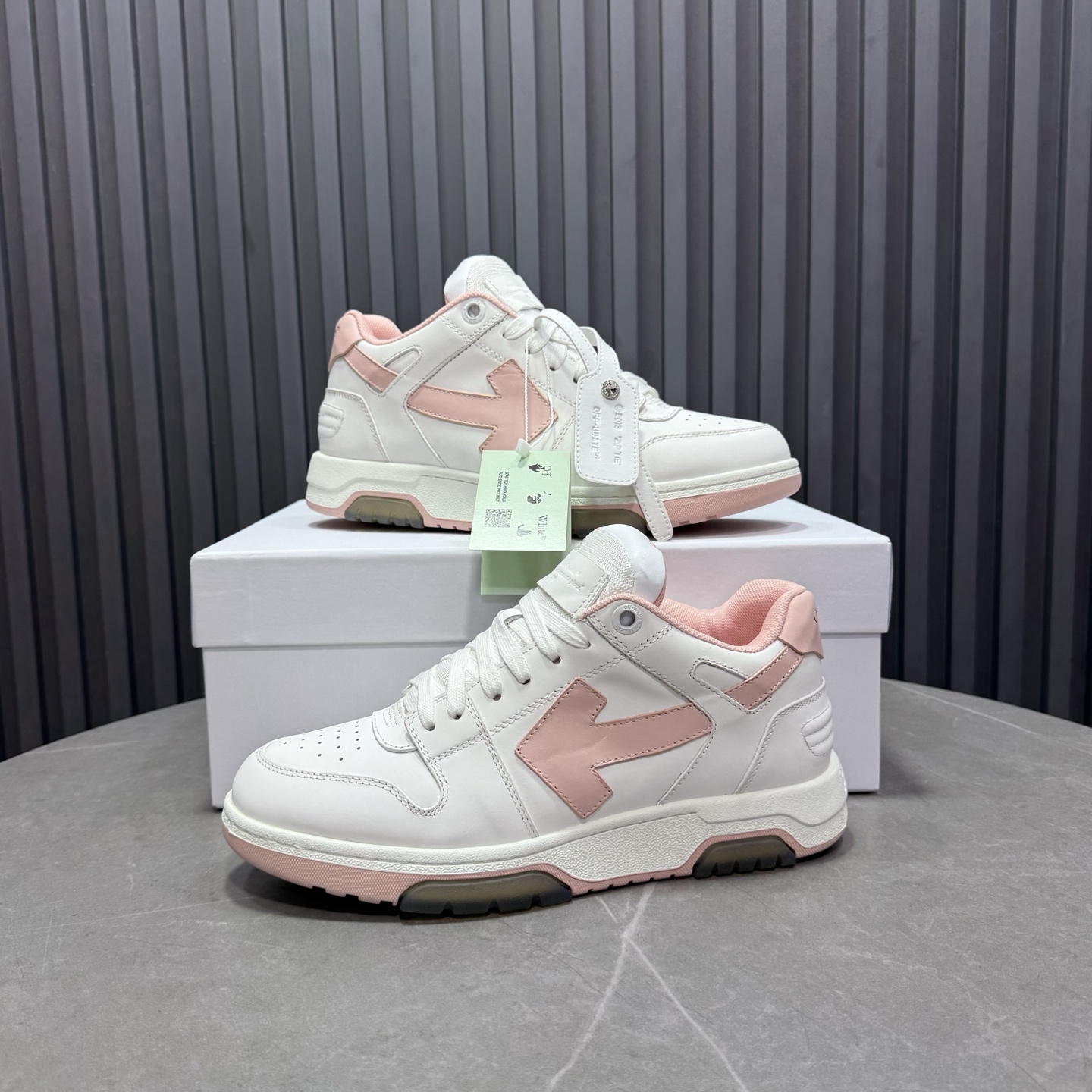 Tags: Designer Women's Sneakers, Fashion Sneakers For Women, Leather low-top sneakers, Off-White Out Of Office Sneakers, Pink And White Sneakers