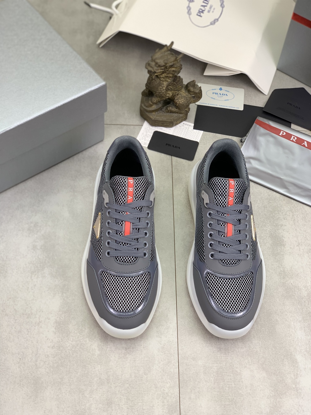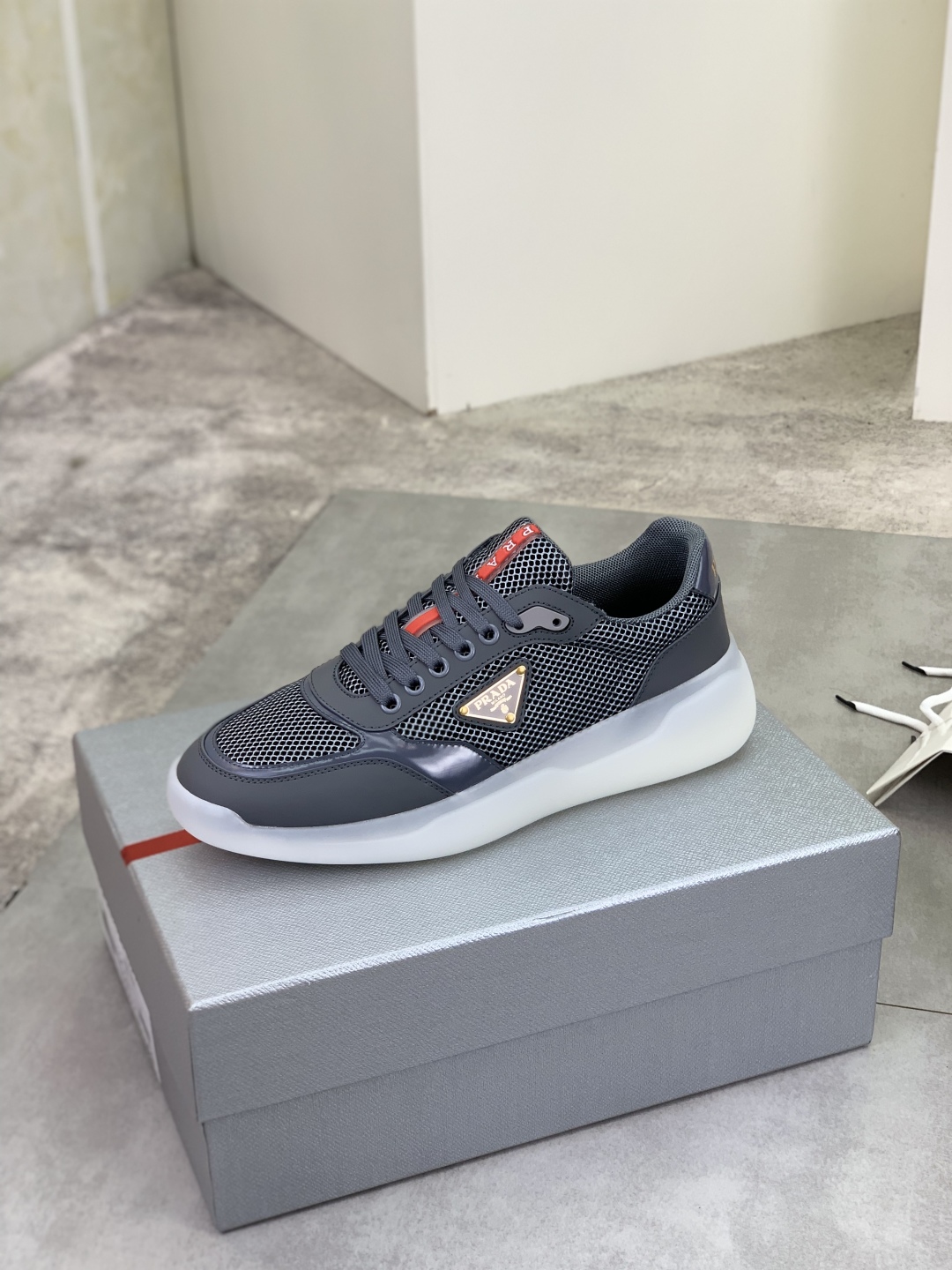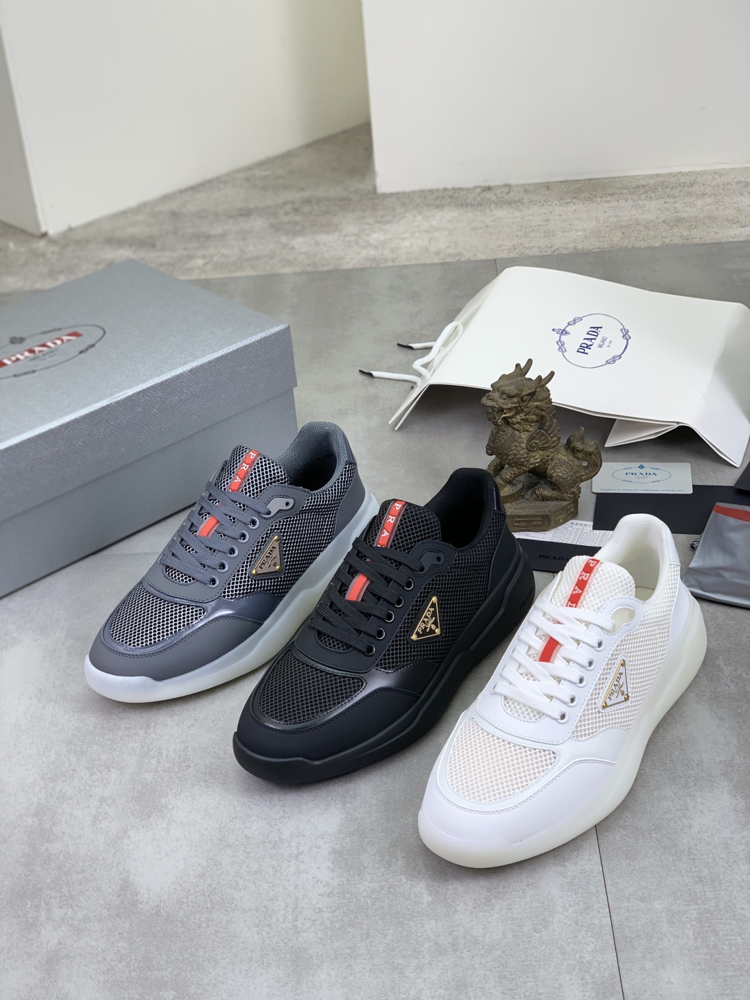 Prada Men's Fashion Sneakers Cowhide Patchwork Lace Up Casual Shoes