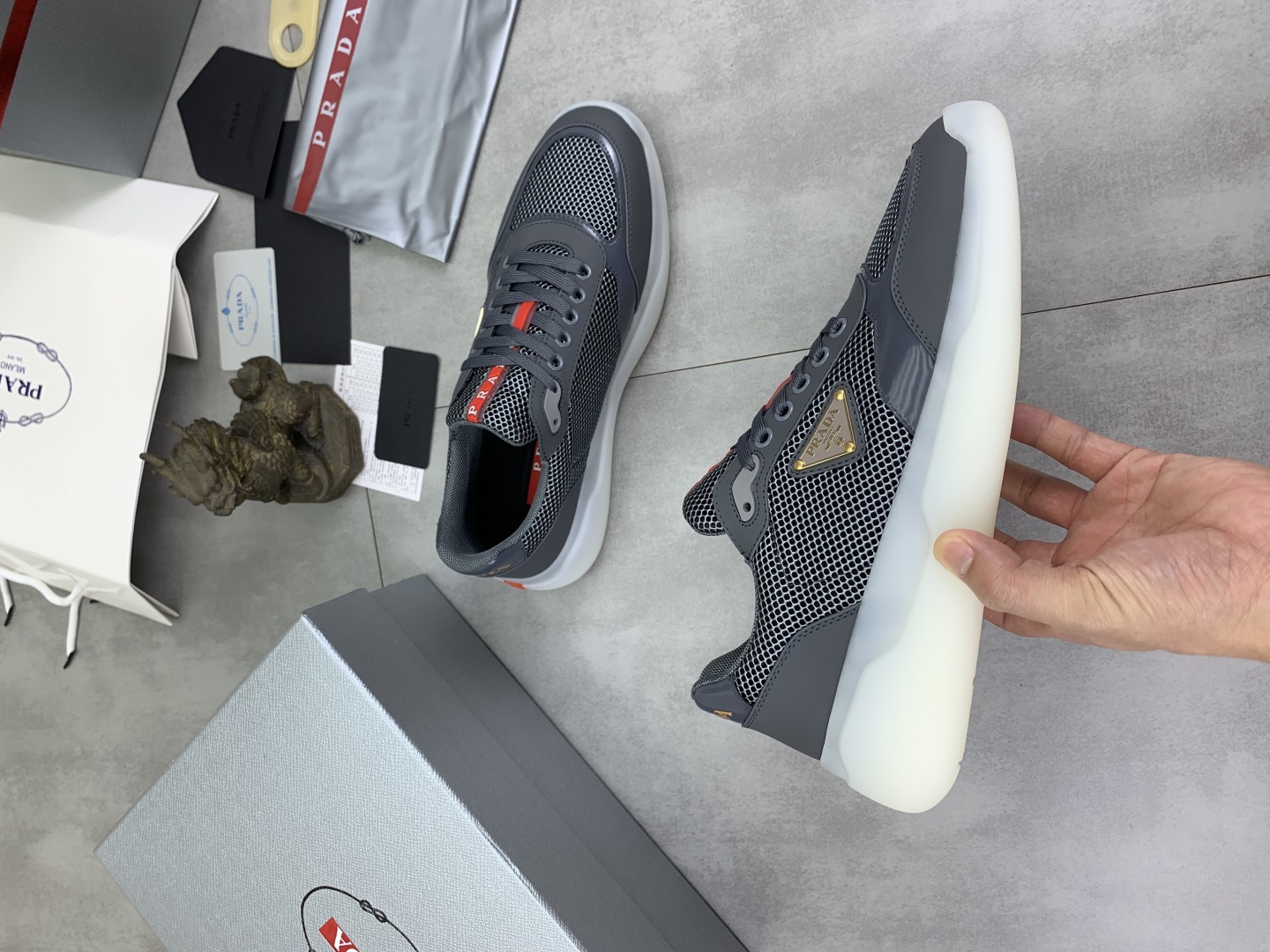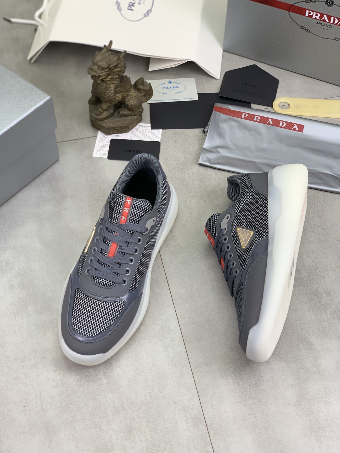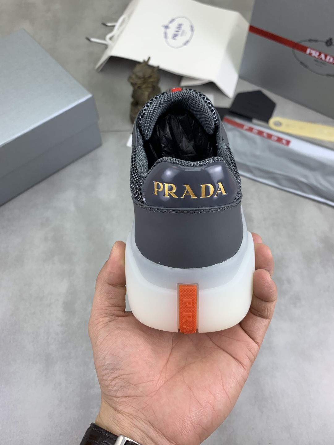 Prada Men's Fashion Sneakers Cowhide Patchwork Lace Up Casual Shoes
